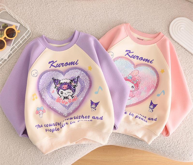 Kulomi 아동복 2024 가을 새로운 패션 인쇄 된 어린이 스웨덴 소녀의 유행 팬 어린이 긴 소매 올매치