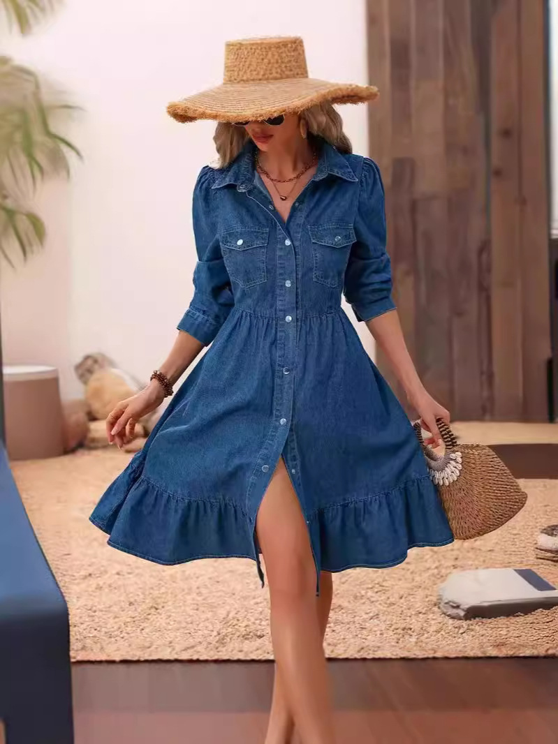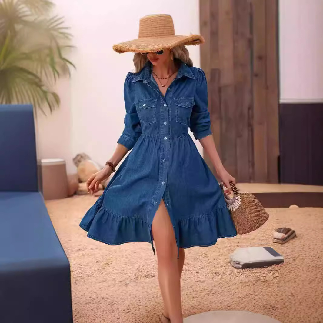 2025 Amazon Independent Station 새로운 유럽과 미국의 라펠 긴팔 스플라이스 캐주얼 드레스스토어 가기