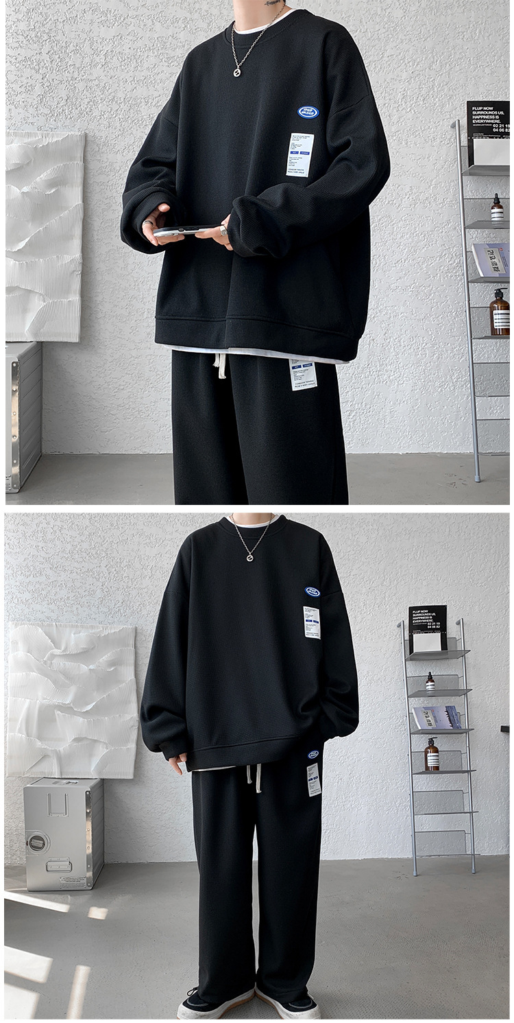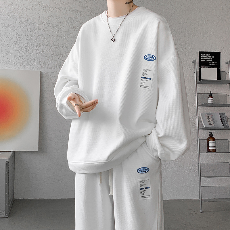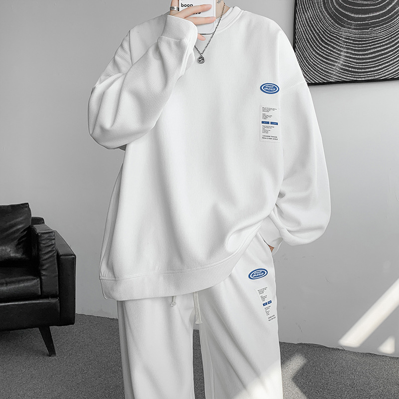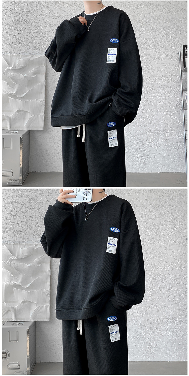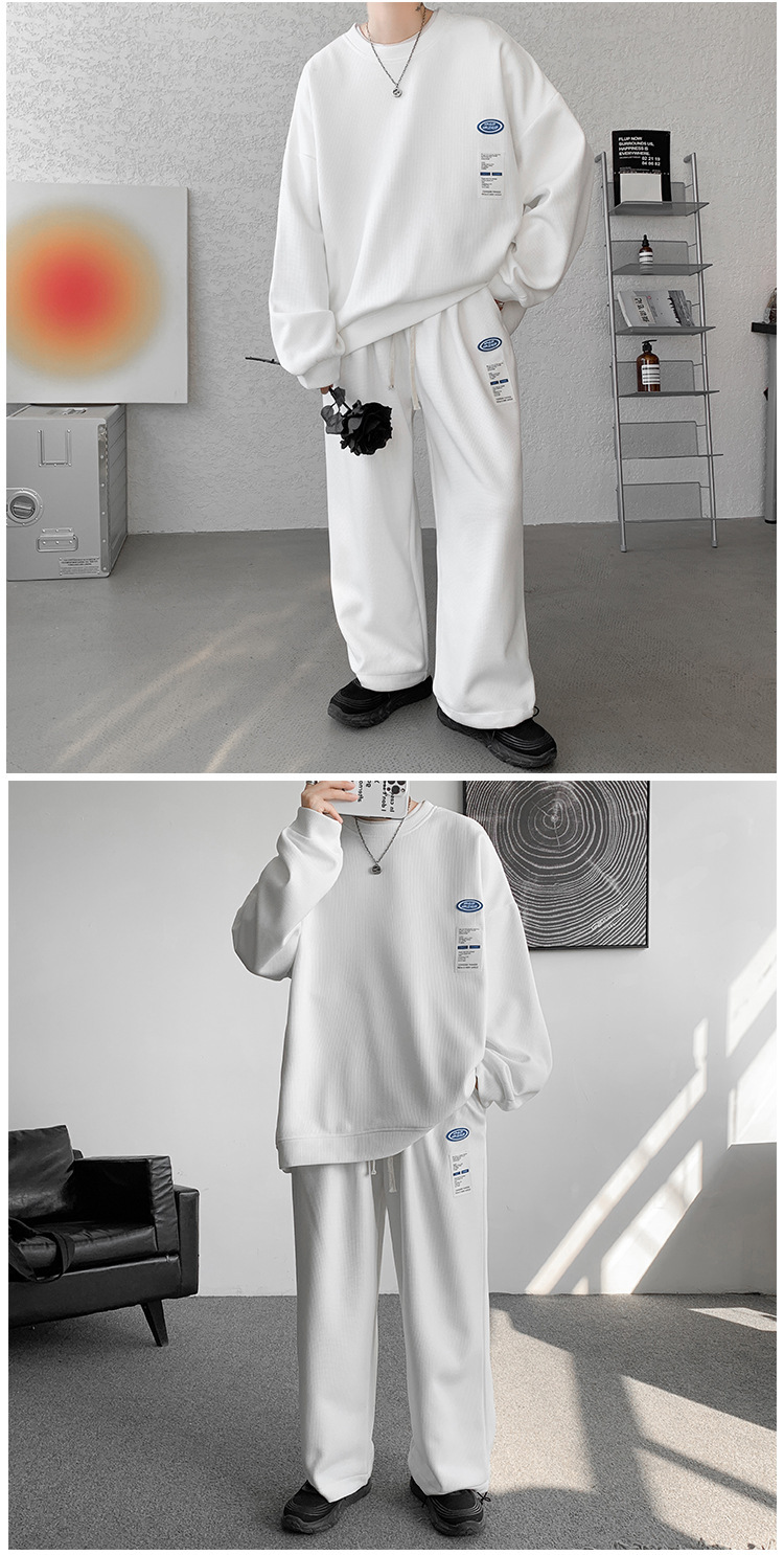 와플 캐주얼 스포츠웨어 세트 남성 스웨터 프라이드 스트리트 패션 브랜드 봄과 가을 플러스 사이즈 스트레이트 바지 투피스 세트스토어 가기