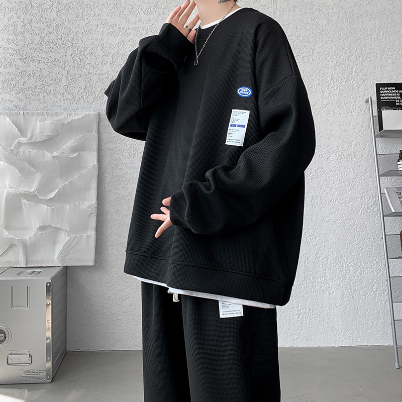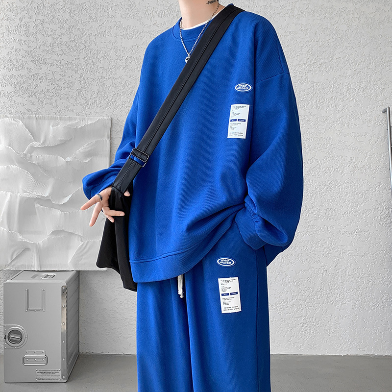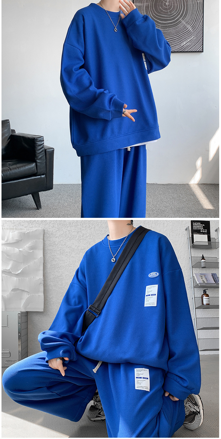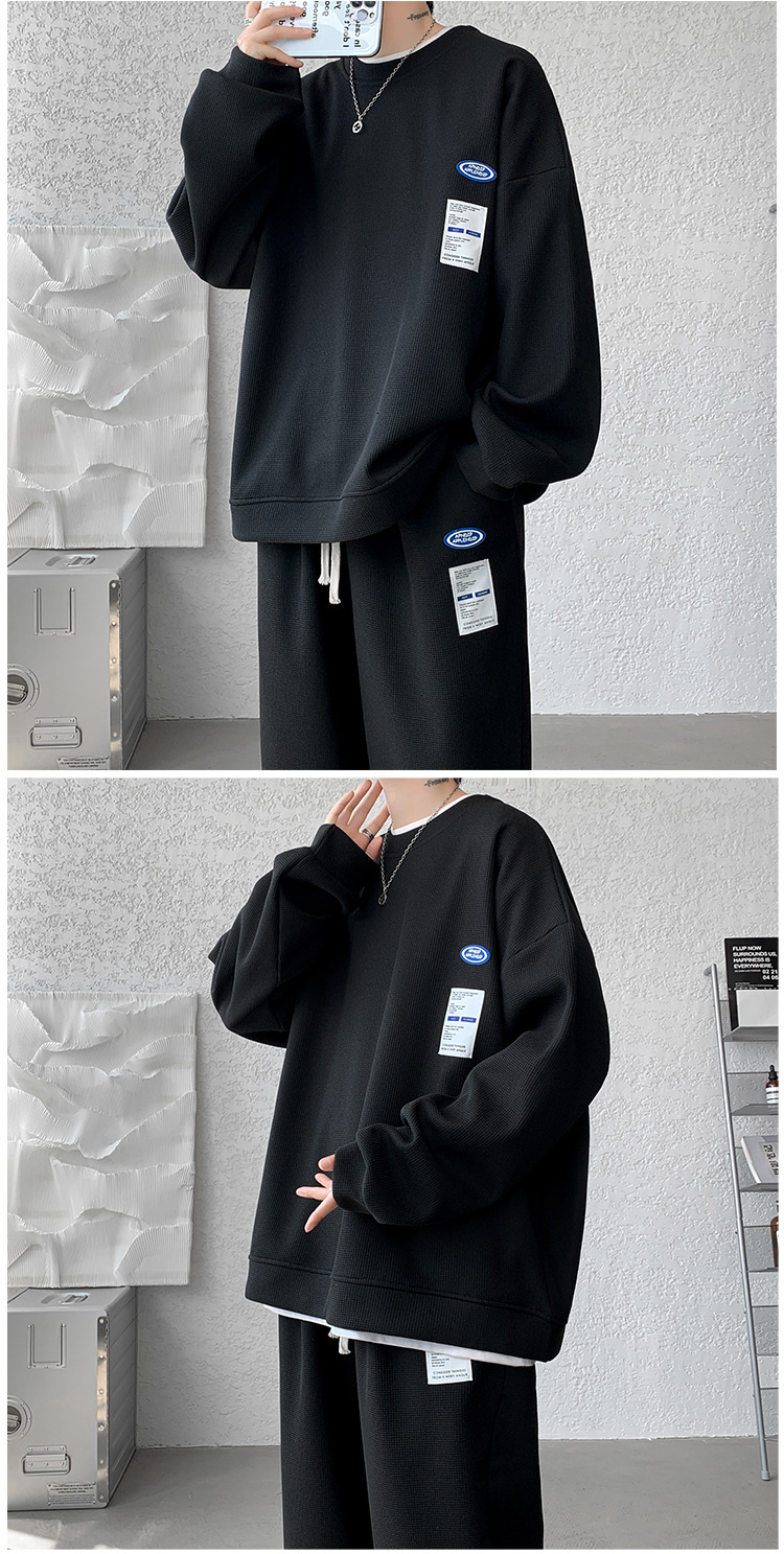 와플 캐주얼 스포츠웨어 세트 남성 스웨터 프라이드 스트리트 패션 브랜드 봄과 가을 플러스 사이즈 스트레이트 바지 투피스 세트스토어 가기