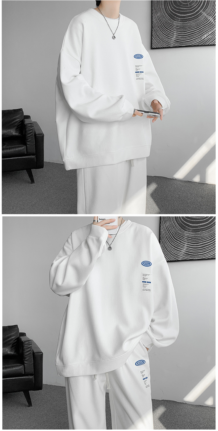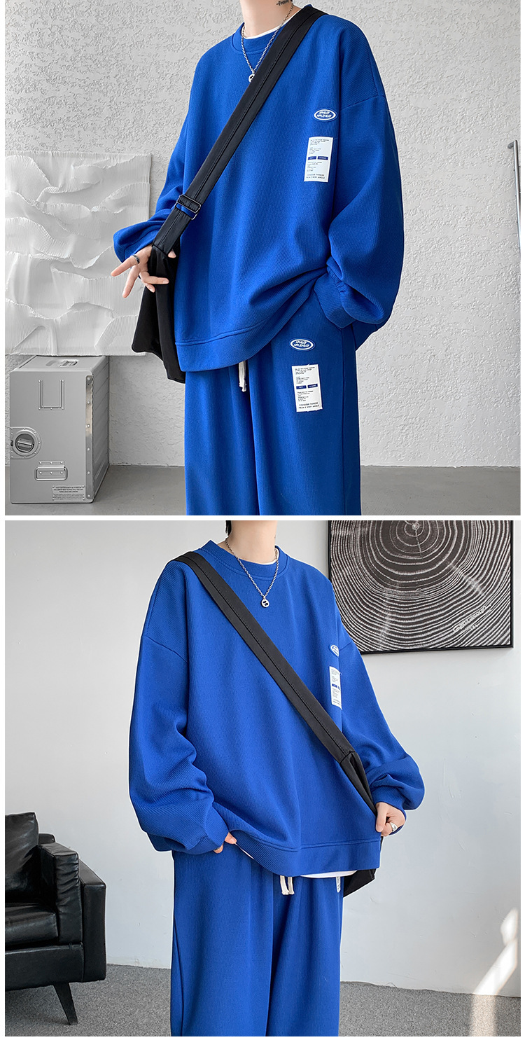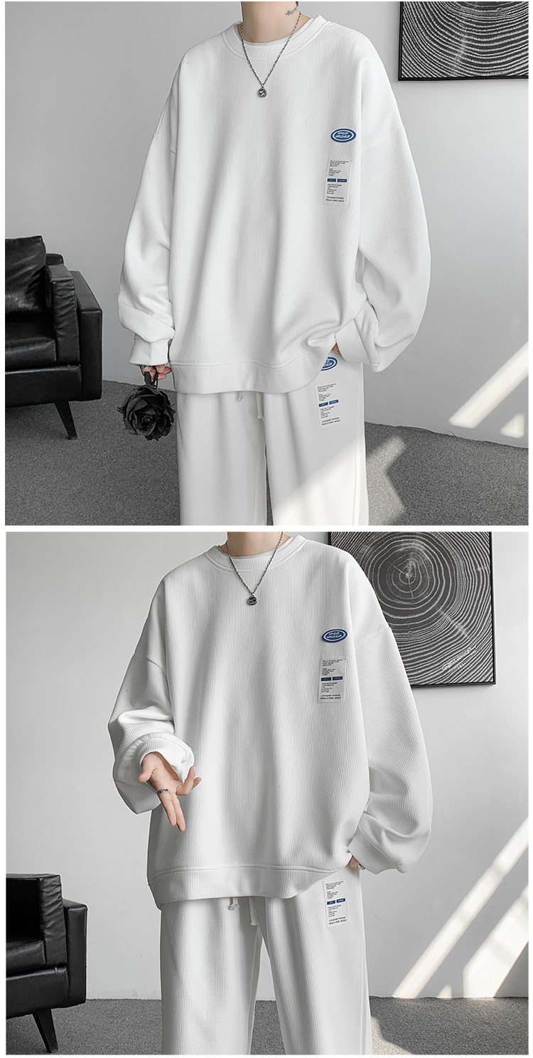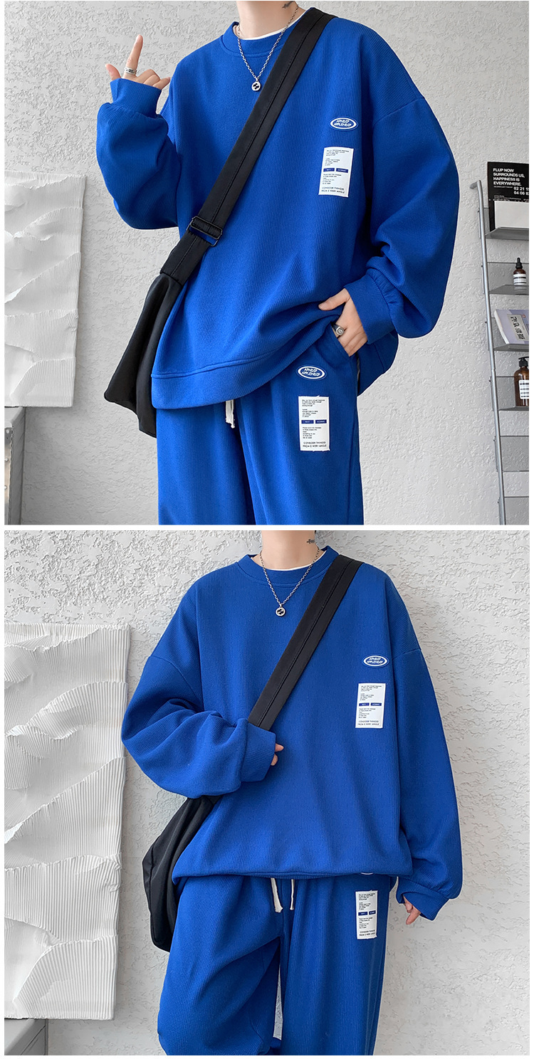 와플 캐주얼 스포츠웨어 세트 남성 스웨터 프라이드 스트리트 패션 브랜드 봄과 가을 플러스 사이즈 스트레이트 바지 투피스 세트스토어 가기