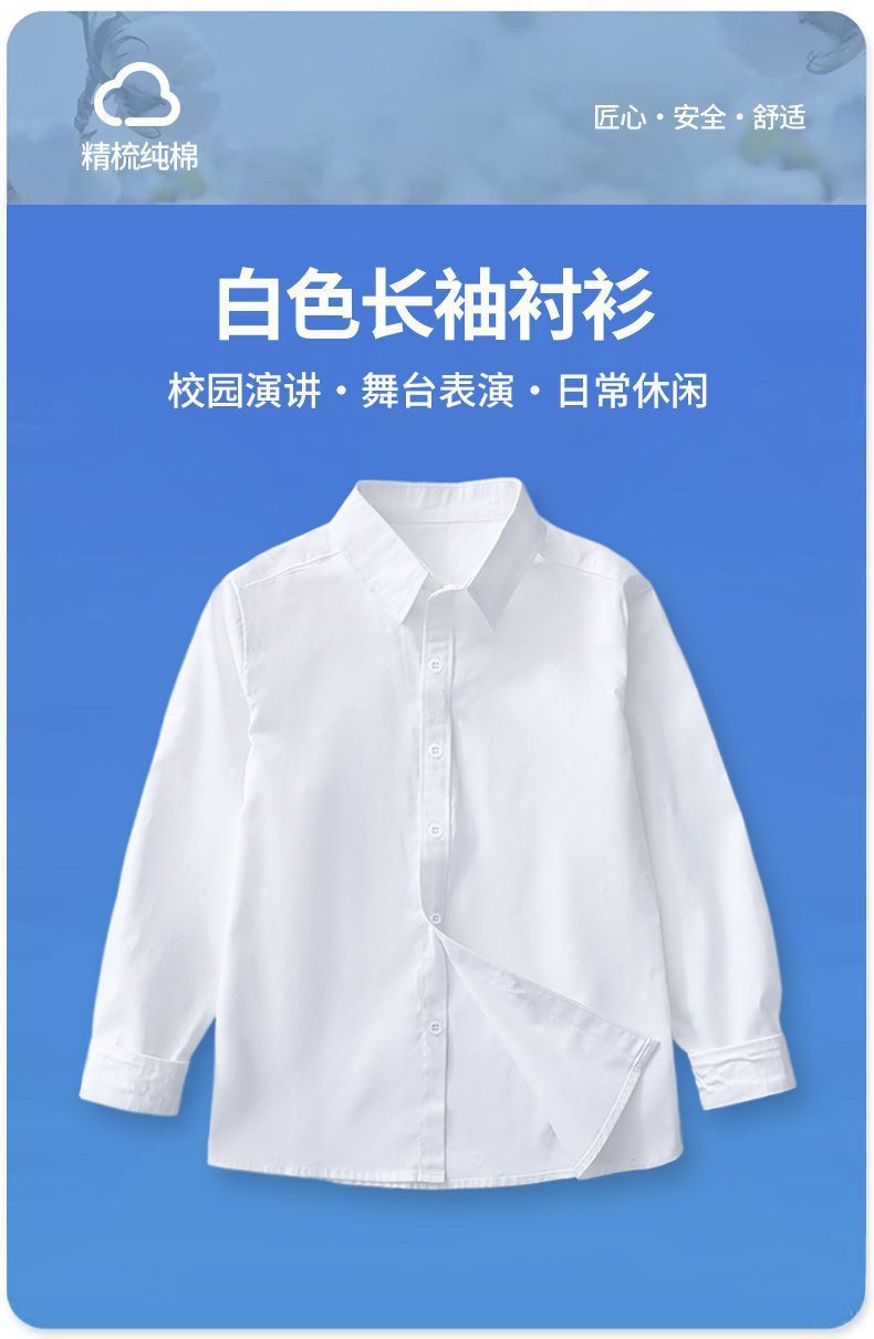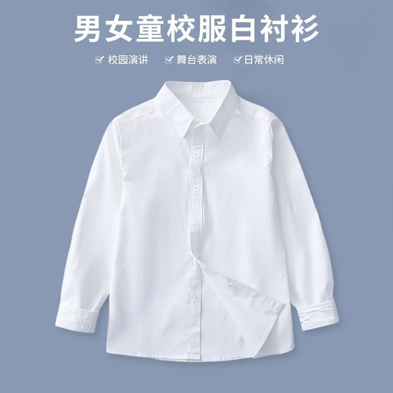 학생 교복 흰색 셔츠 긴팔 소년 면화 가을 소녀는 12 ~ 15 세 흰색 큰 어린이 셔츠를 입습니다.스토어 가기