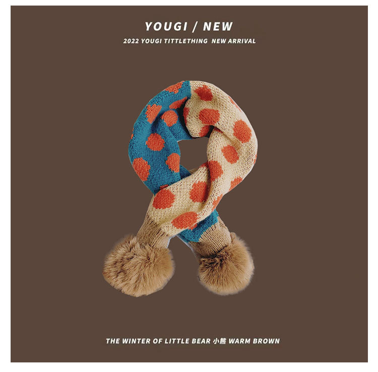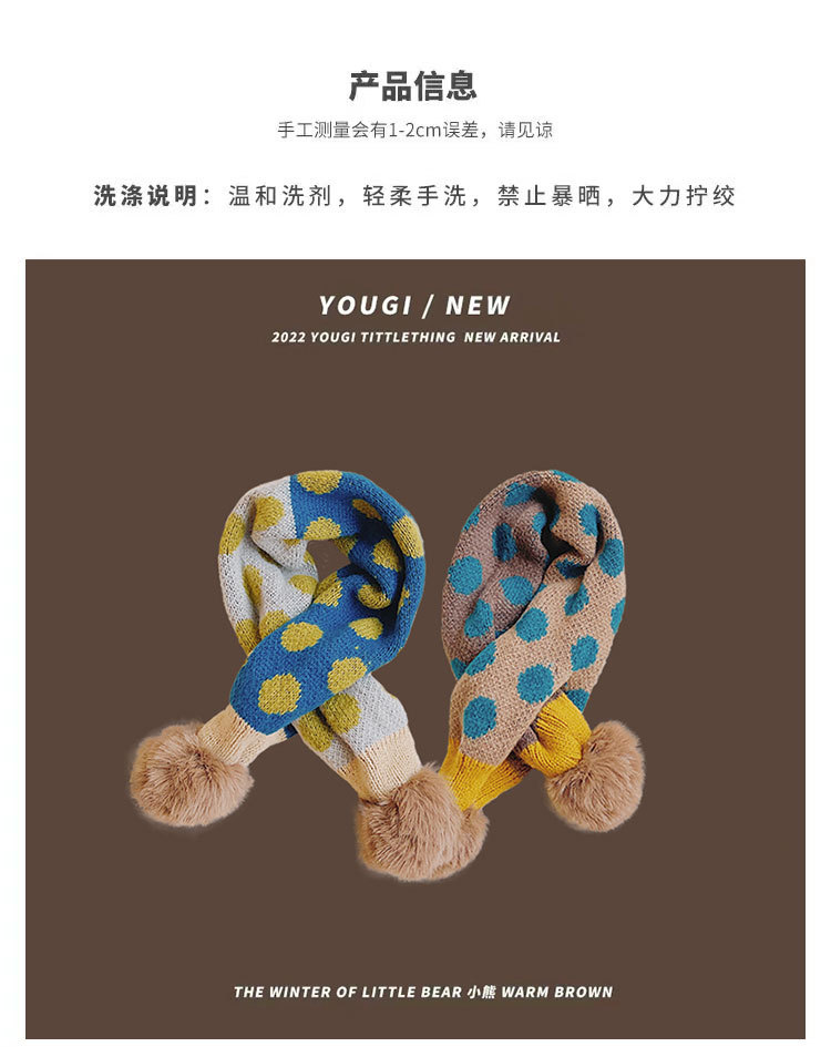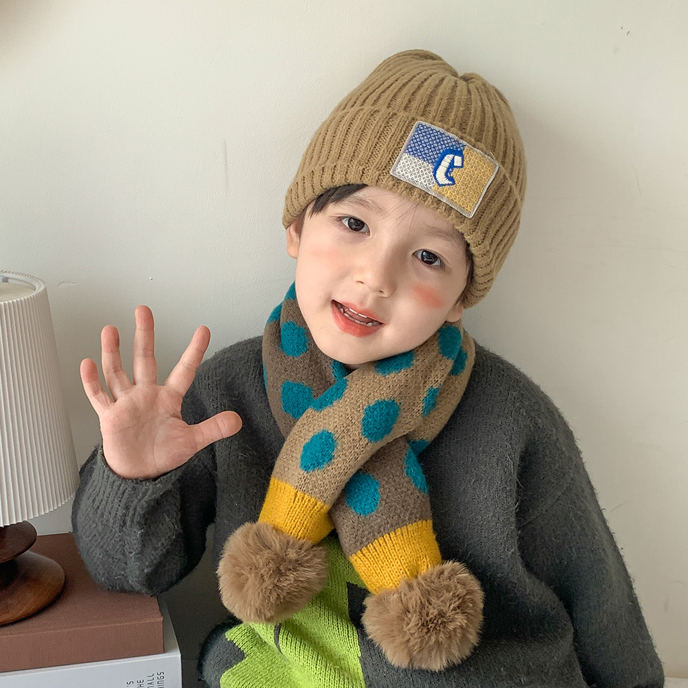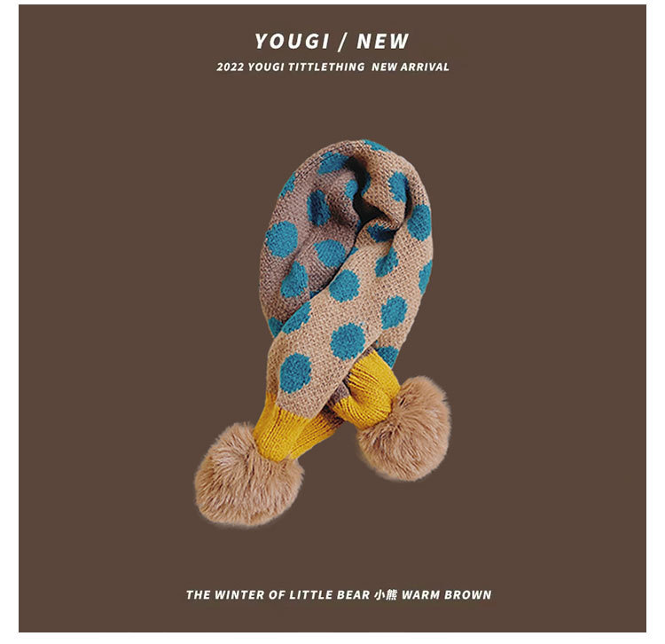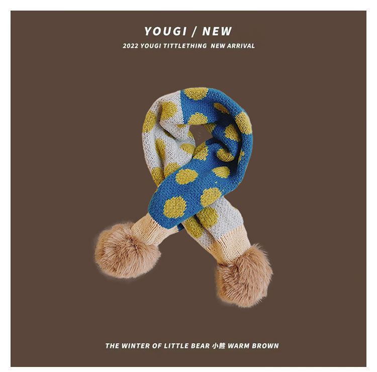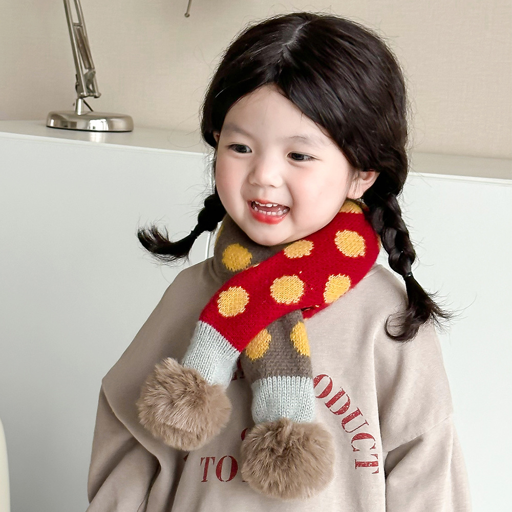 어린이 스카프 가을과 겨울 따뜻한 머리 공 니트 아기 스카프 큰 라운드 도트 한국 남녀 올매치 크로스 넥셋