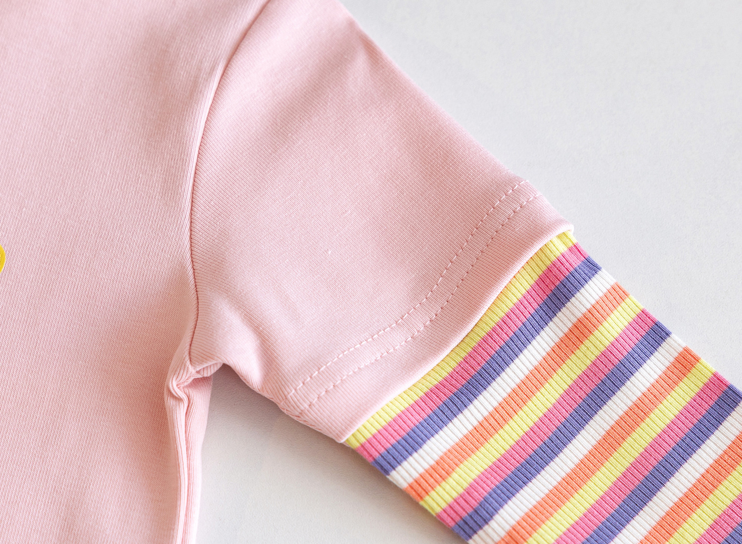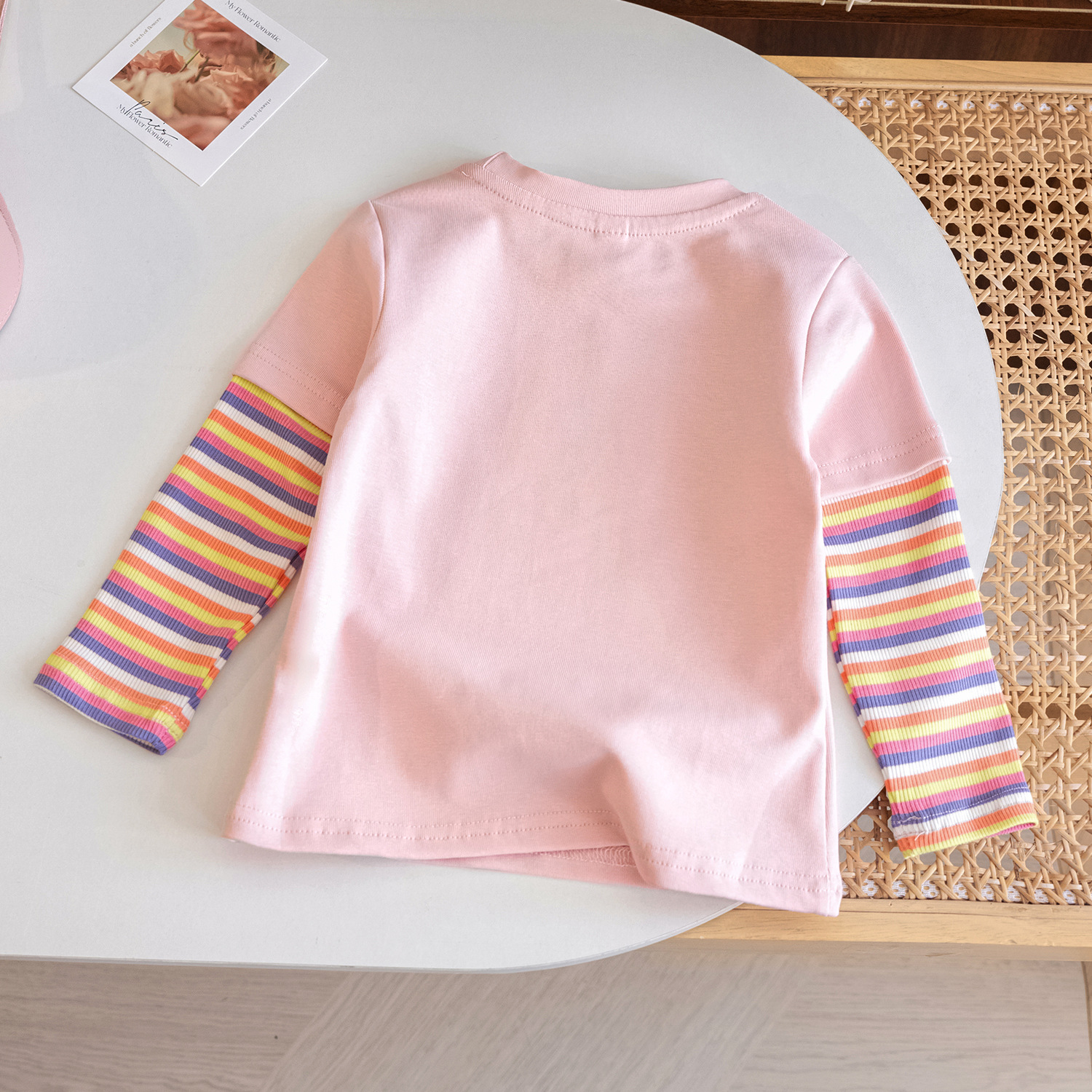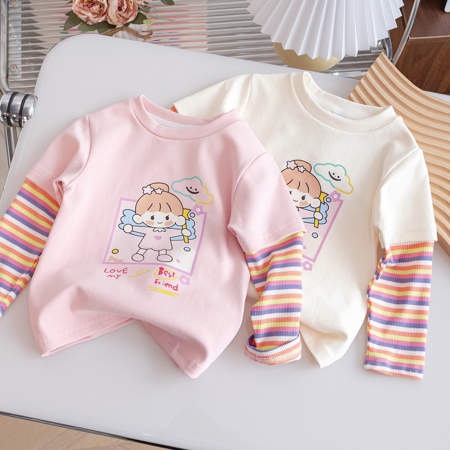 소녀 면 긴팔 티셔츠 가을 만화 탑 중소형 어린이 봄과 가을 여성 아기의 줄무늬 바느질베이스 셔츠 3