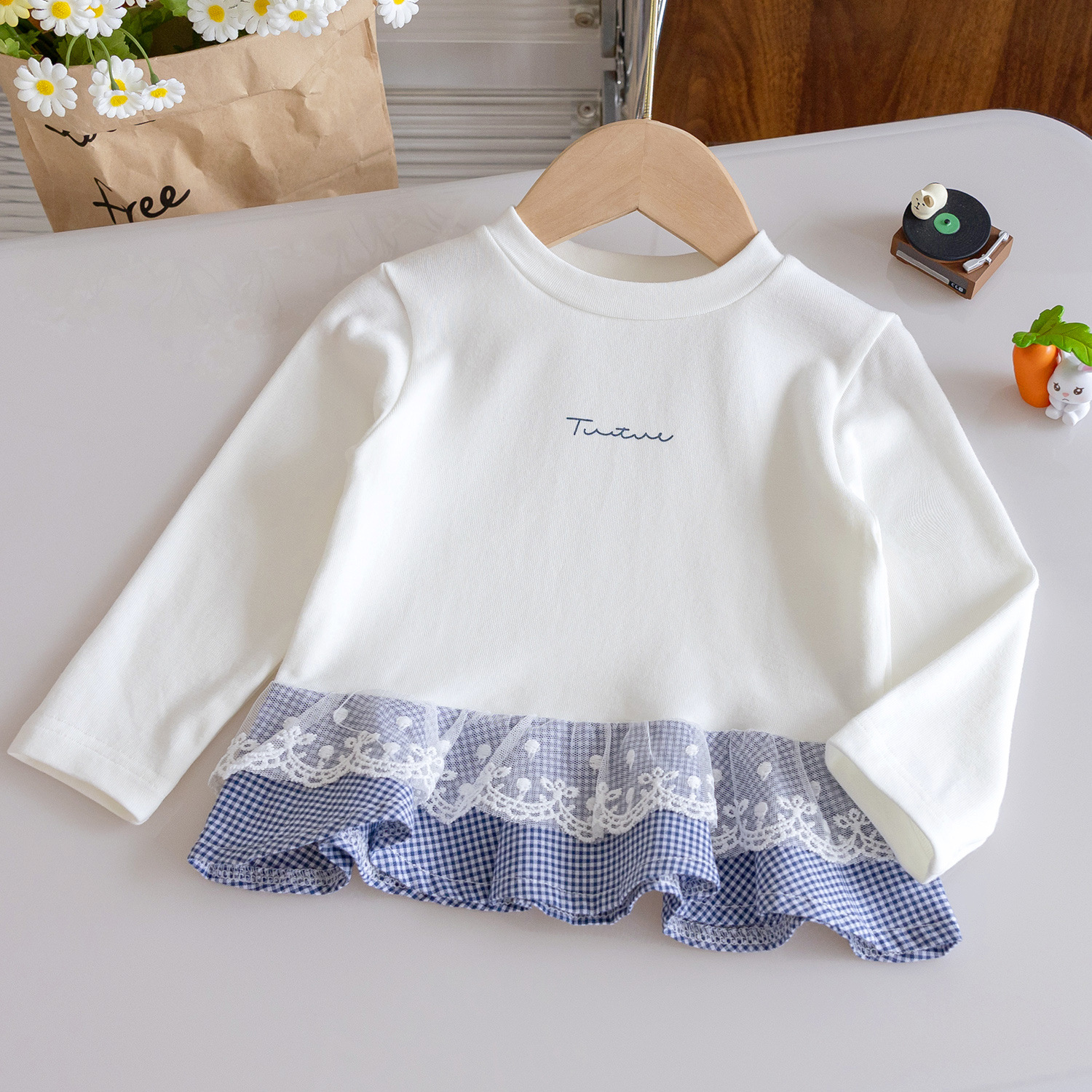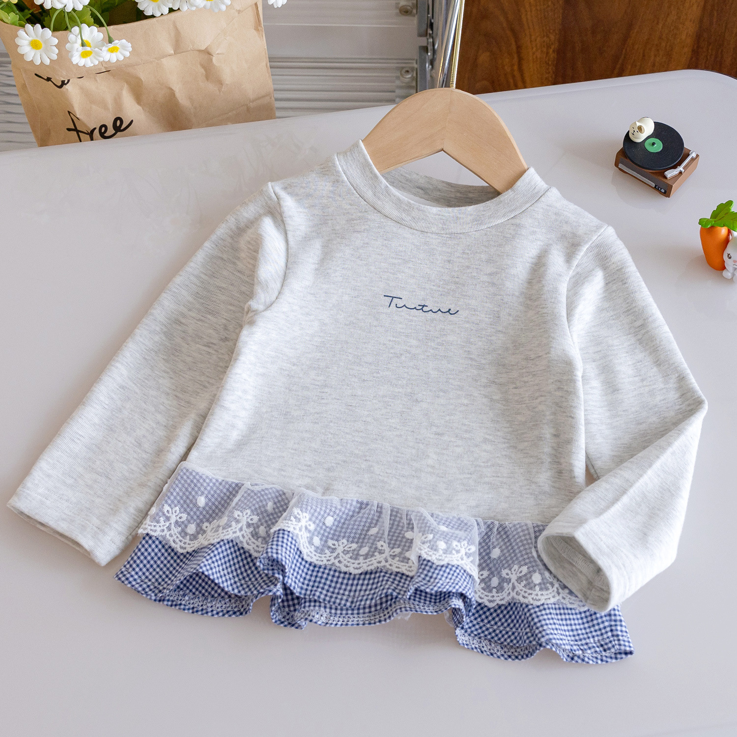 소녀 면 긴팔 티셔츠 가을 만화 탑 중소형 어린이 봄과 가을 여성 아기의 줄무늬 바느질베이스 셔츠 3스토어 가기