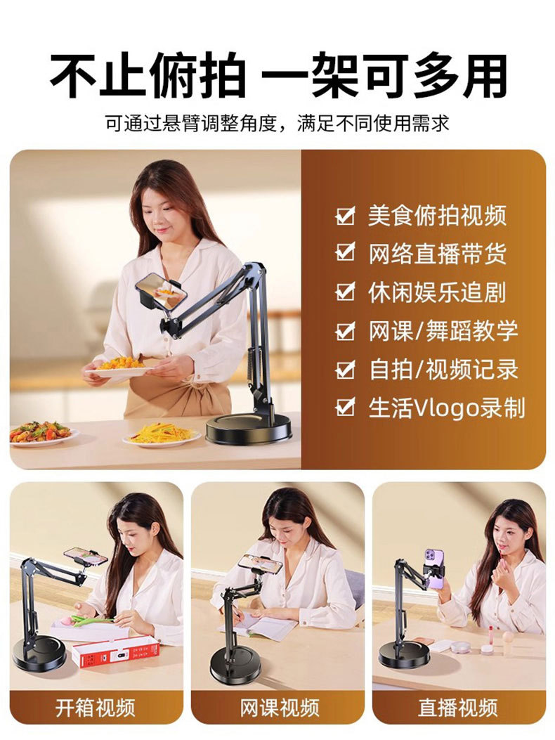 제조업체 도매 휴대폰 라이브 방송 촬영 스탠드 다용도 조절 가능한 원형 디스크 서스펜션 암 스탠드
