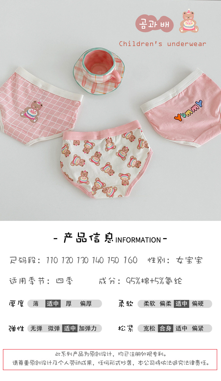소녀 속옷 ZYZ 만화 곰 편지 아기 소녀 복서 속옷 순면 트리머 반바지 클래스 A 어린이 속옷스토어 가기