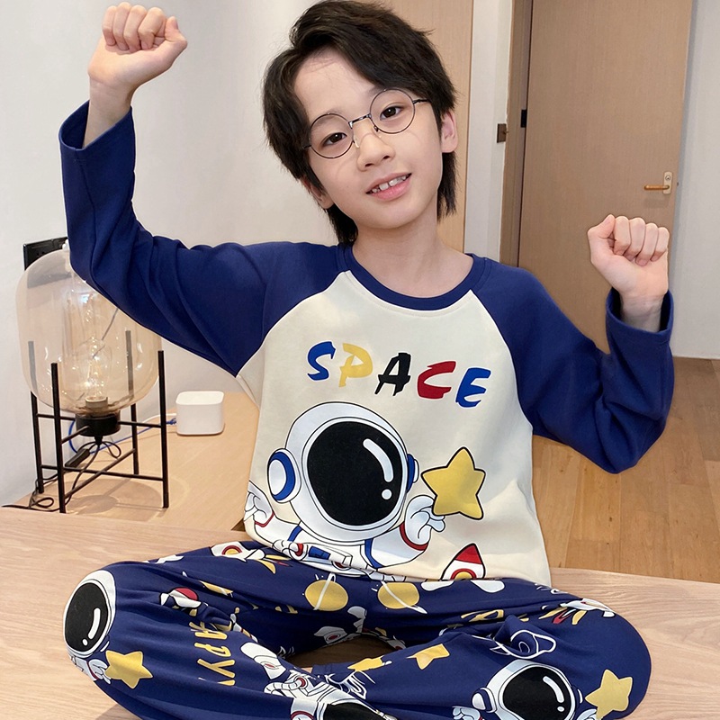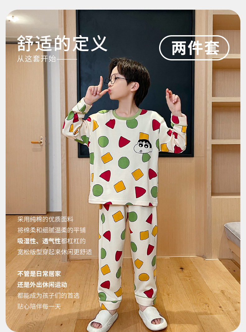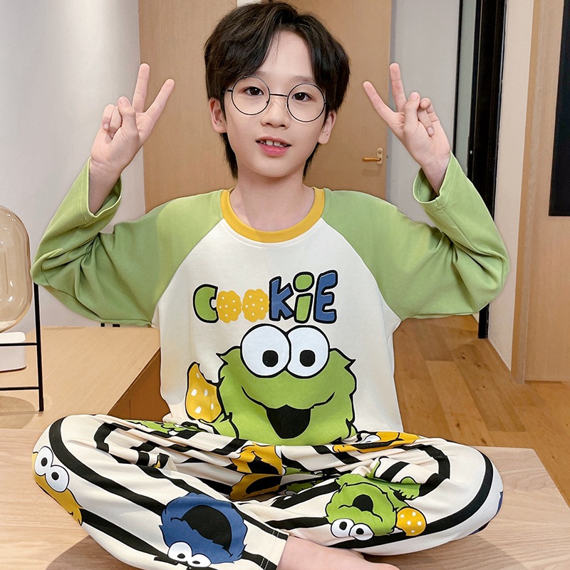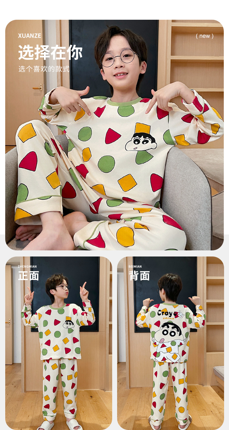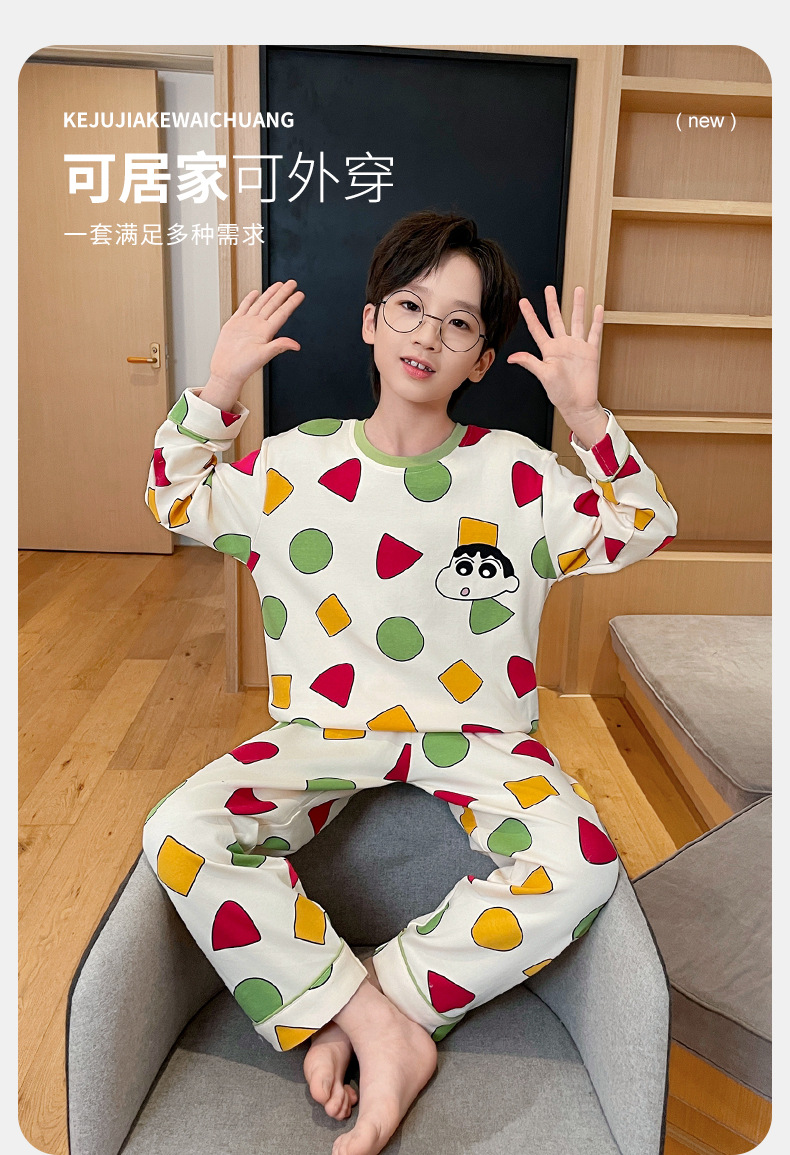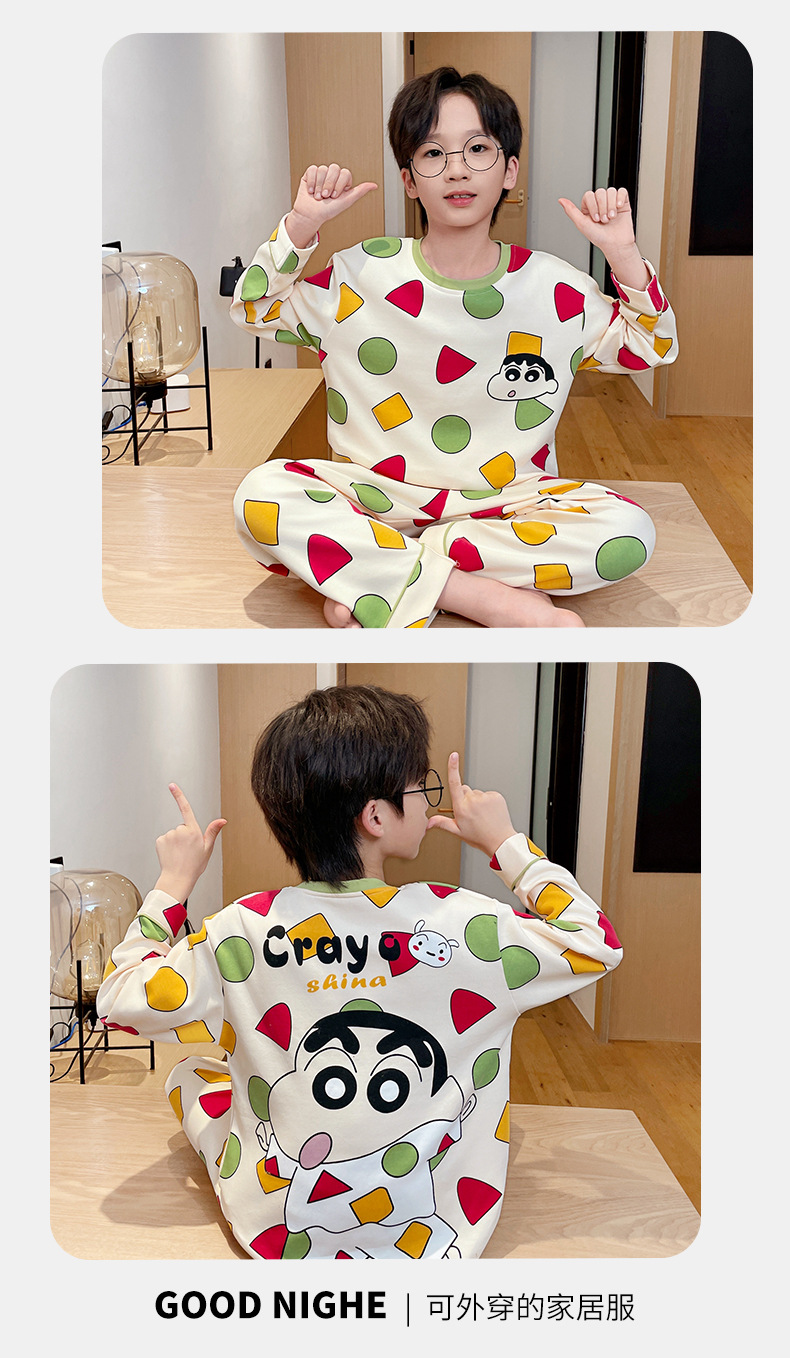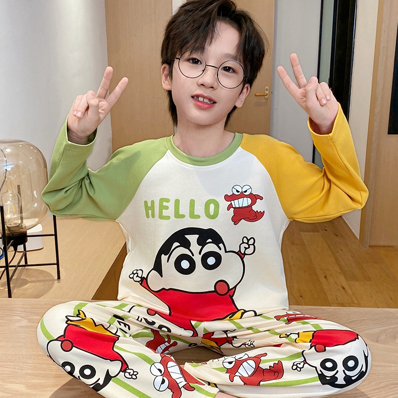 어린이 잠옷 소년 봄과 가을 얇은 면 2024 새로운 도착 13 세 소년 십대 큰 아이들 크레용 신스토어 가기