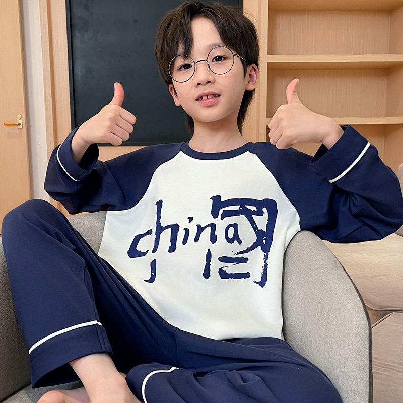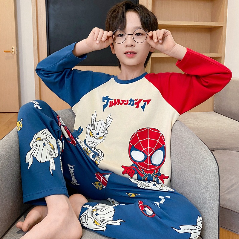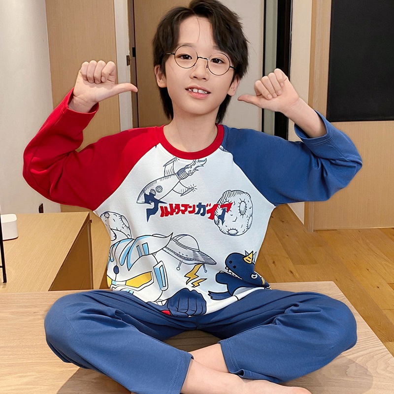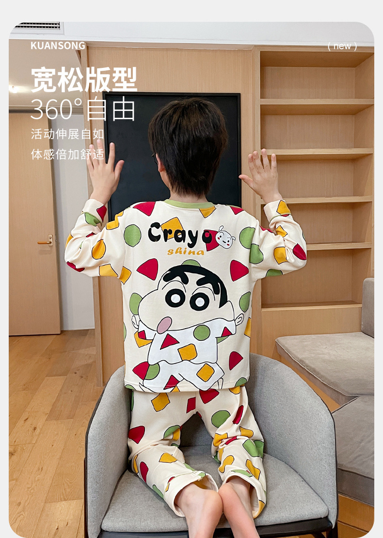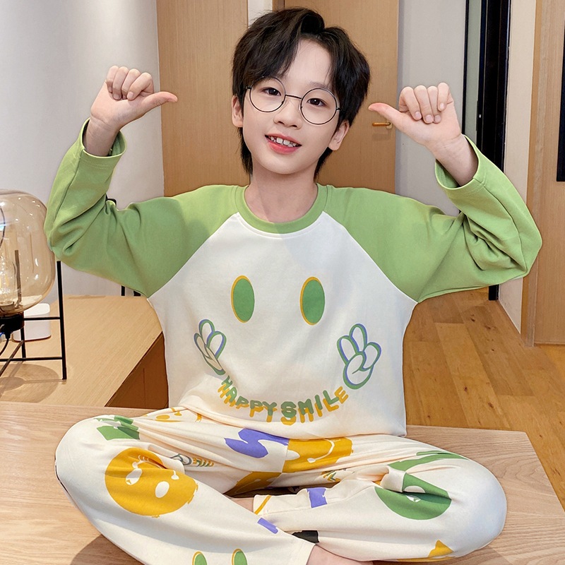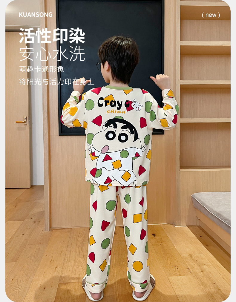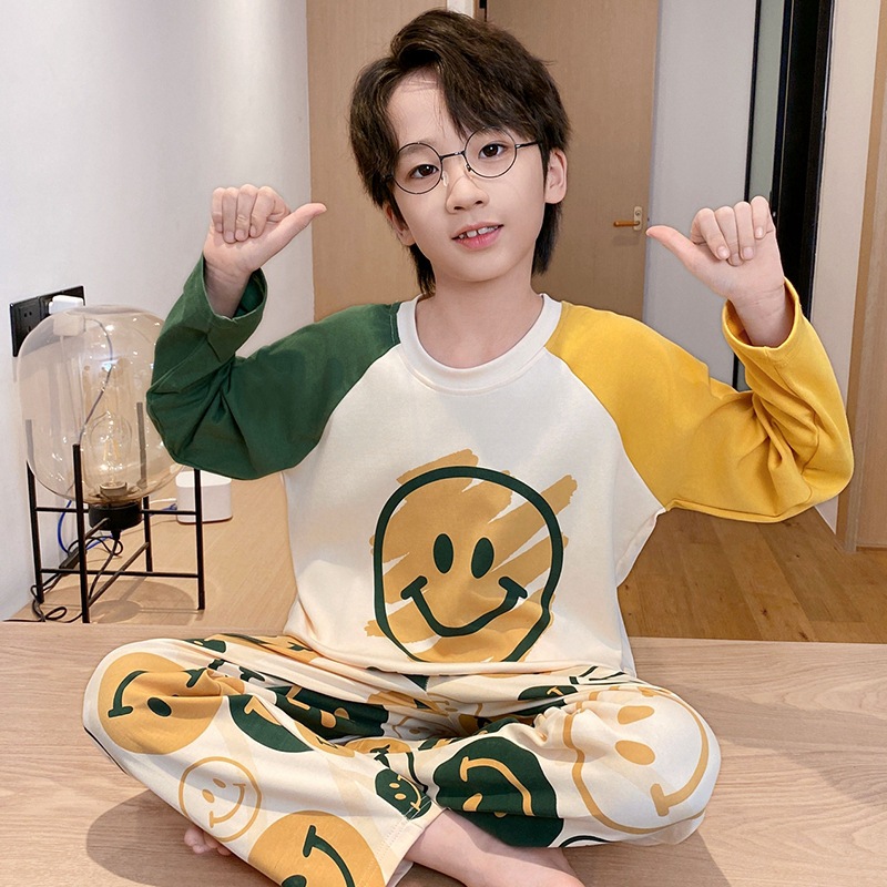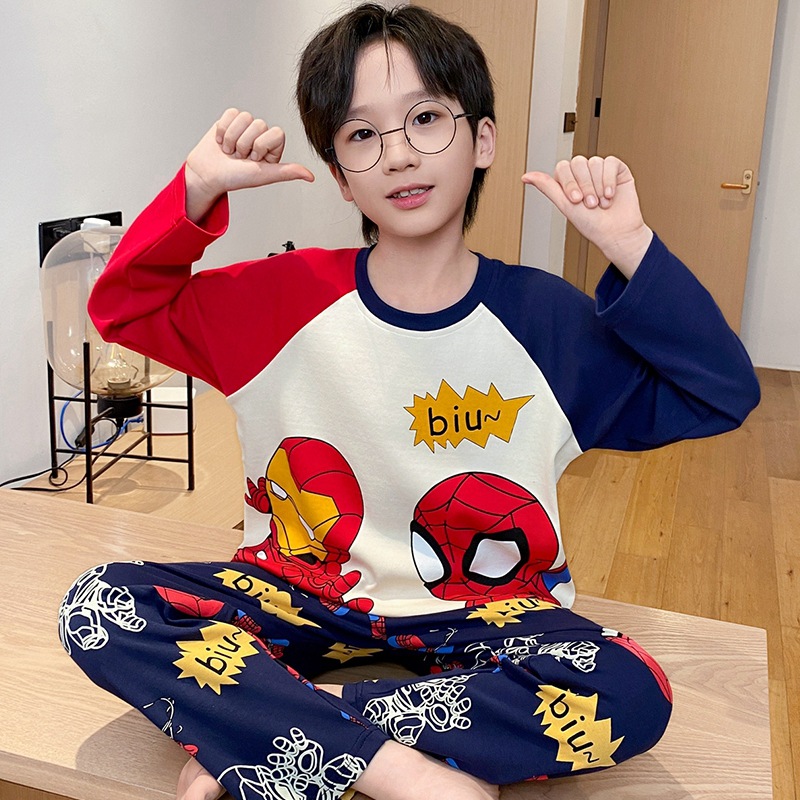 어린이 잠옷 소년 봄과 가을 얇은 면 2024 새로운 도착 13 세 소년 십대 큰 아이들 크레용 신스토어 가기