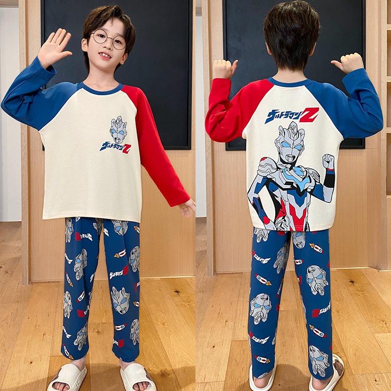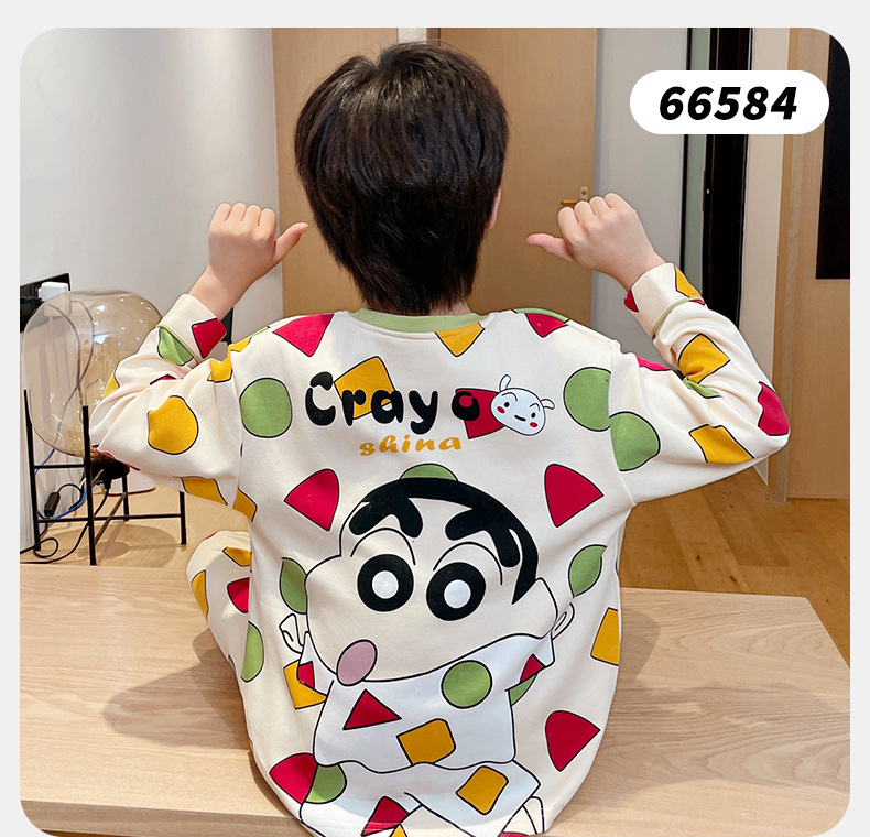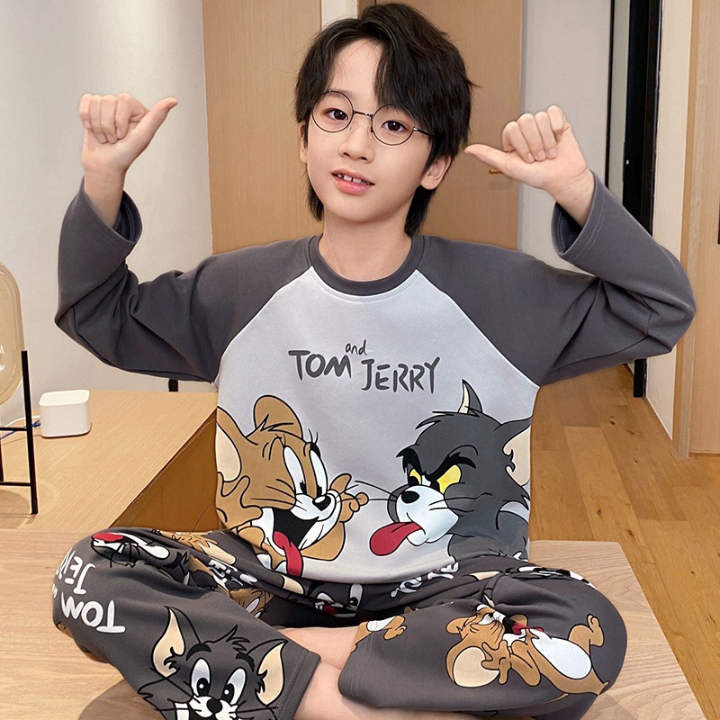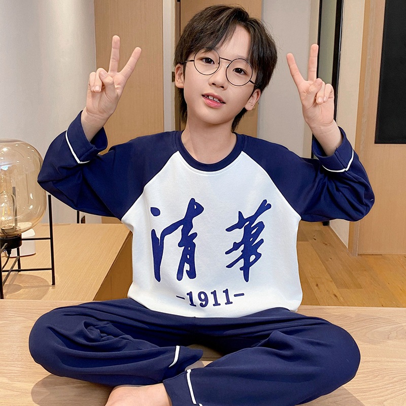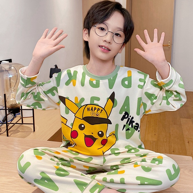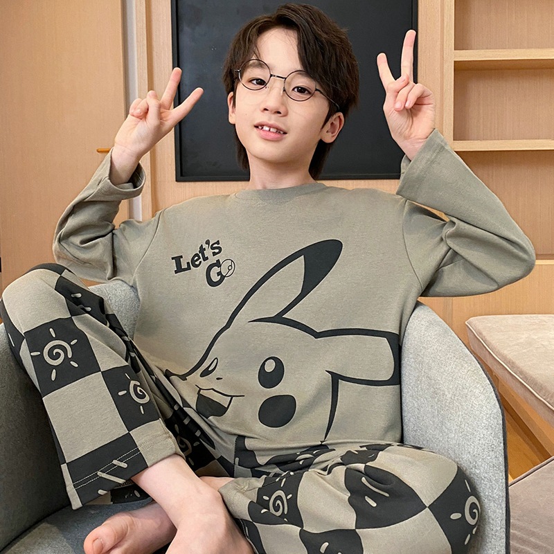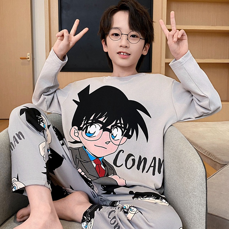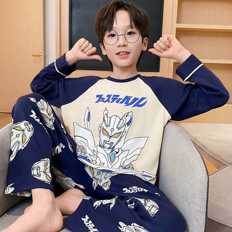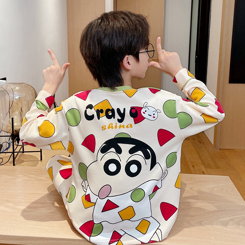 어린이 잠옷 소년 봄과 가을 얇은 면 2024 새로운 도착 13 세 소년 십대 큰 아이들 크레용 신스토어 가기