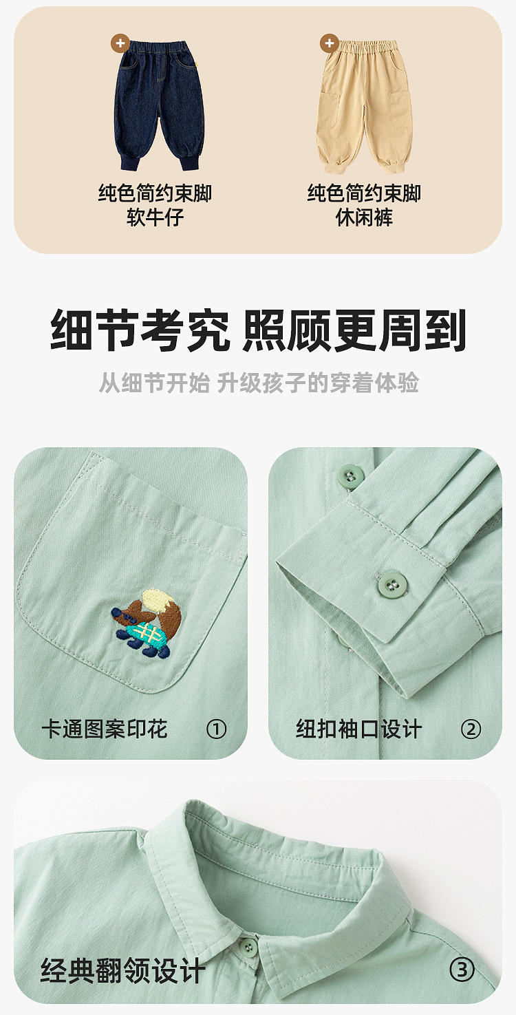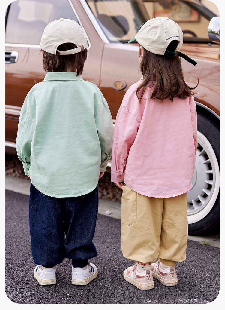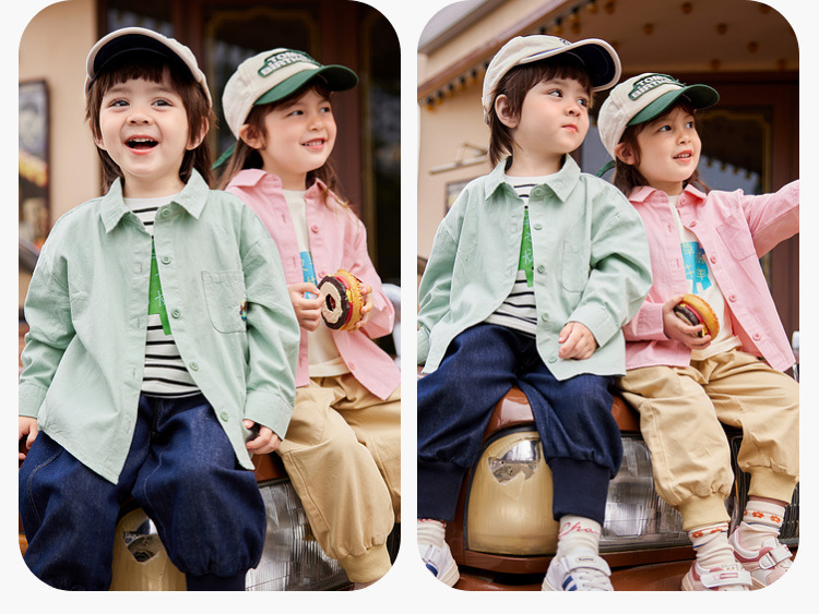 [입고 복장] Dudu 소년 셔츠 한국식 아기 소녀 셔츠 봄 아동 코트 캐주얼 바지