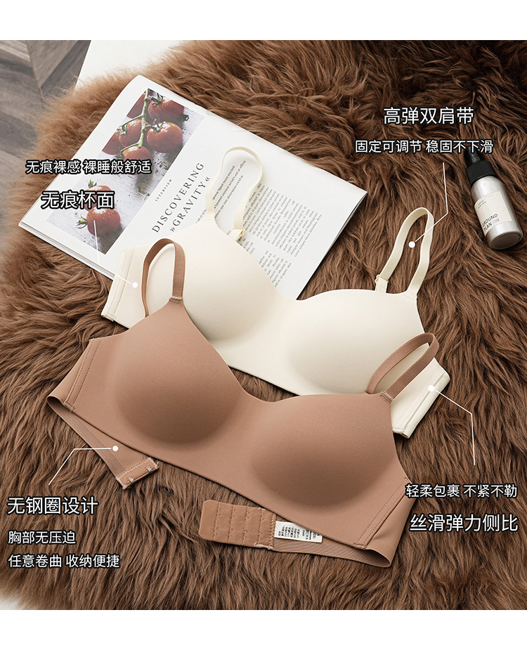 프랑스 스타일 무봉제 통기성 여성용 속옷, 얇은 소재, 작은 가슴을 모아 올려주는 디자인, 처짐 방지, 옆가슴 보정, 노와이어, 해외 직구 브라