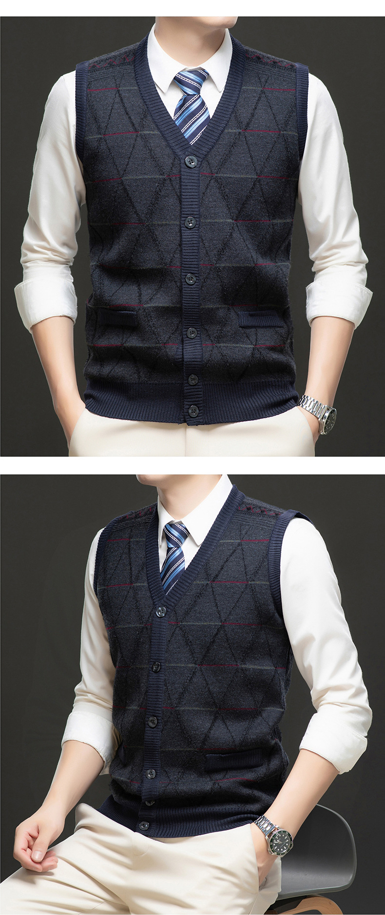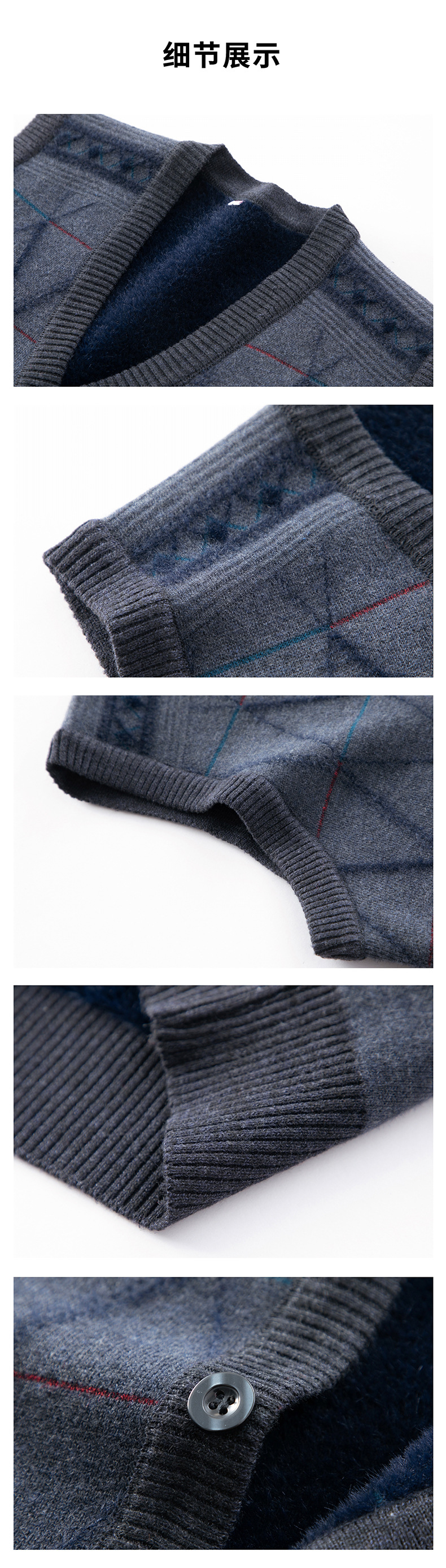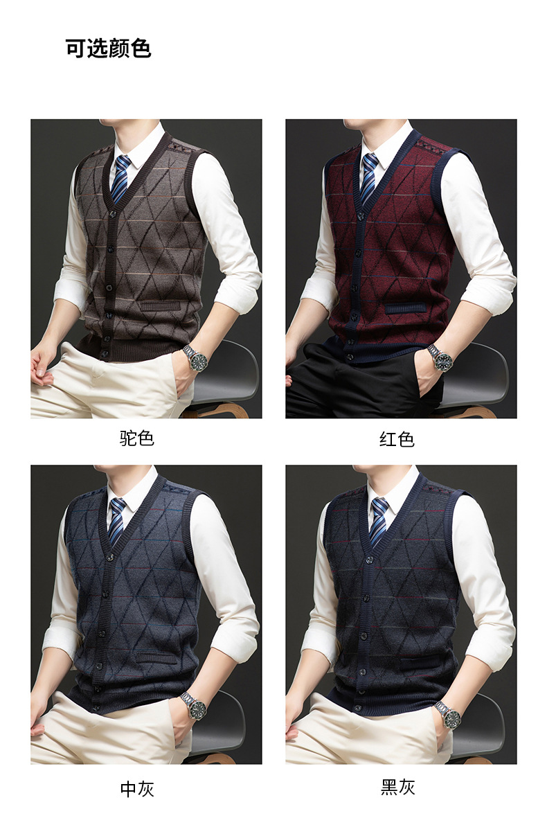 국경 간 남성 니트 민소매 스웨터 2024 겨울 새 기모 따뜻한 중년 남성 양복 조끼스토어 가기