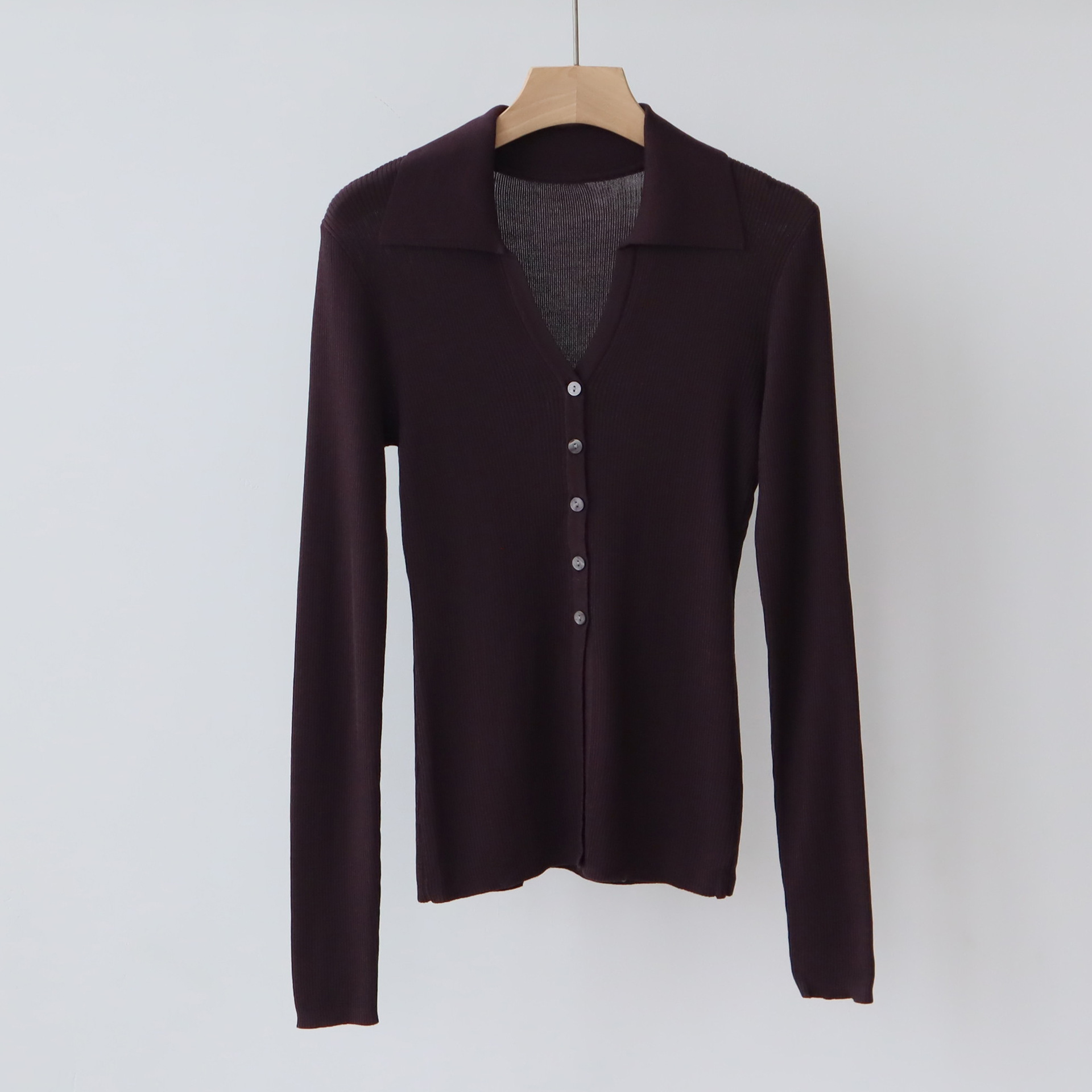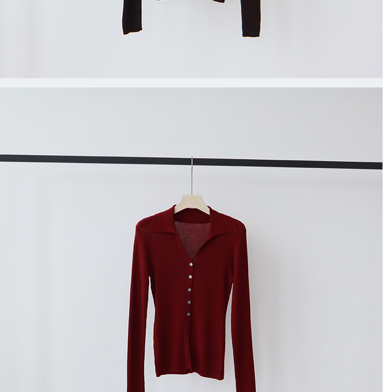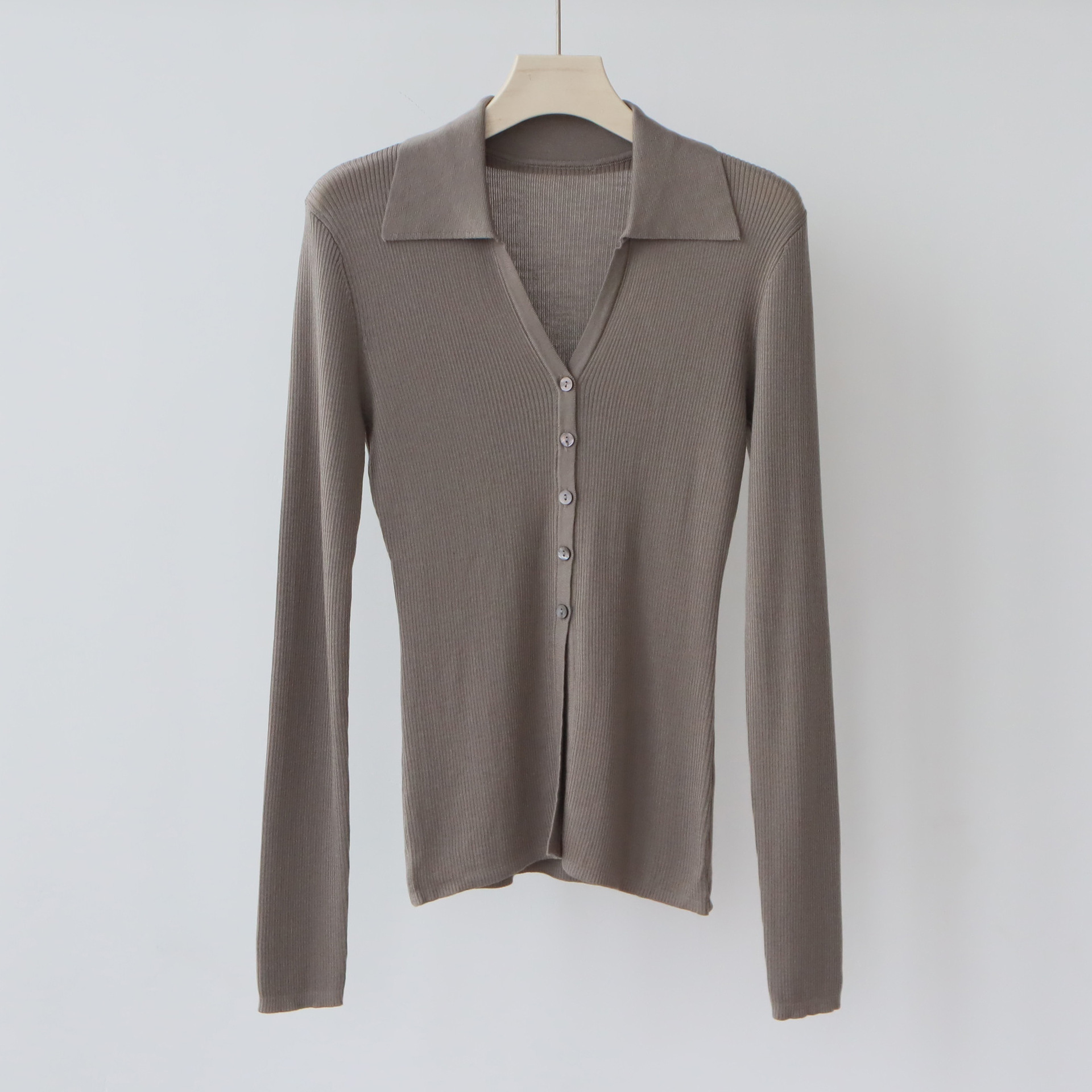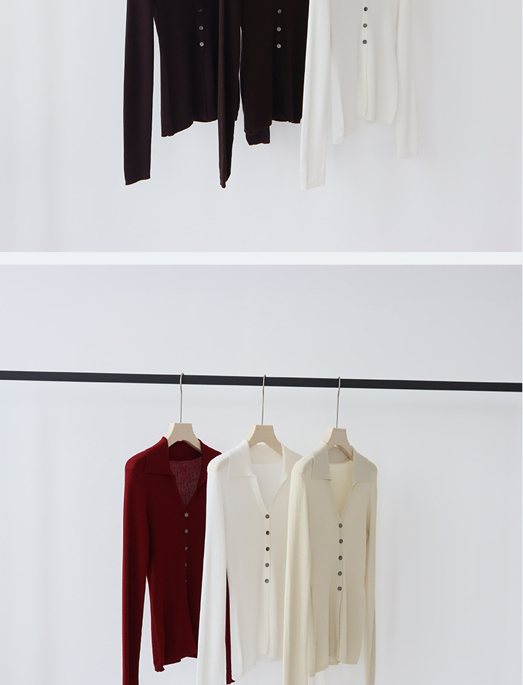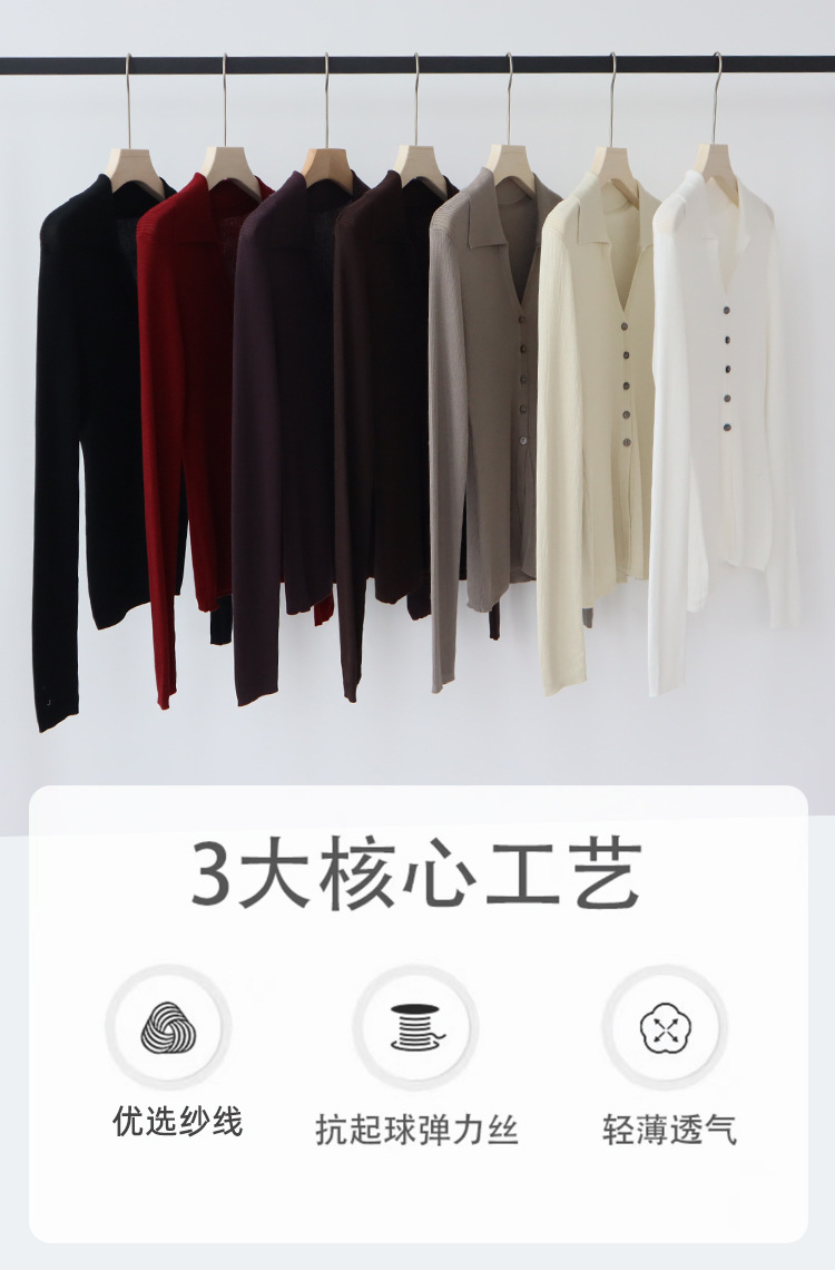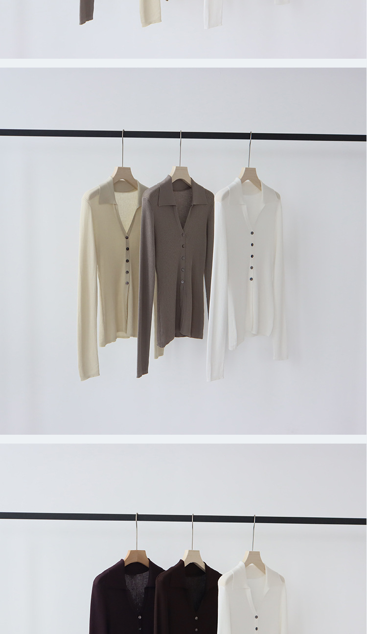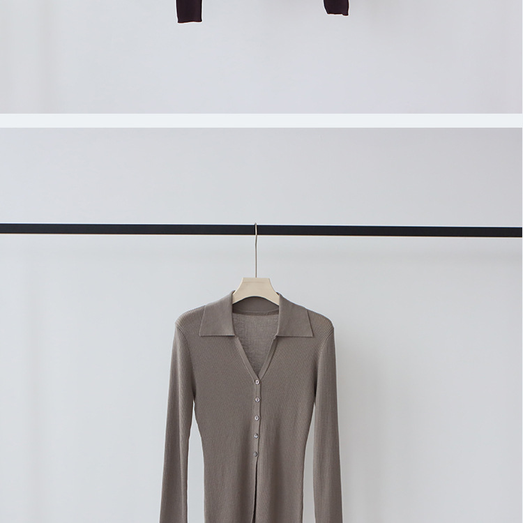 Lyocell Tencel 옷깃 니트 카디건 여성의 이른 가을 새로운 V-목 긴 소매 내베이스 셔츠 고급 탑스토어 가기