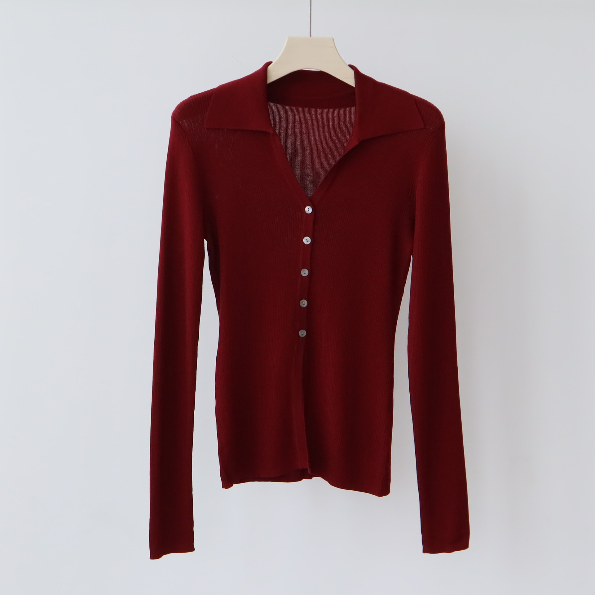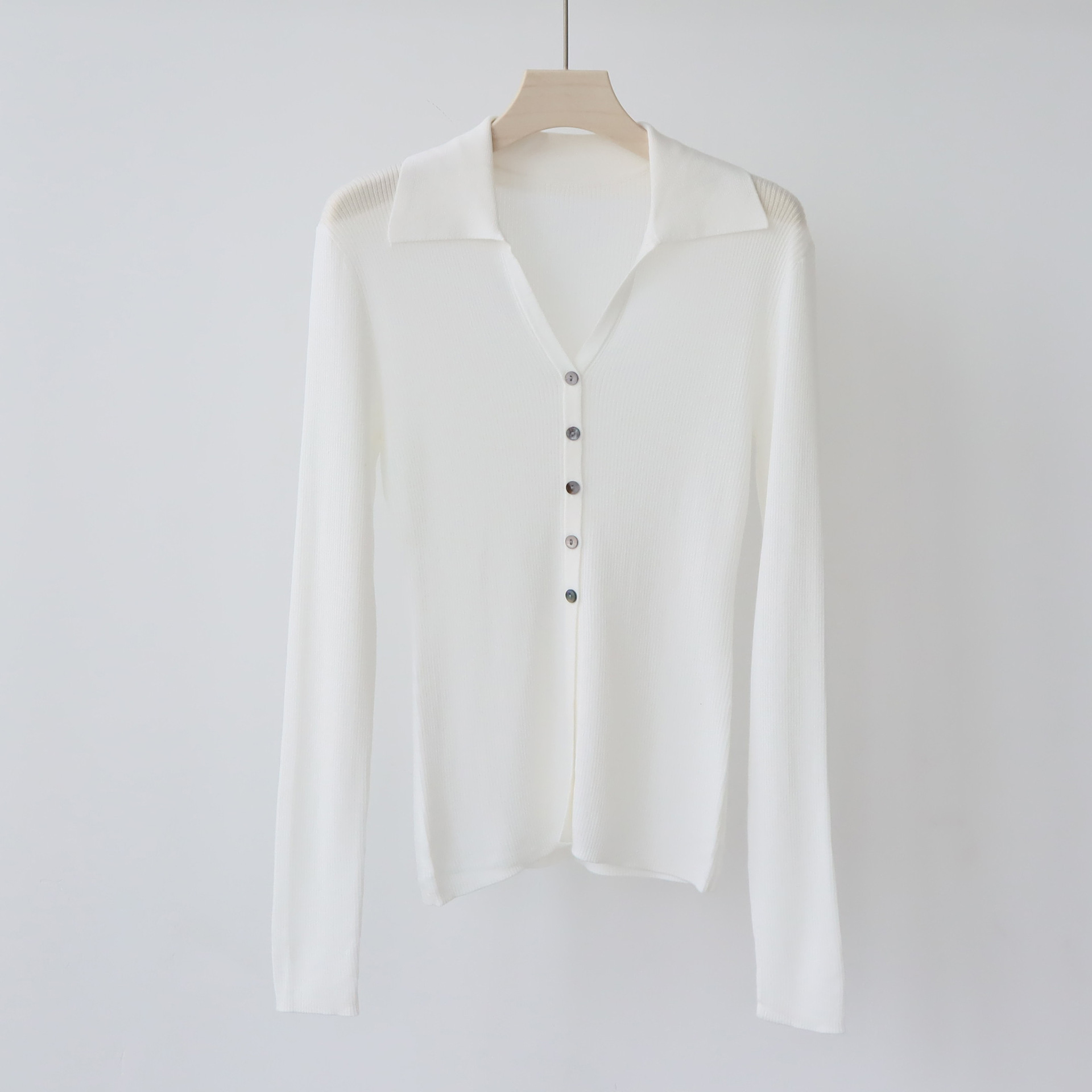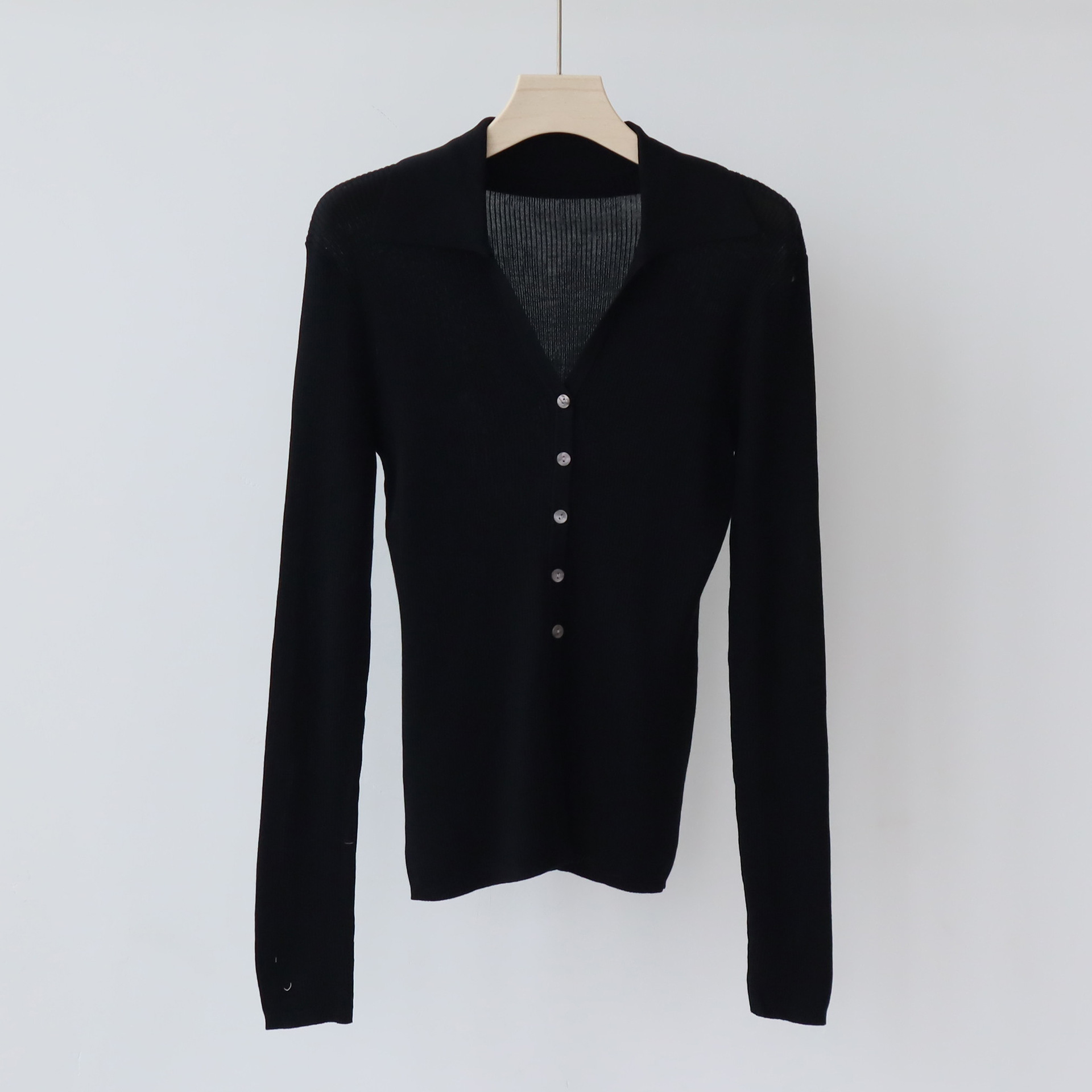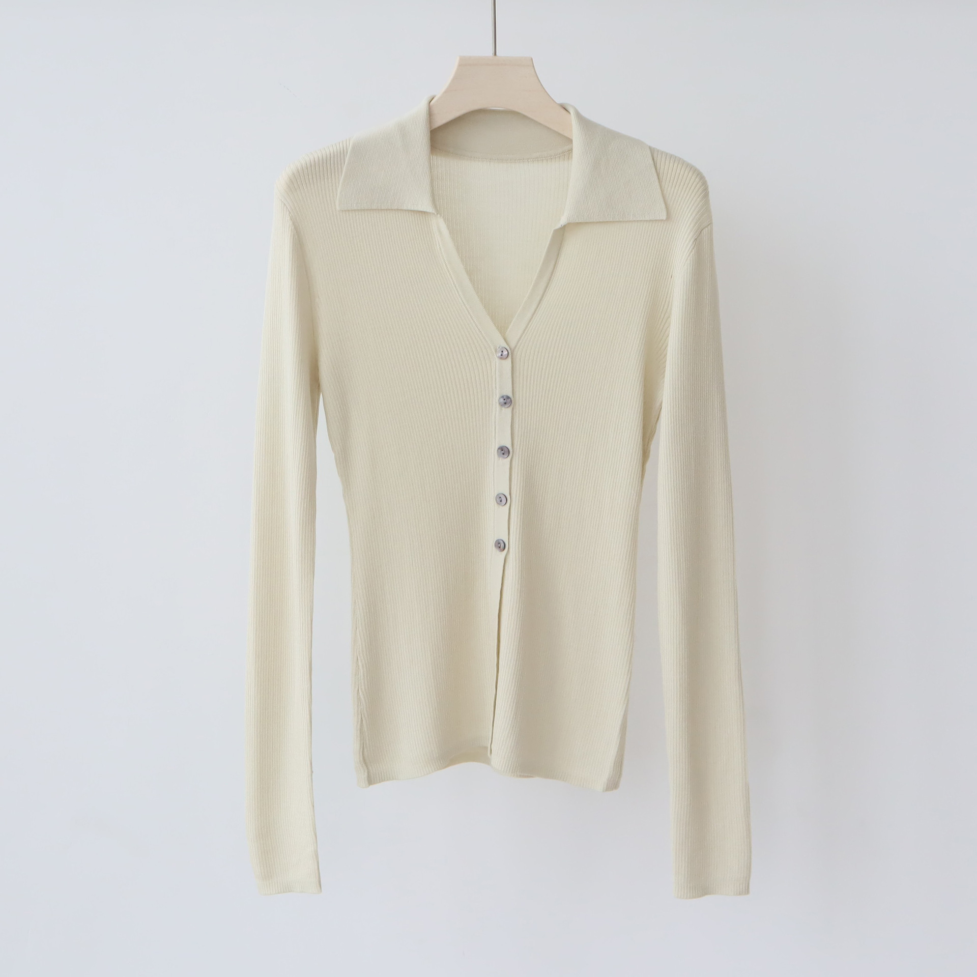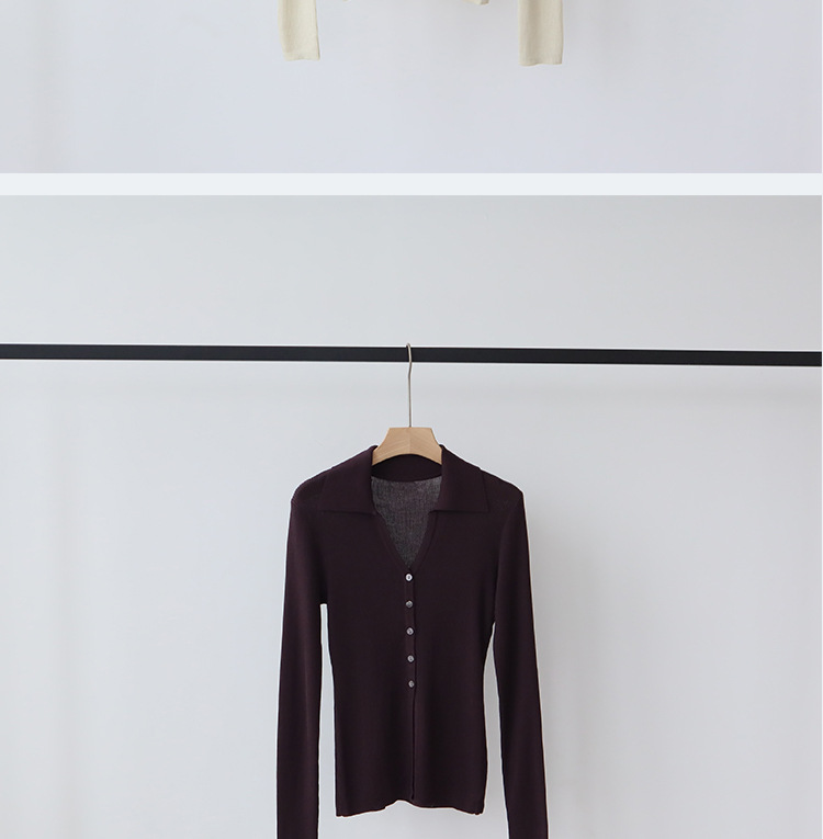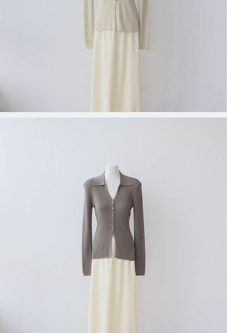 Lyocell Tencel 옷깃 니트 카디건 여성의 이른 가을 새로운 V-목 긴 소매 내베이스 셔츠 고급 탑스토어 가기