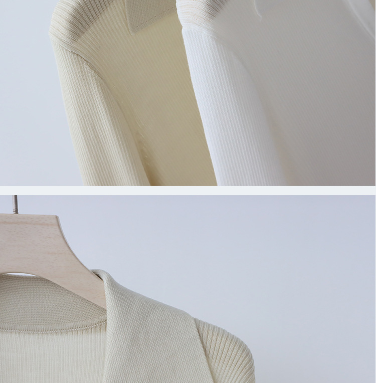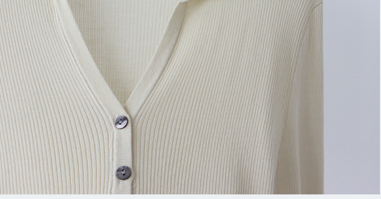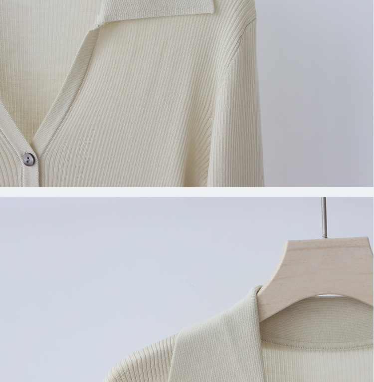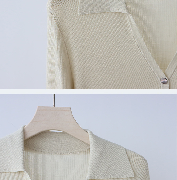 Lyocell Tencel 옷깃 니트 카디건 여성의 이른 가을 새로운 V-목 긴 소매 내베이스 셔츠 고급 탑