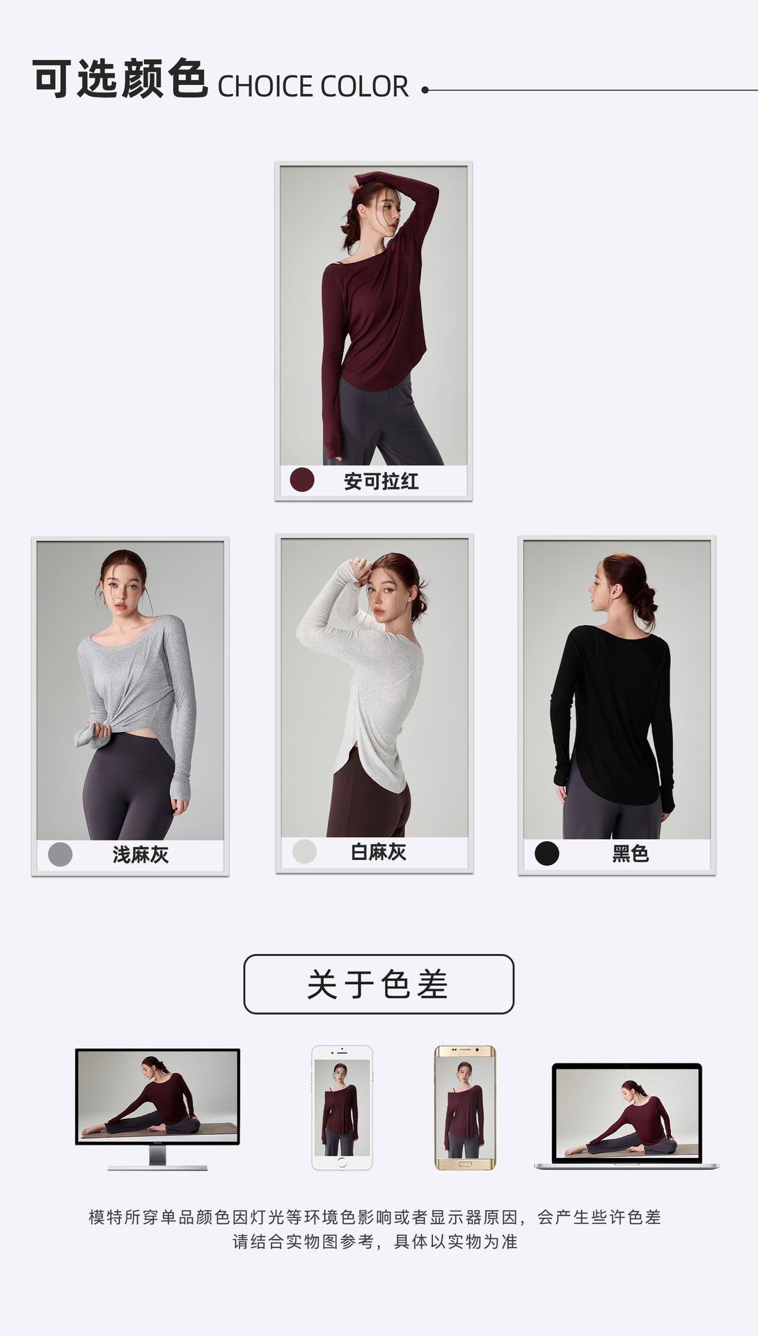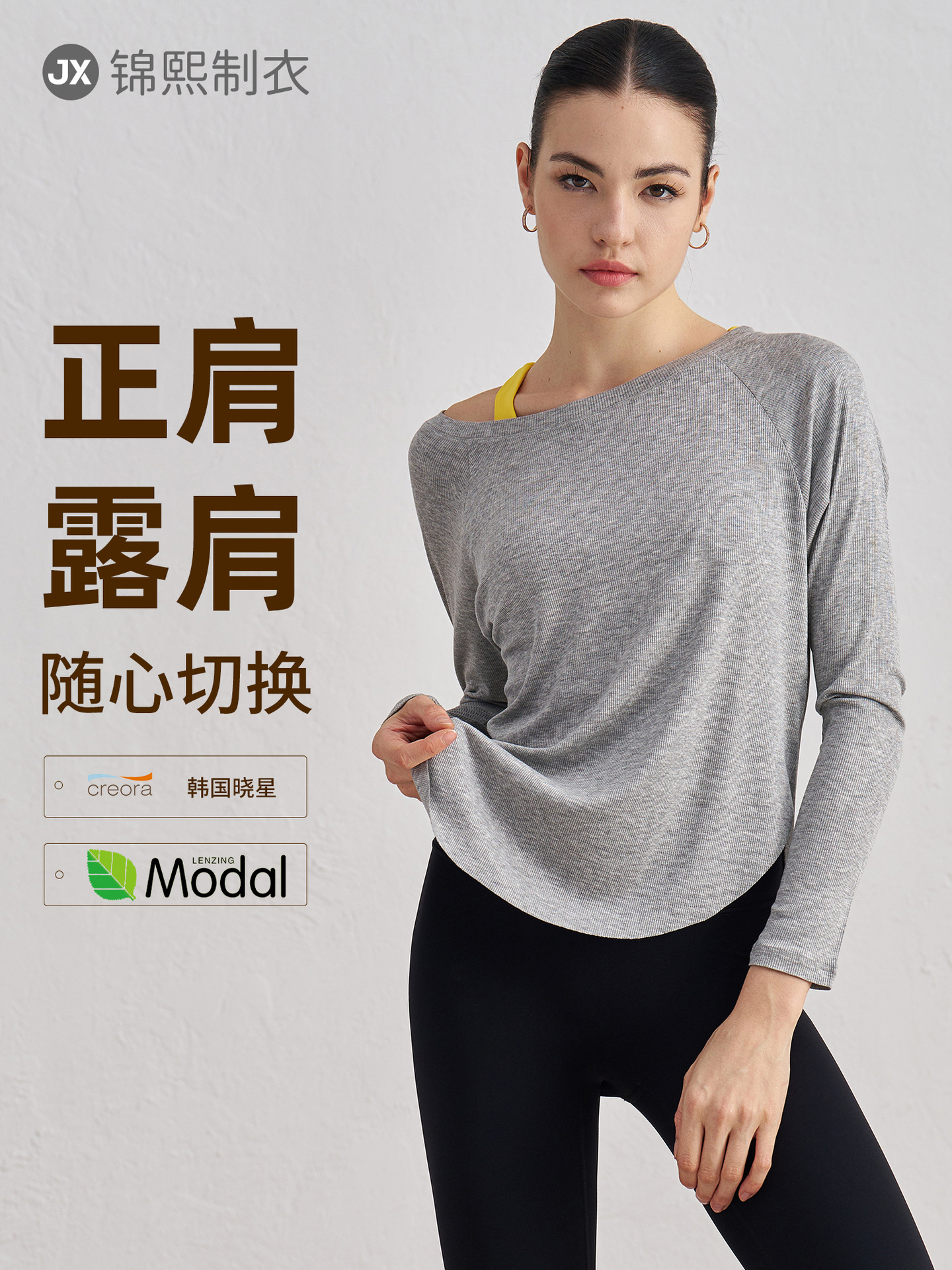편안한 긴팔 여성 요가 커버업, 봄 슬리밍, 고급 요가복, 스포츠 루즈하고 편안한 상의스토어 가기