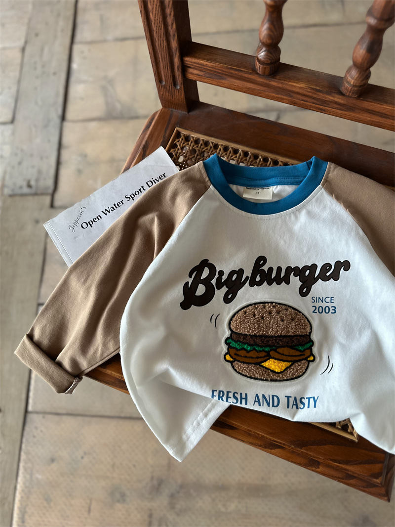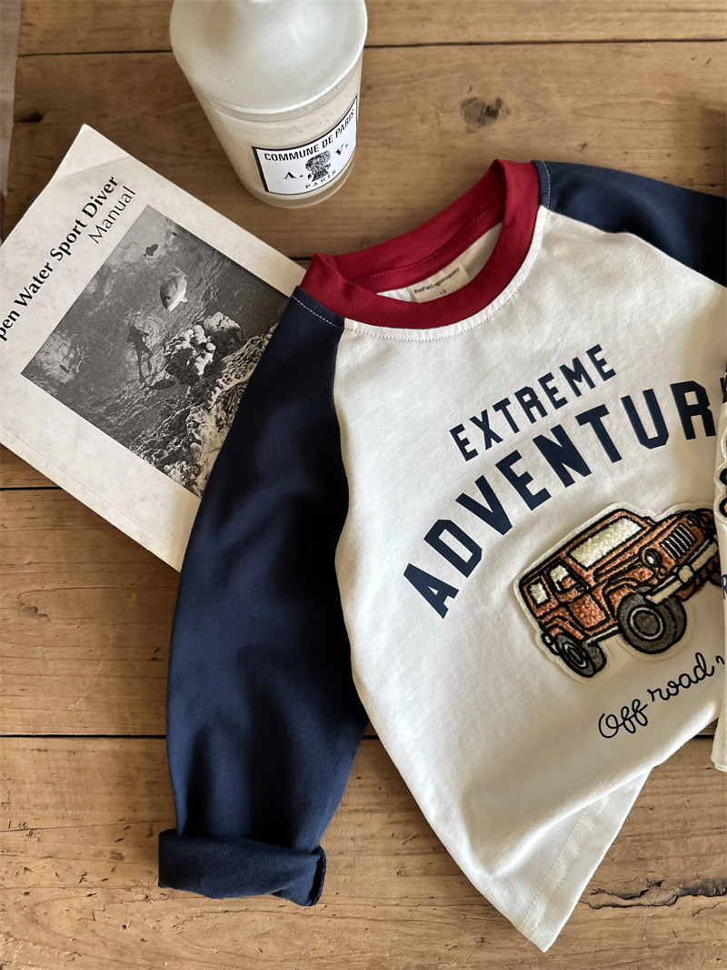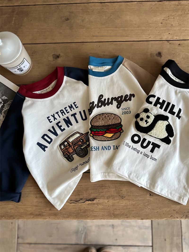 어린이 티셔츠 2025 봄, 가을 소년 만화 면화 티셔츠 소년과 소녀 서양식 컬러 매칭 라글란 슬리브 바닥 셔츠 도매스토어 가기