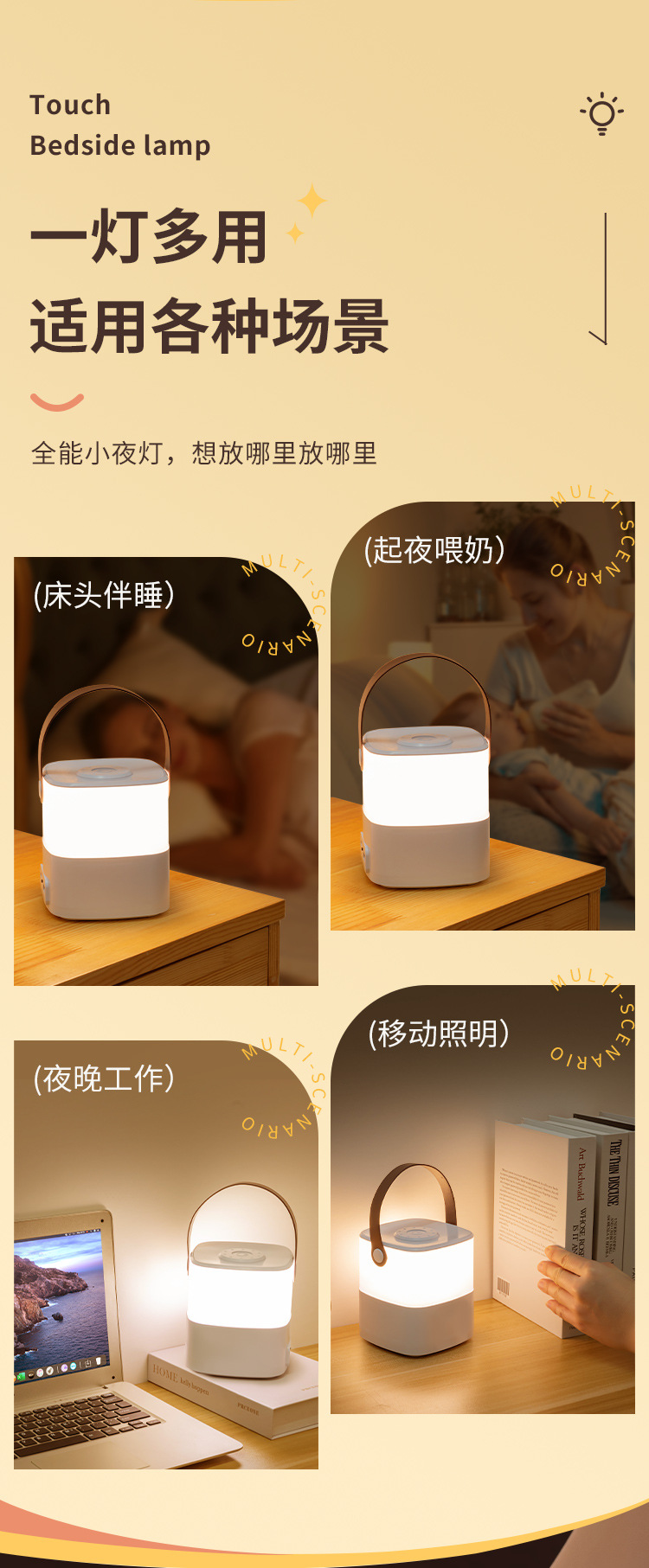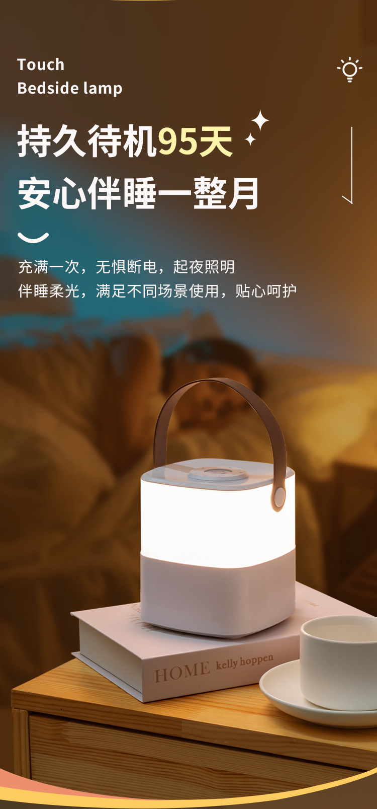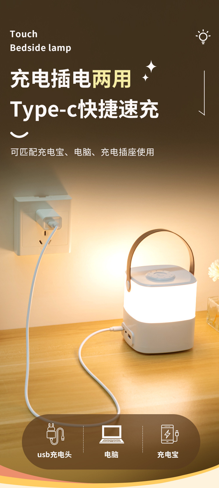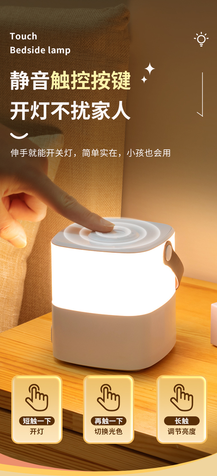 충전 터치 야간 조명 침실 따뜻한 빛 분위기 밝은 밤 수면 눈 보호 부드러운 조명 led 침대 옆 빛 수면 조명