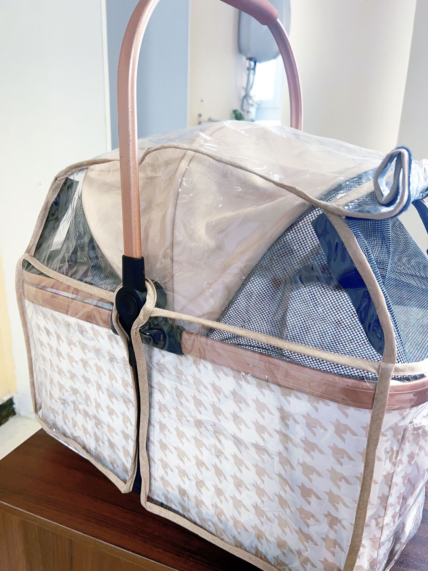 透明全包裹设计,360°可视化观察宠物状态;高弹PVC材质,防水防风且耐磨;适配多种宠物提篮,安装便捷。包边加固处理,防止磨损;魔术贴开合设计,方便取放宠物;底部透气网布,保证空气流通。