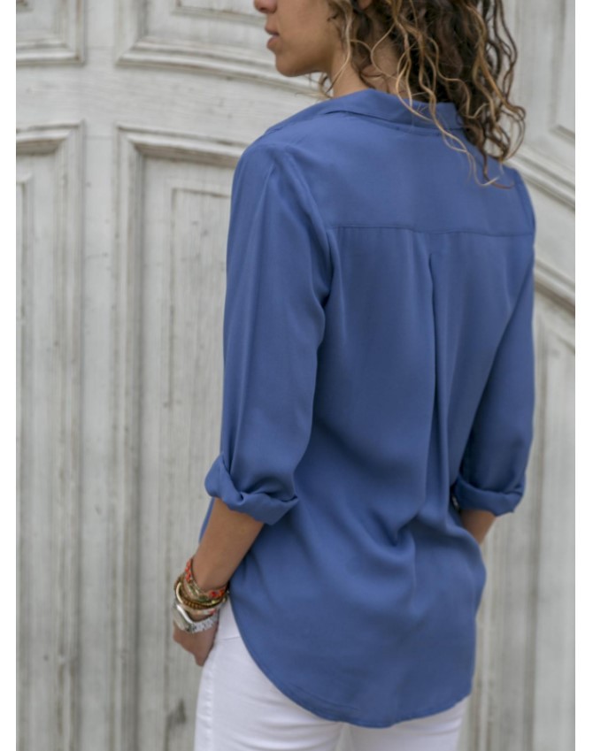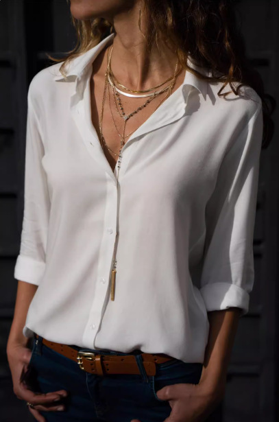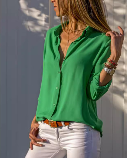 가을 새로운 달콤한 유럽과 미국 스타일의 단색 단일 가슴 간단한 패션 긴 소매 쉬폰 셔츠 탑 올 매치 여성용 셔츠