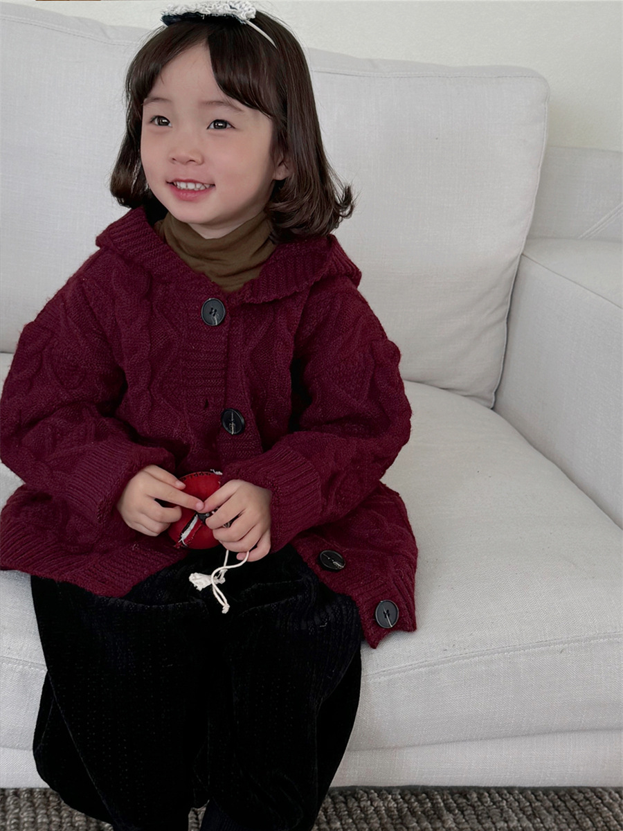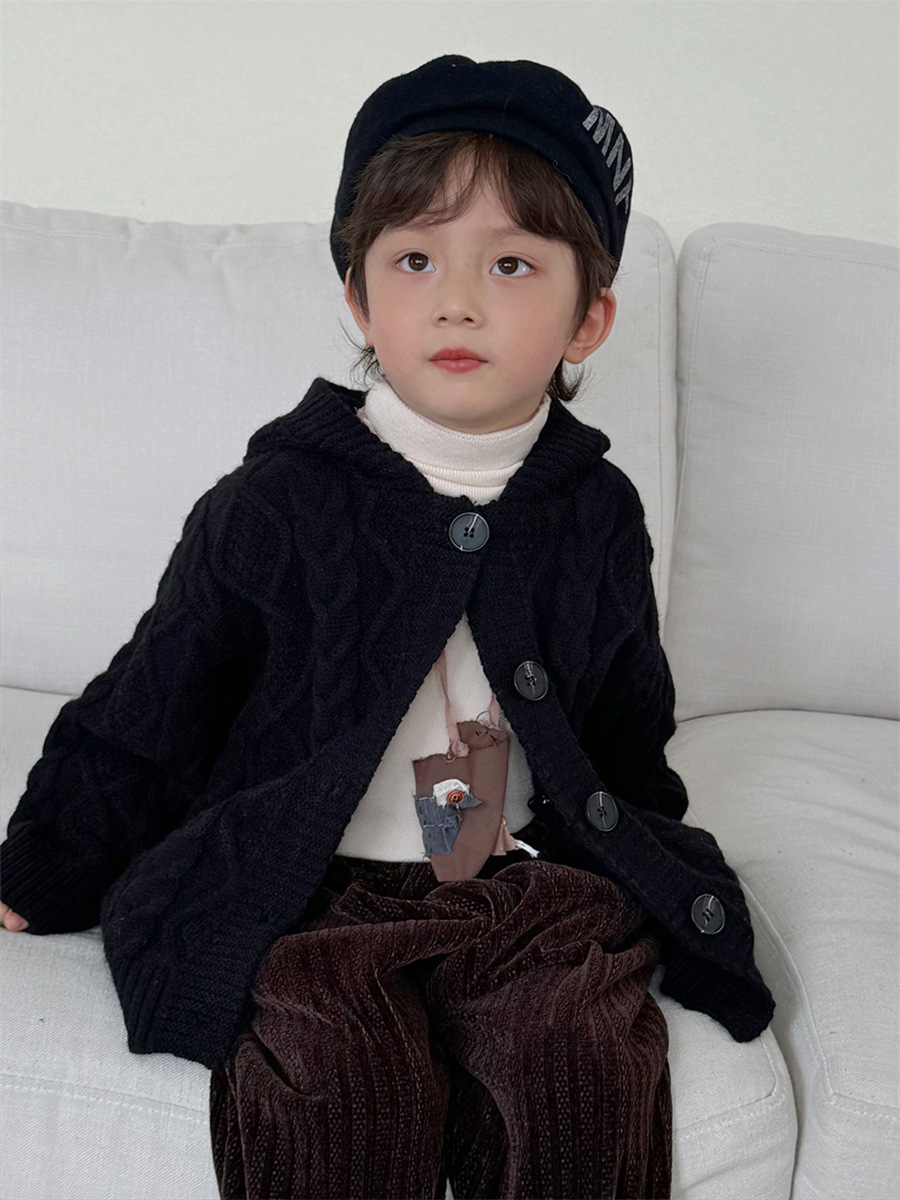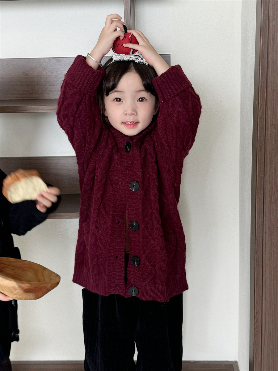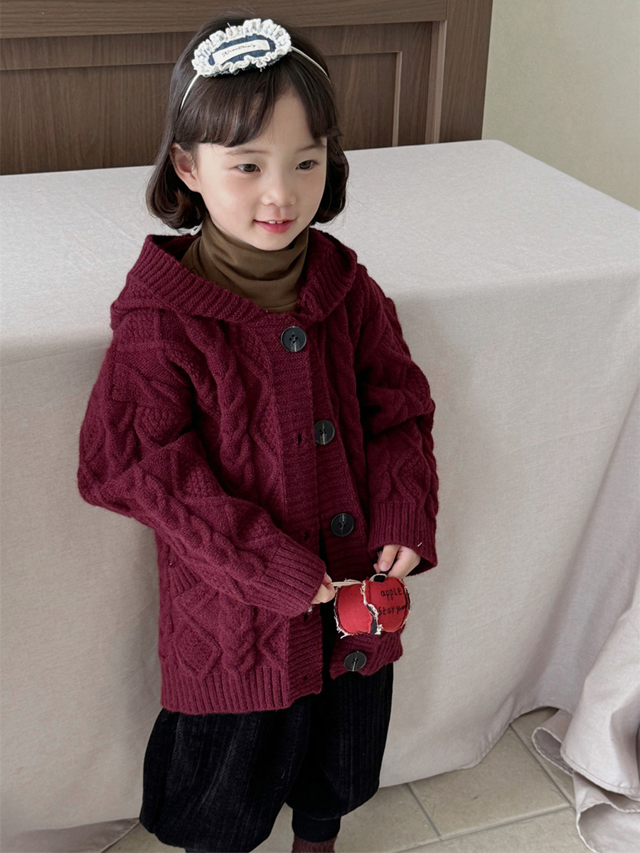 JiaYe 어린이 제품 2025년 가을 신상품 꼬임 니트 가디건 남녀 아기 레트로 스웨터 후드 코트