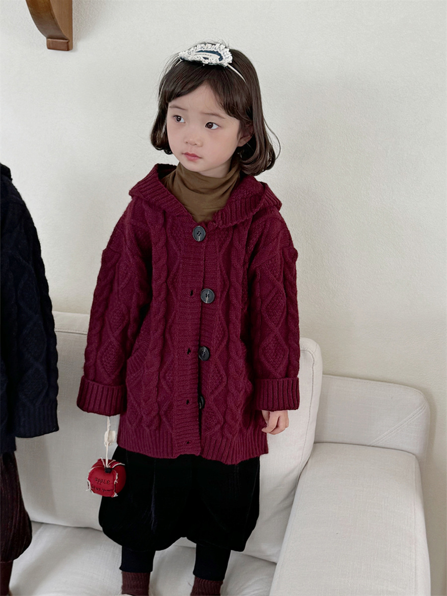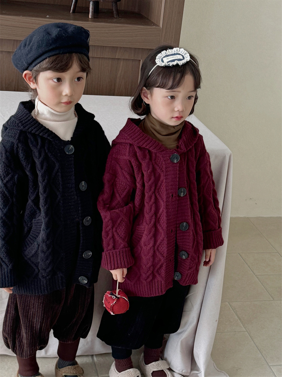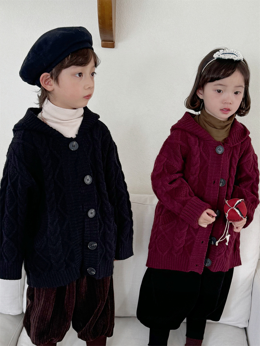 JiaYe 어린이 제품 2025년 가을 신상품 꼬임 니트 가디건 남녀 아기 레트로 스웨터 후드 코트스토어 가기