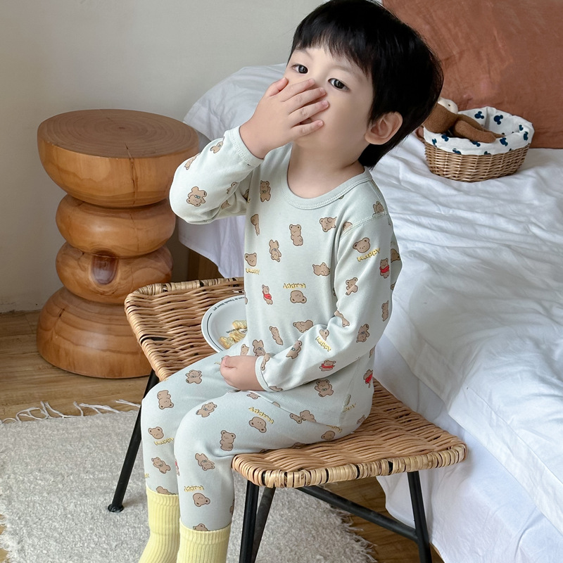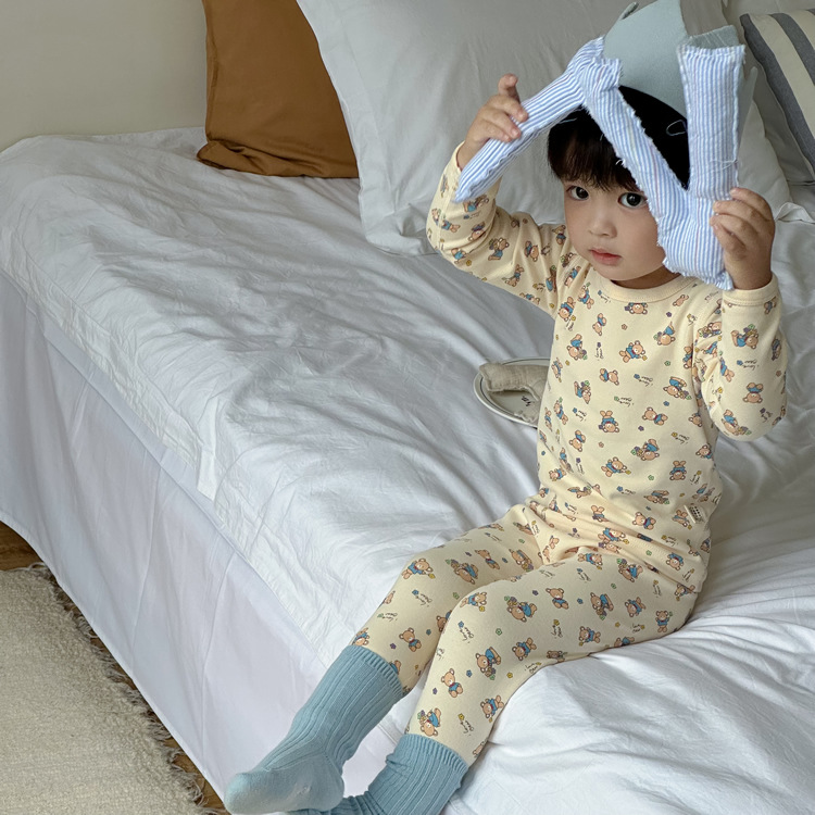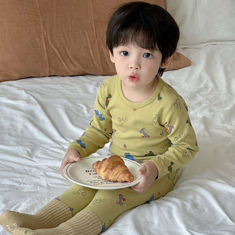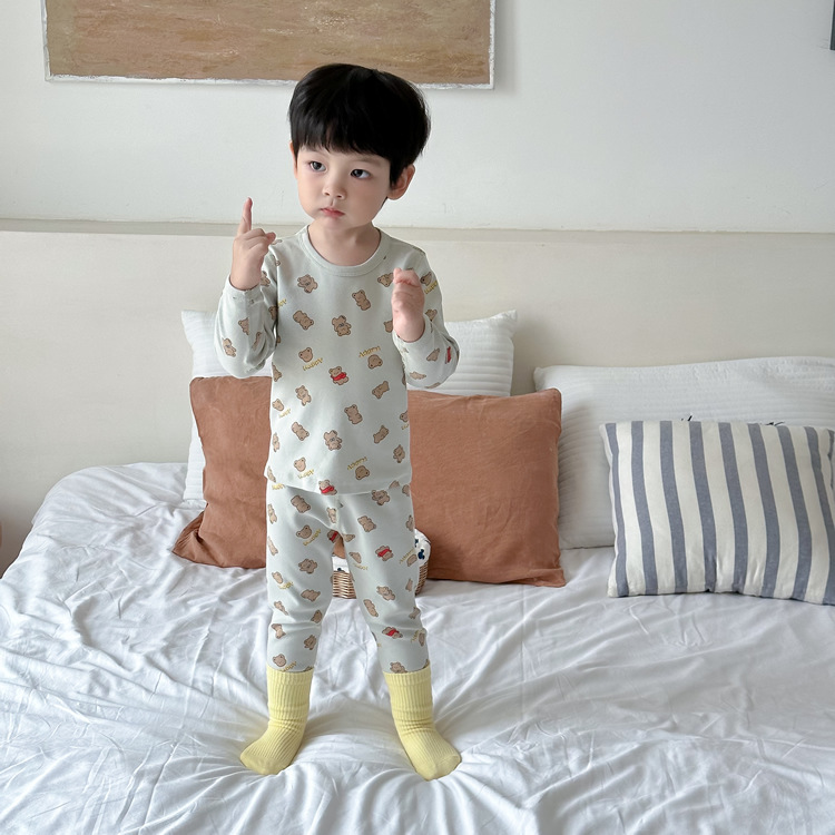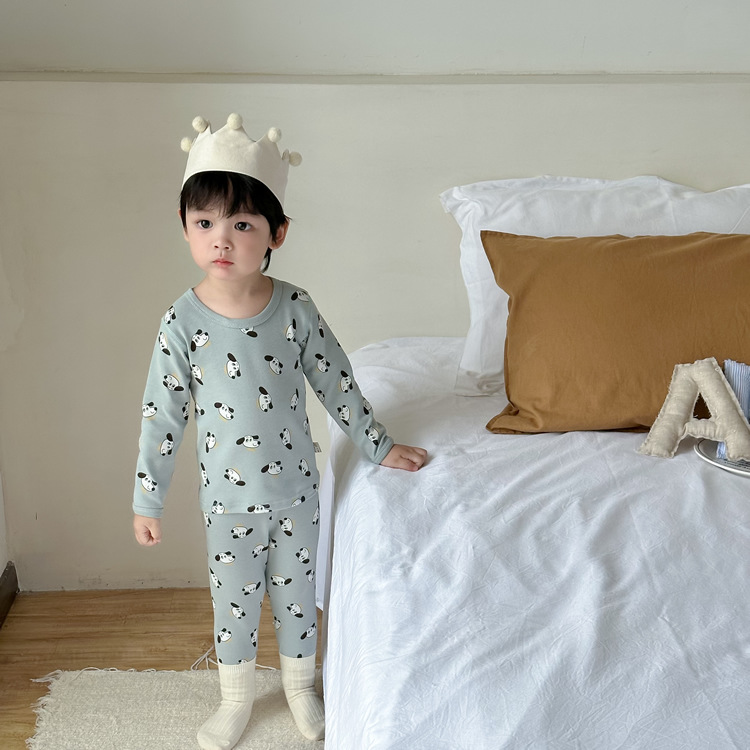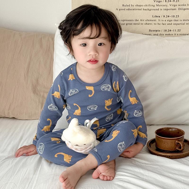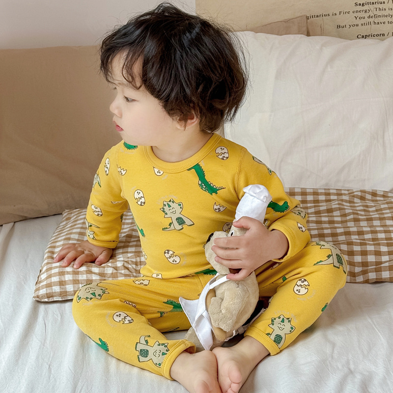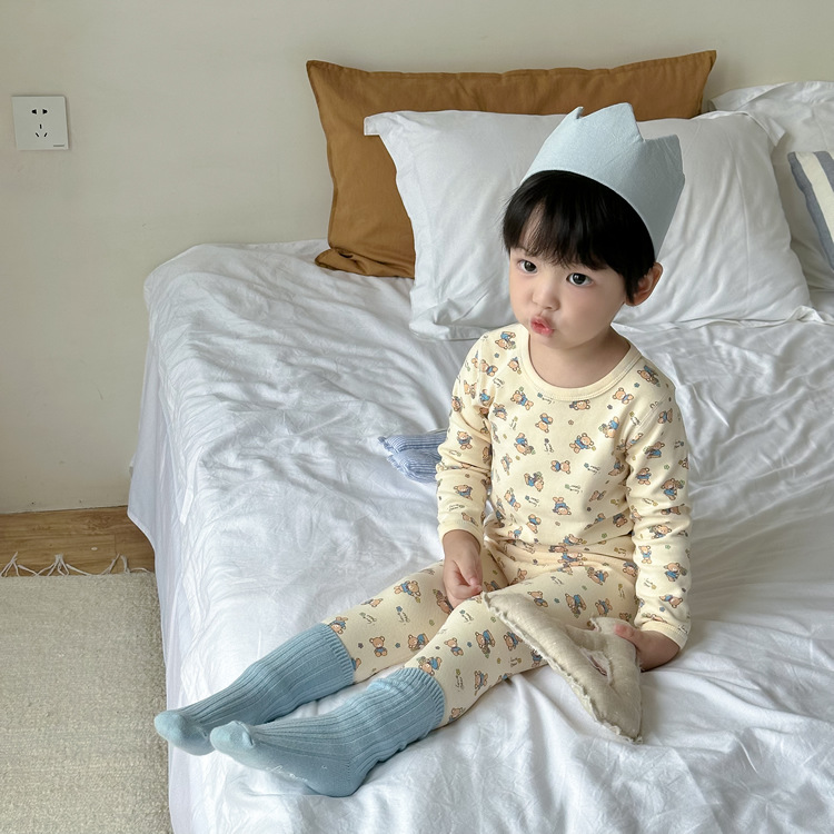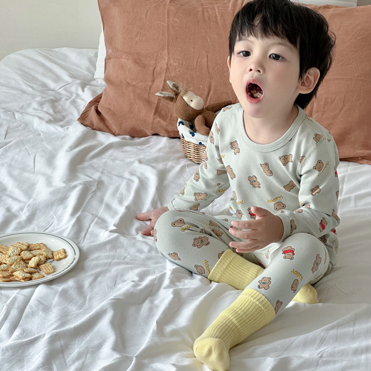새로운 어린이 가을 옷과 바지 세트 가을 겨울 두꺼운 소년과 소녀 만화 따뜻한 기본 속옷 아기 홈 옷스토어 가기