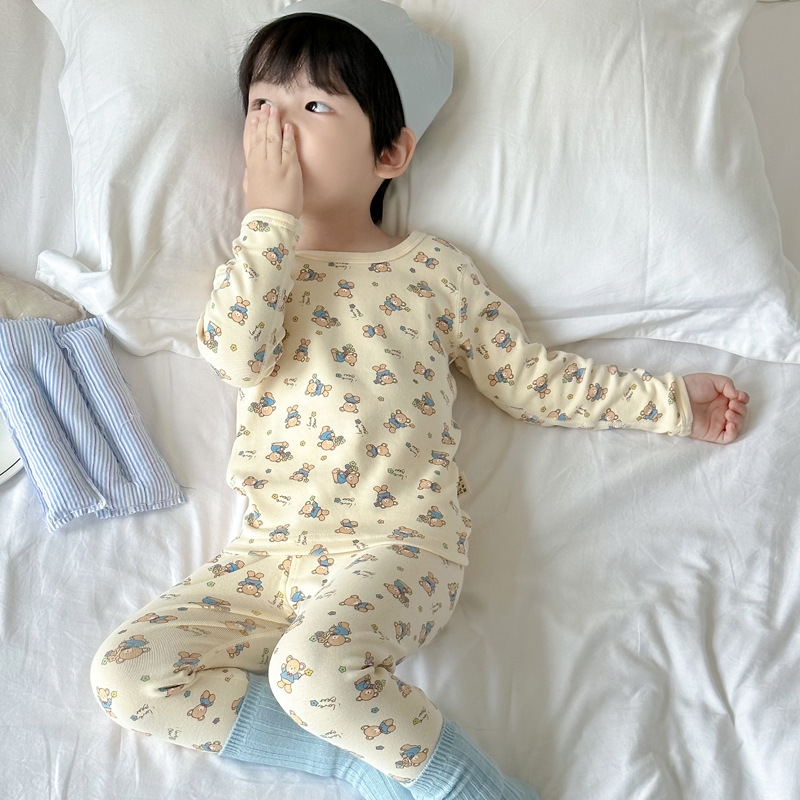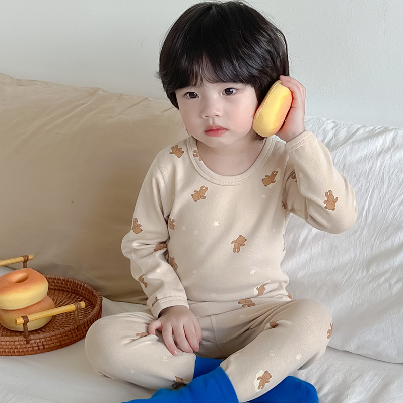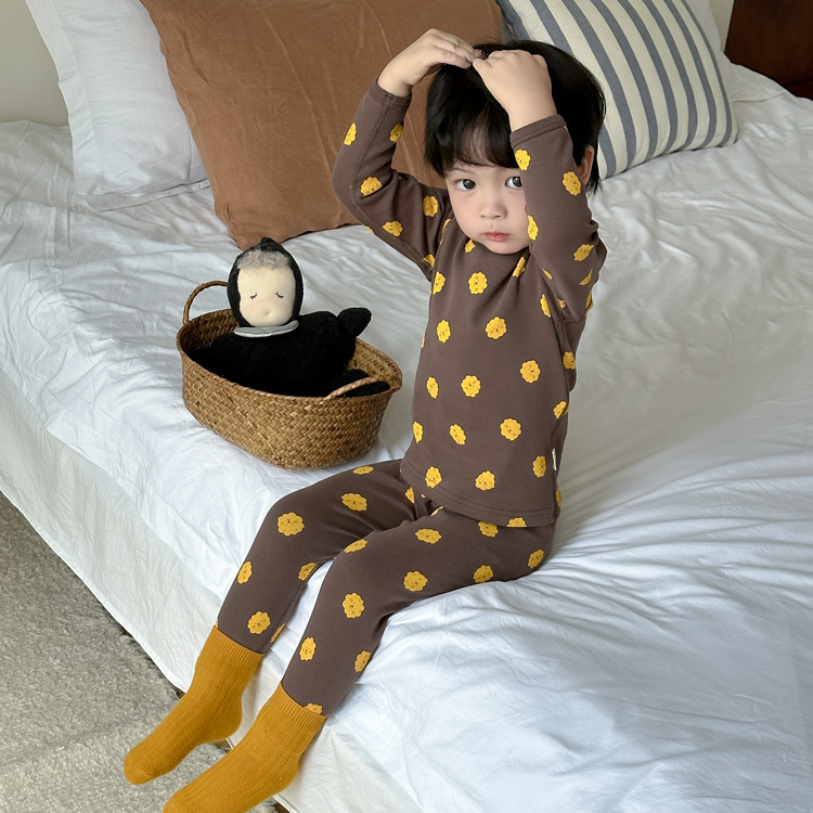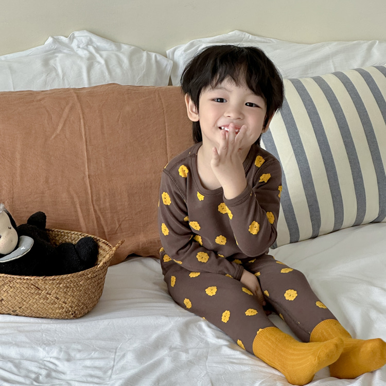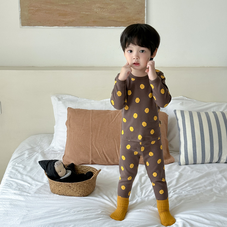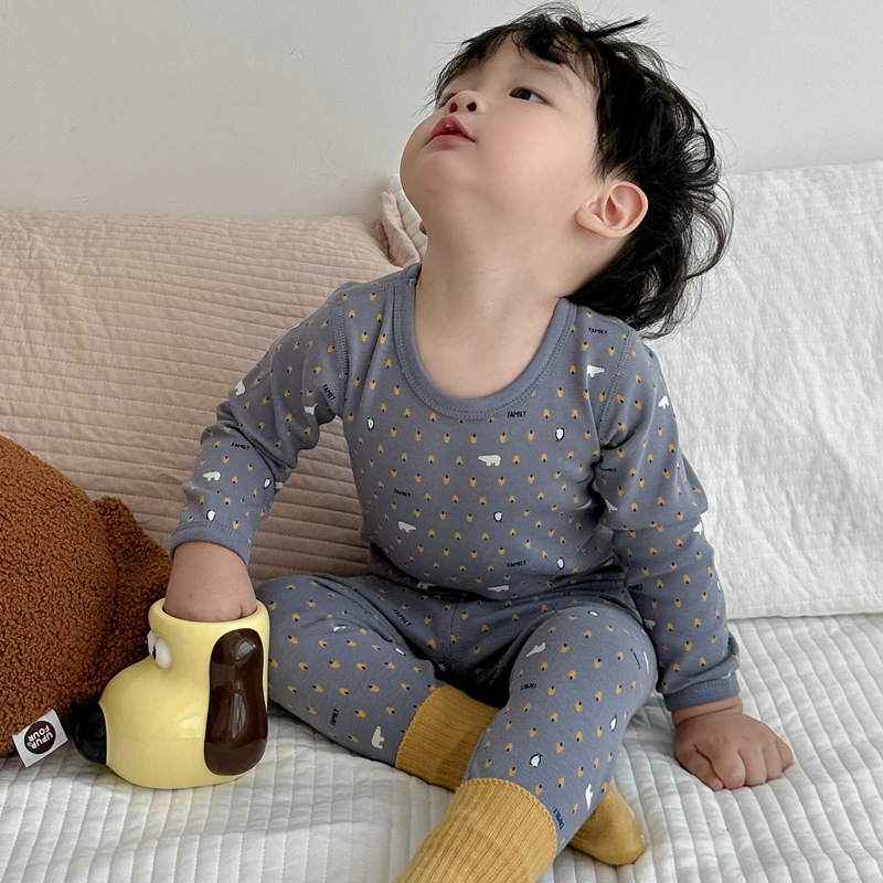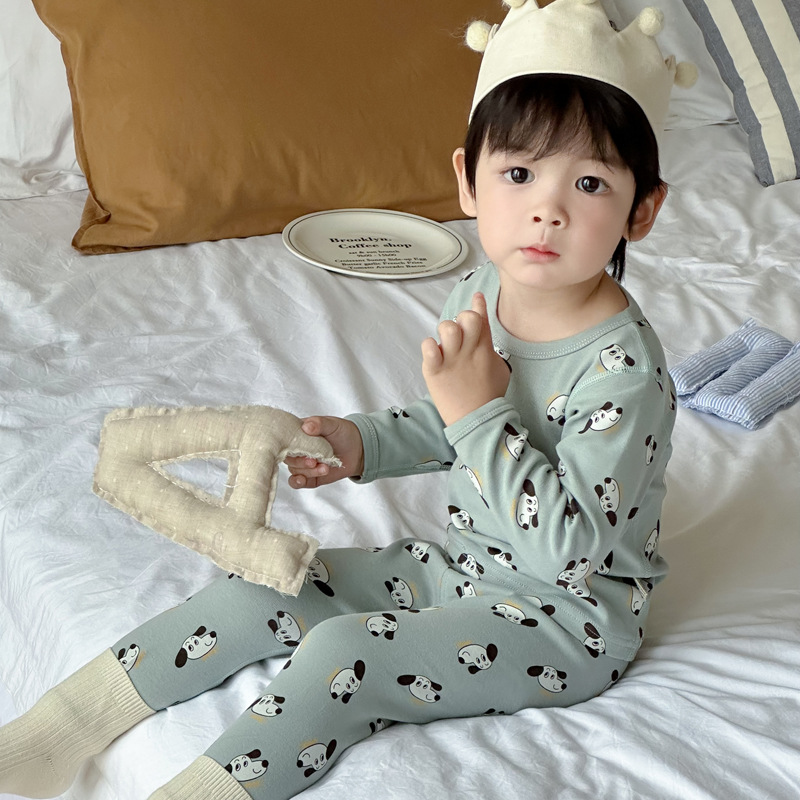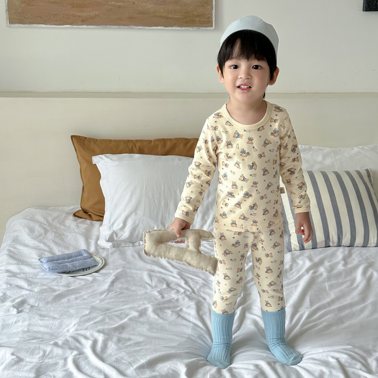 새로운 어린이 가을 옷과 바지 세트 가을 겨울 두꺼운 소년과 소녀 만화 따뜻한 기본 속옷 아기 홈 옷스토어 가기