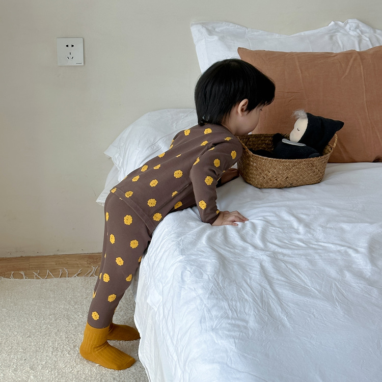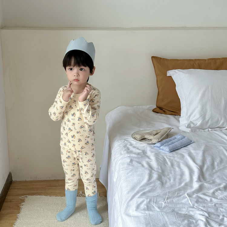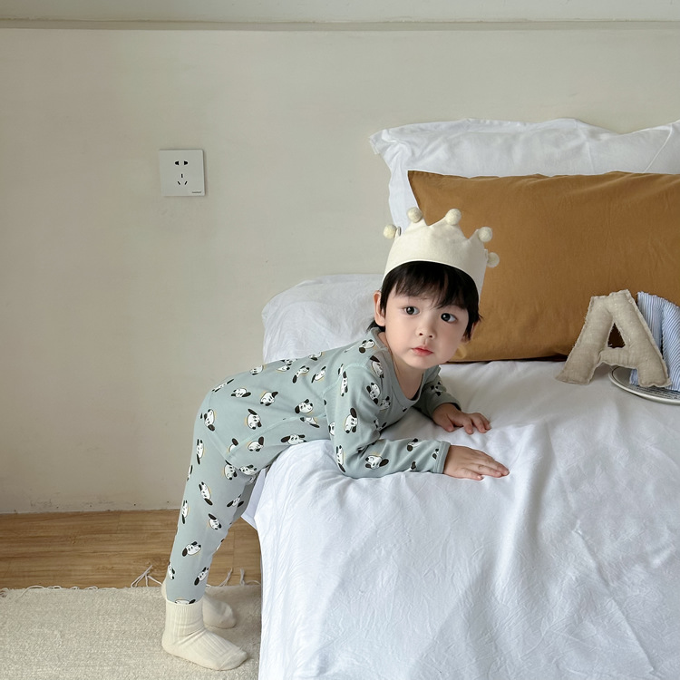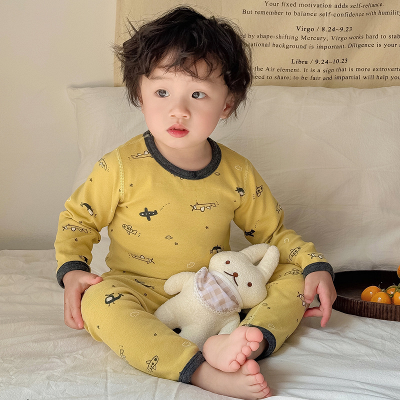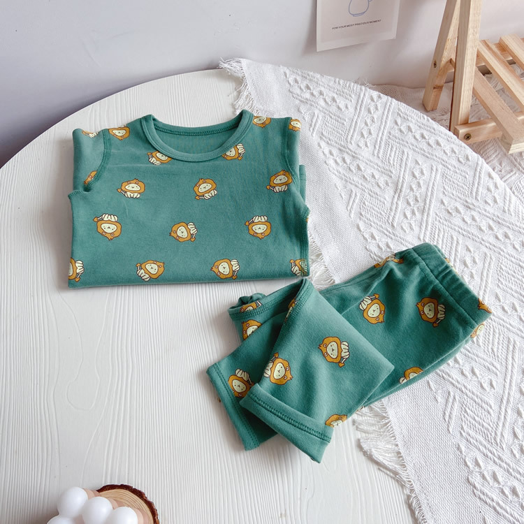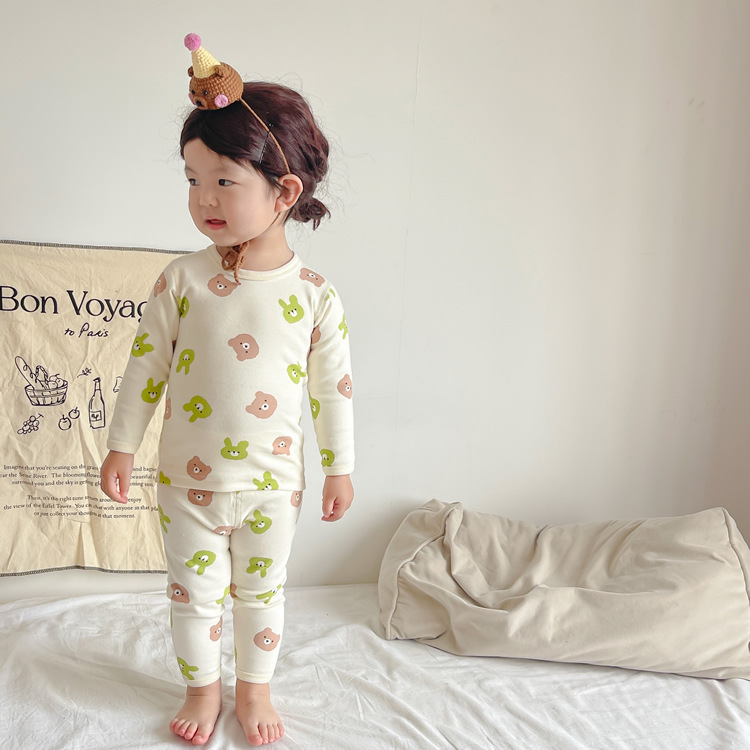 새로운 어린이 가을 옷과 바지 세트 가을 겨울 두꺼운 소년과 소녀 만화 따뜻한 기본 속옷 아기 홈 옷