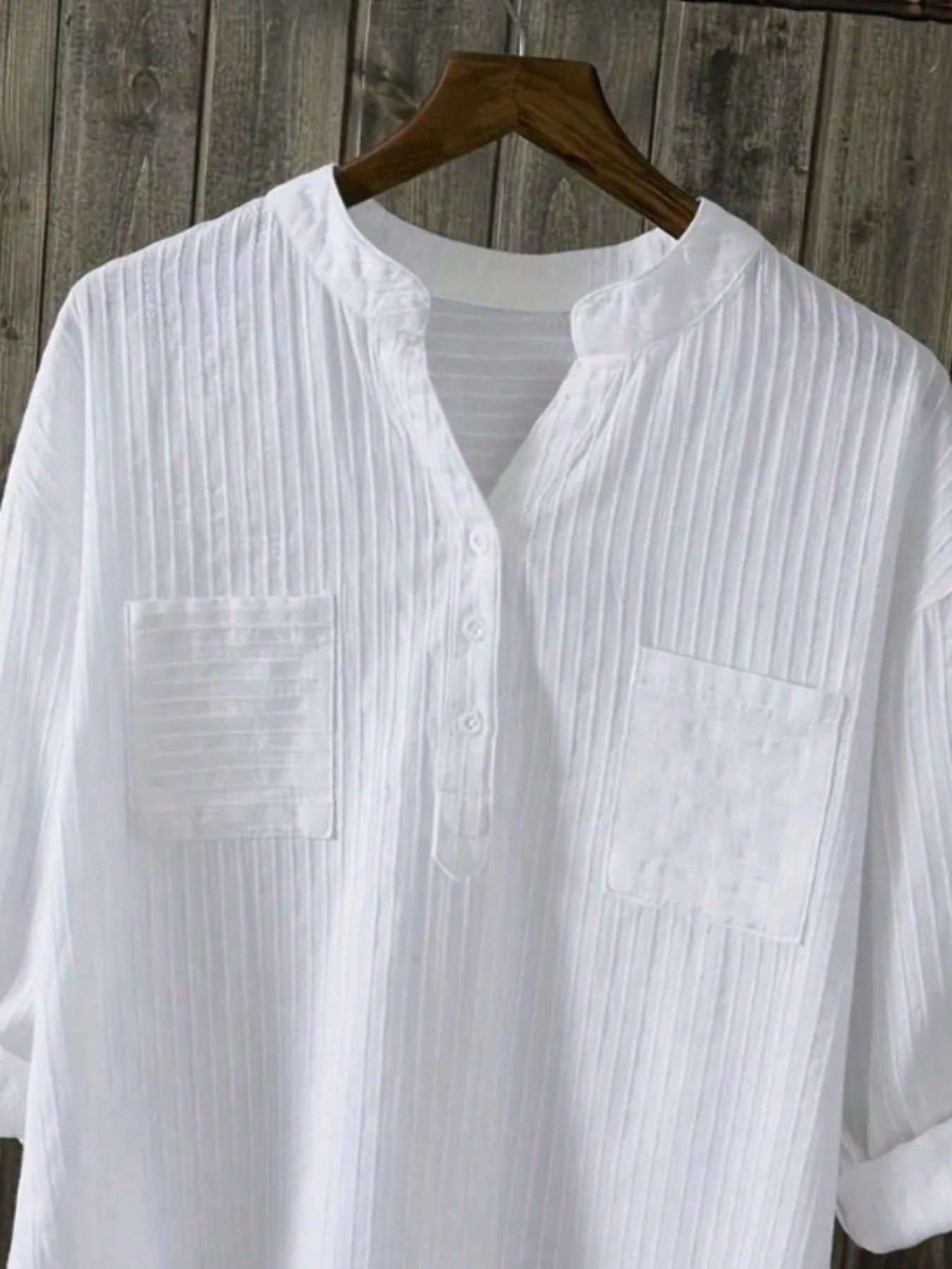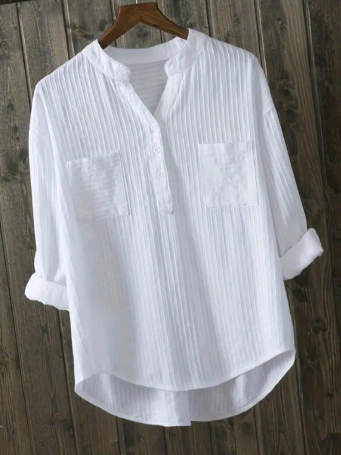 2024 유럽과 미국의 플러스 사이즈 여성 화이트 셔츠 여성용 긴 소매 새로운 복장 느슨한 캐주얼 디자인 V-Neck 셔츠스토어 가기