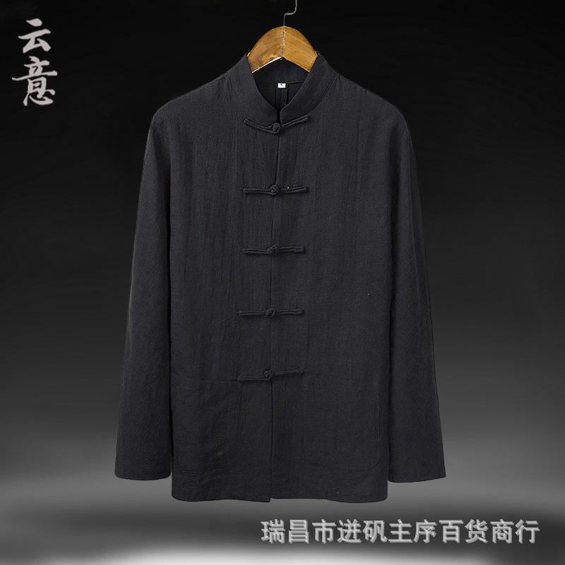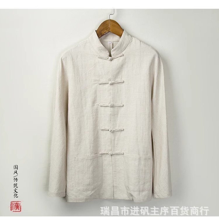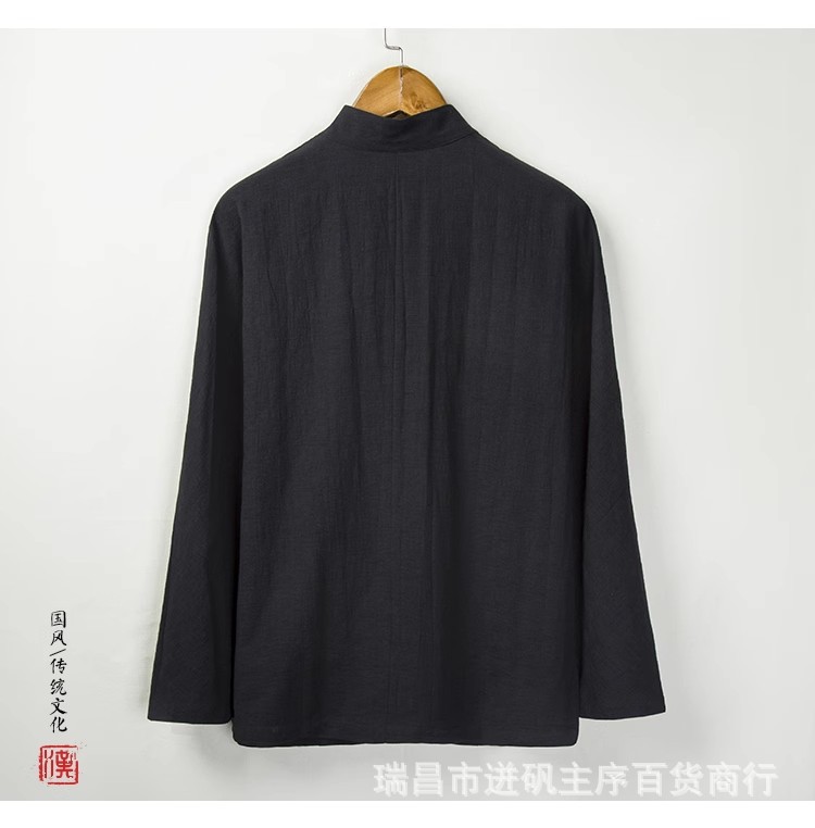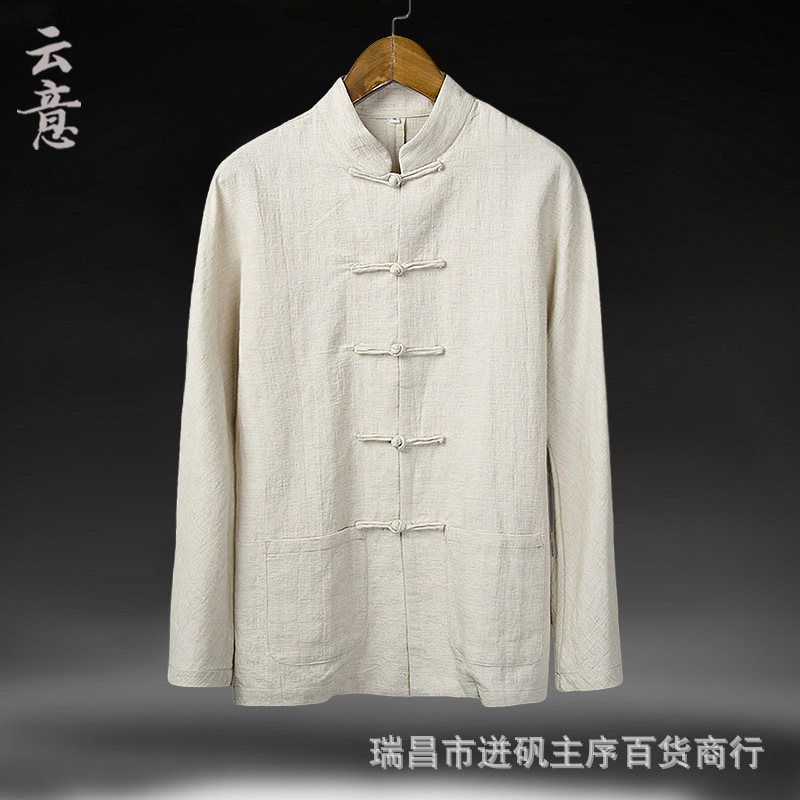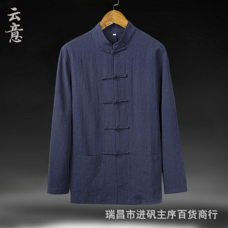 리넨 셔츠 남자 대외 무역 Guofeng 남자 중국 중산 세트 한 세트 새로운 중국 스타일 차 세트 긴 소매 마구아 남자 셔츠스토어 가기