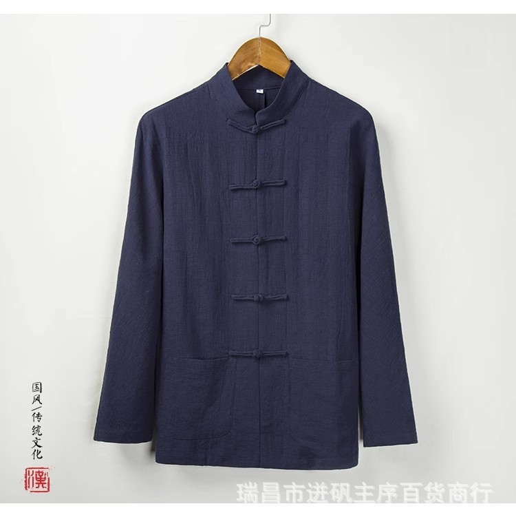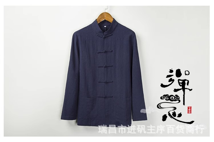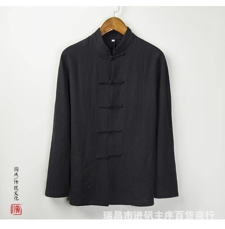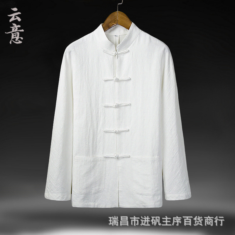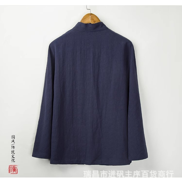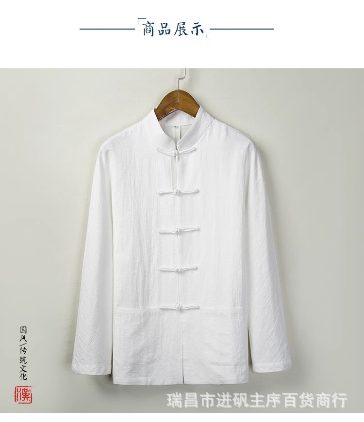 리넨 셔츠 남자 대외 무역 Guofeng 남자 중국 중산 세트 한 세트 새로운 중국 스타일 차 세트 긴 소매 마구아 남자 셔츠스토어 가기