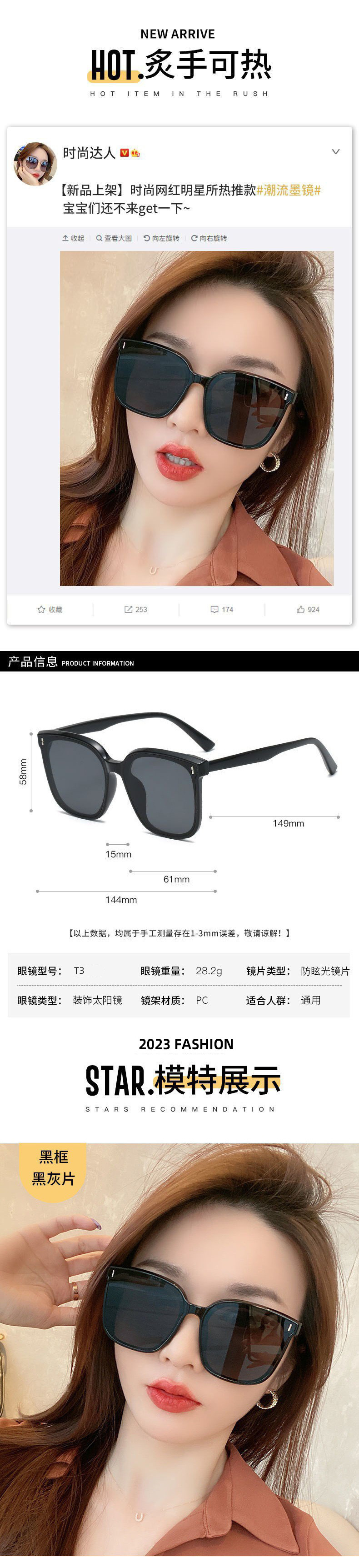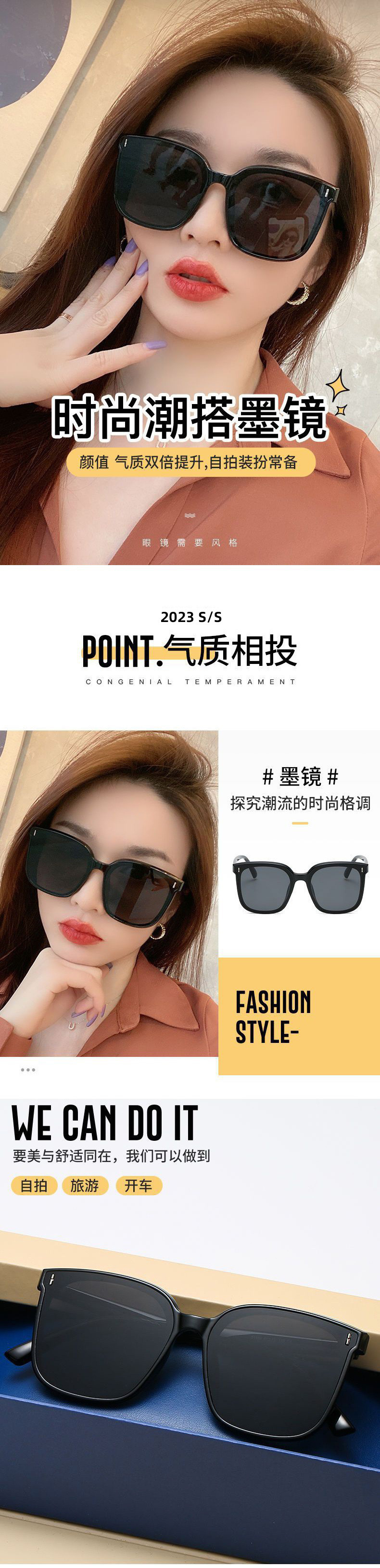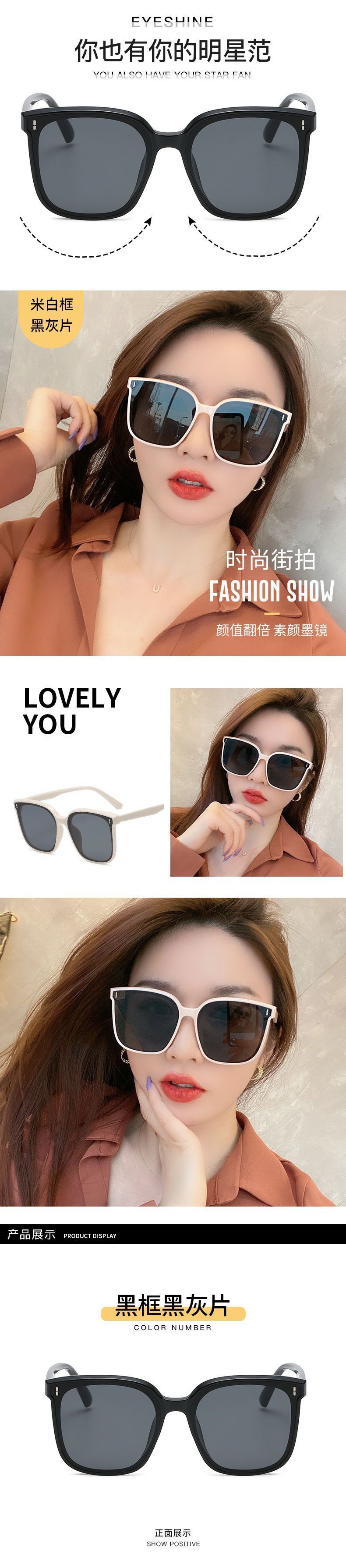 Gm 선글라스 여성 하이 엔드 패션 대형 프레임 그물 레드 같은 스타일 선글라스 도매 하이 엔드 큰 얼굴스토어 가기