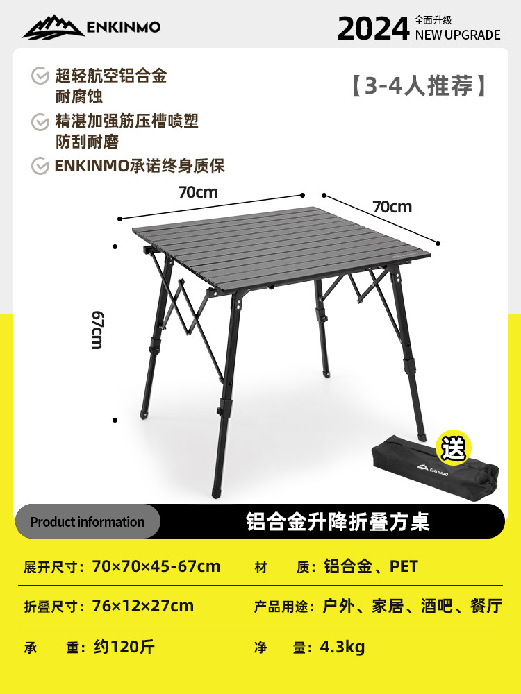 Enkemo 알루미늄 합금 야외 테이블 및 의자 계란 롤 테이블 캠핑 스톨 테이블 접이식 상품 야시장 캠핑 휴대용스토어 가기
