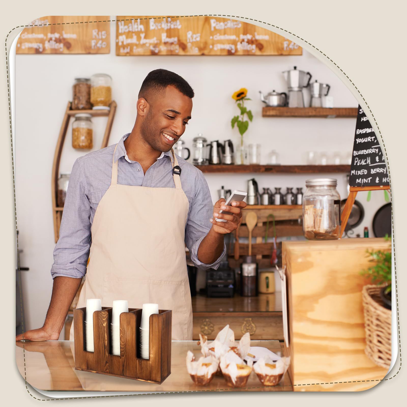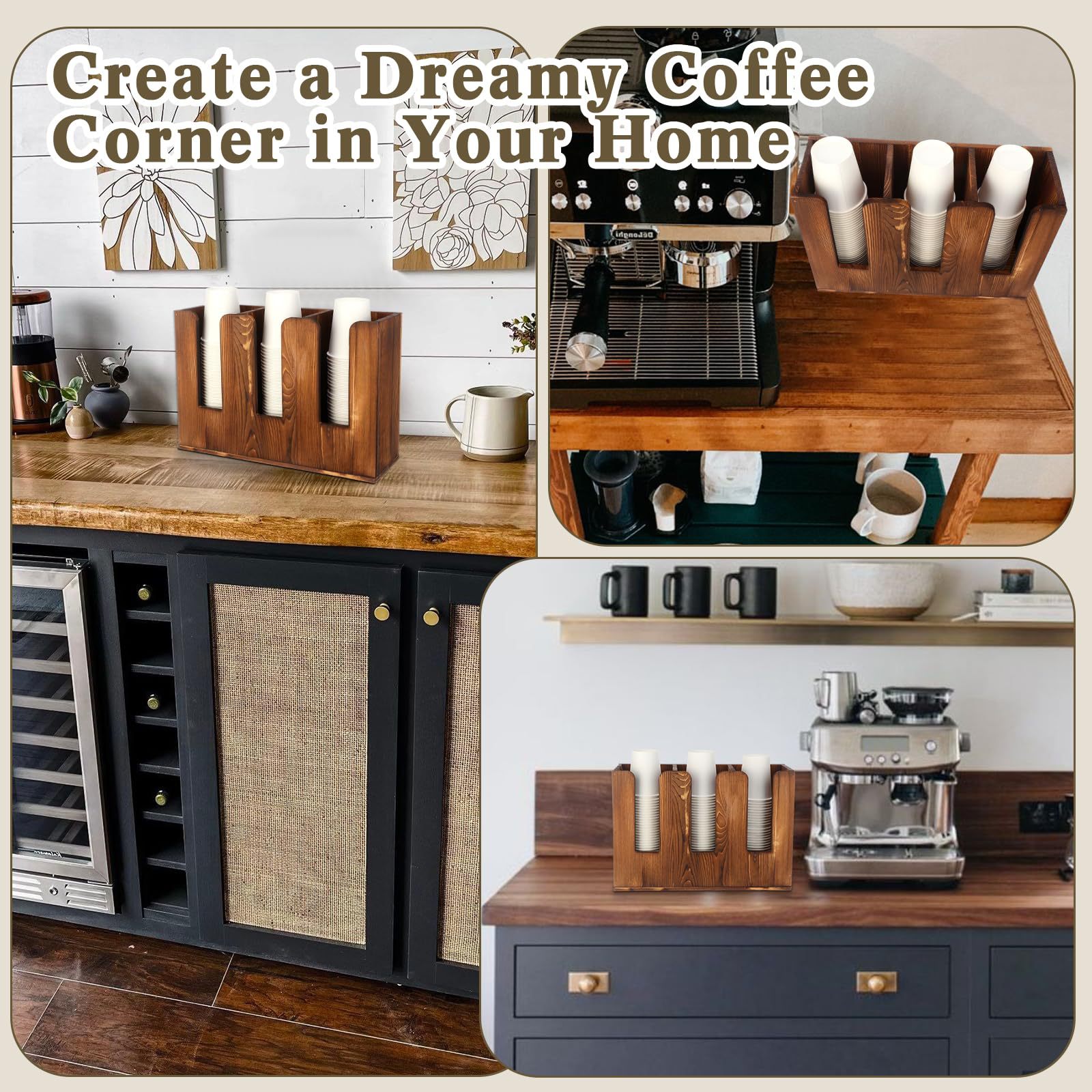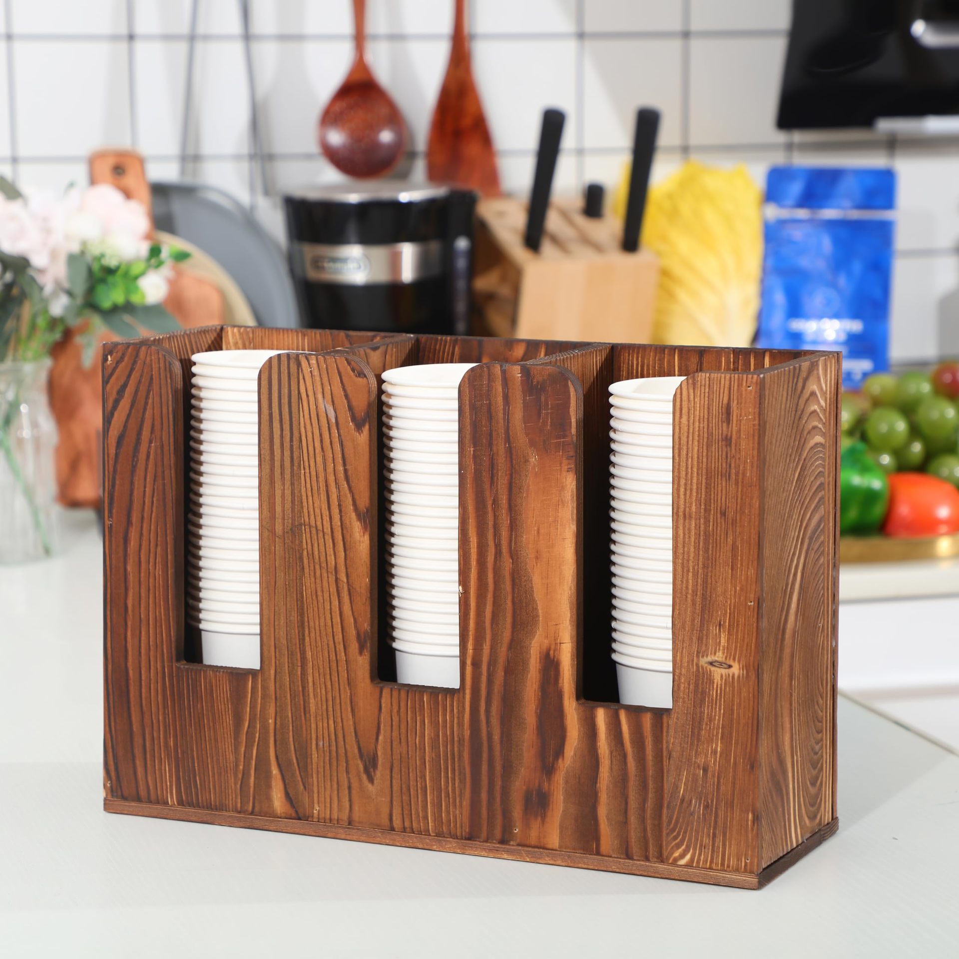 나무 구획 일회용 종이컵 저장 상자 데스크탑 커피 컵 저장 상자 우유 차 가게 레저 룸 컵 브래킷