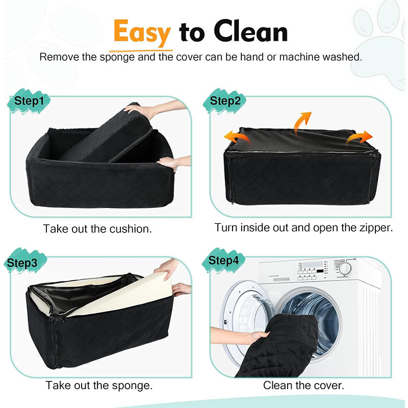 • 【可拆卸和可清洗】只需打开座椅和坐垫的拉链即可取出海绵,然后将狗座椅布套放入洗衣机清洗。温馨提示:汽车用狗床采用真空压缩包装,打开包装后,请耐心等待约 24-48 小时才能恢复到最佳状态。