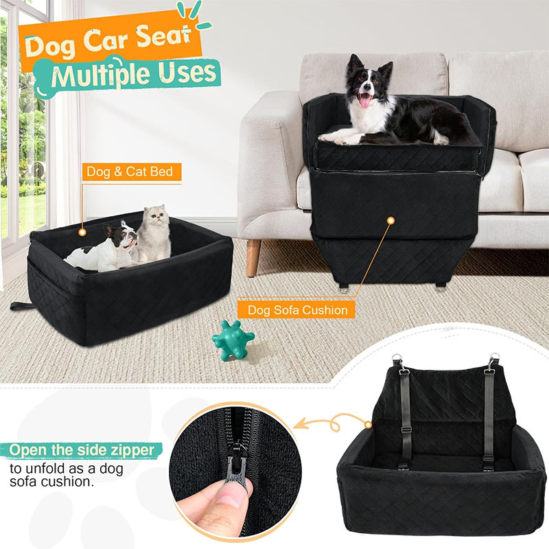 • 【多功能用途】宠物车座椅不仅适合在车内使用,还可以在户外或家中用作狗床,打开侧面拉链时,它可以用作狗沙发床,防止沙发变脏,此外,两侧还有 2 个大口袋,您可以存放狗的食物、玩具和必需品等。