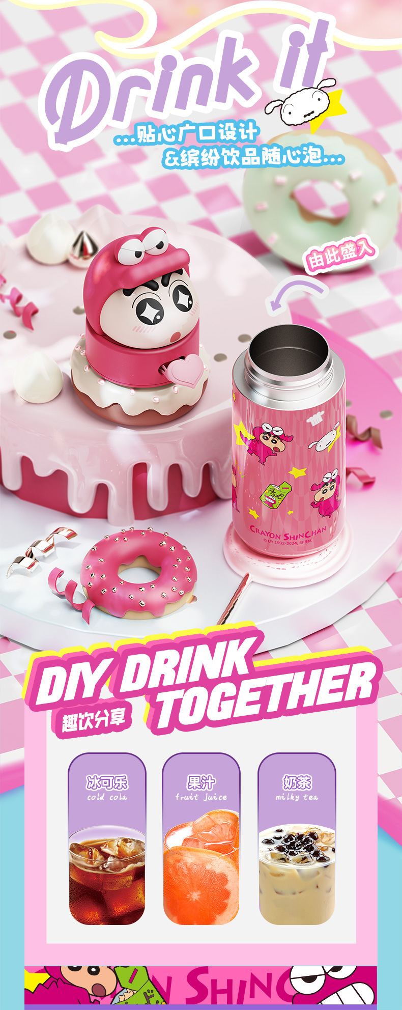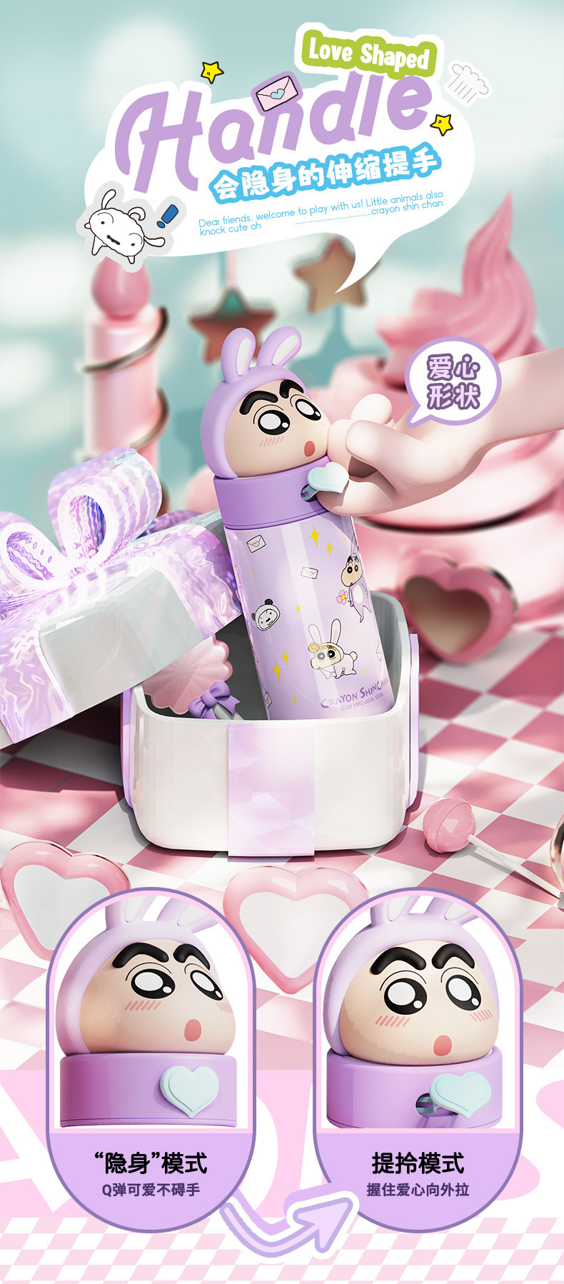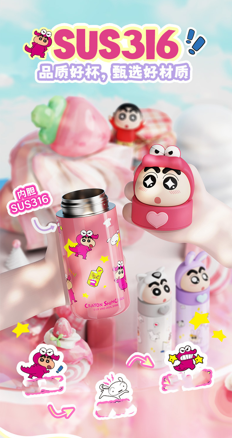 2026년 신형 크레용신짱 어린이 보온병, 학생용, 학교에서 직접 마실 수 있는 휴대용 물병, 예쁜 디자인의 컵스토어 가기