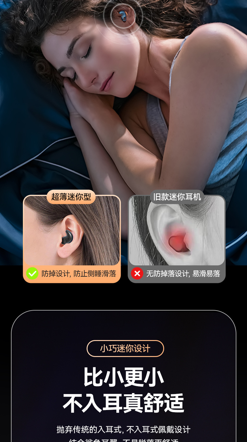 M52 국경 개인 모델 새로운 수면 전용 측면 수면 블루투스 헤드셋 TWS 무선 미니 스포츠 실행 헤드셋 배치