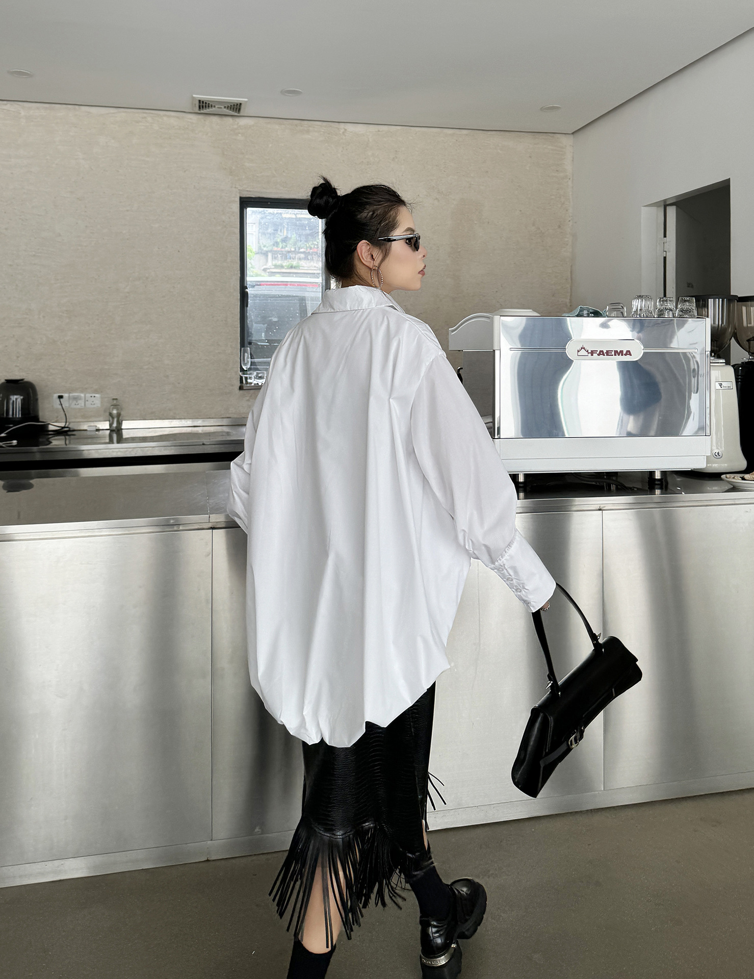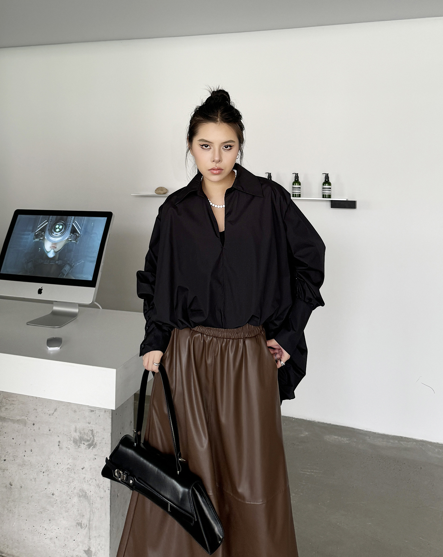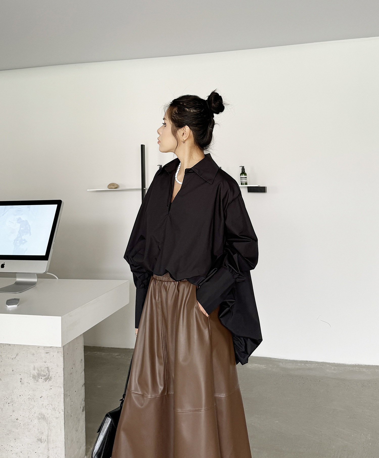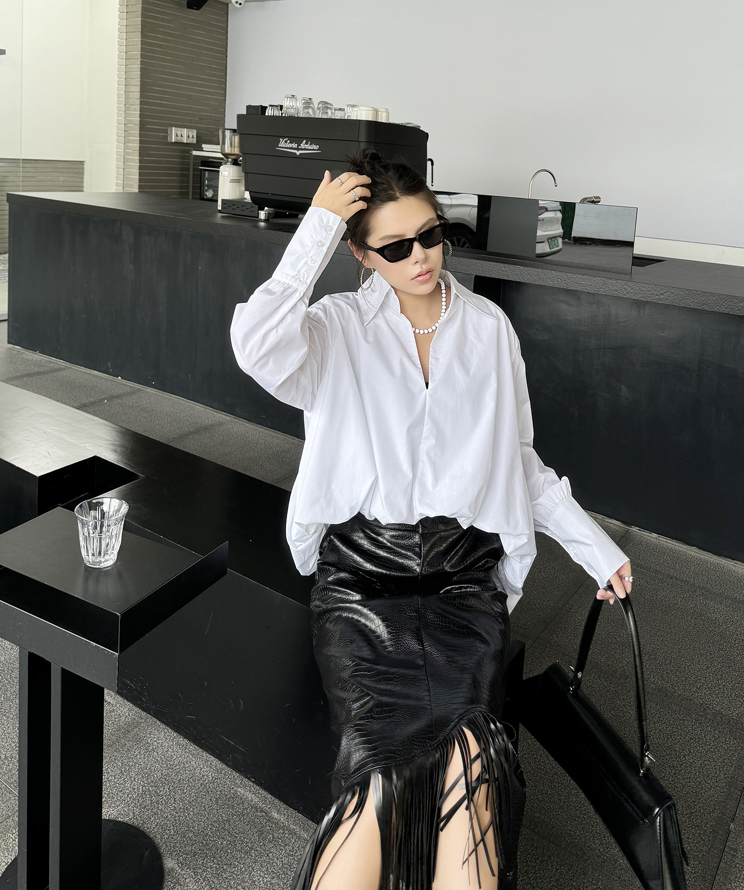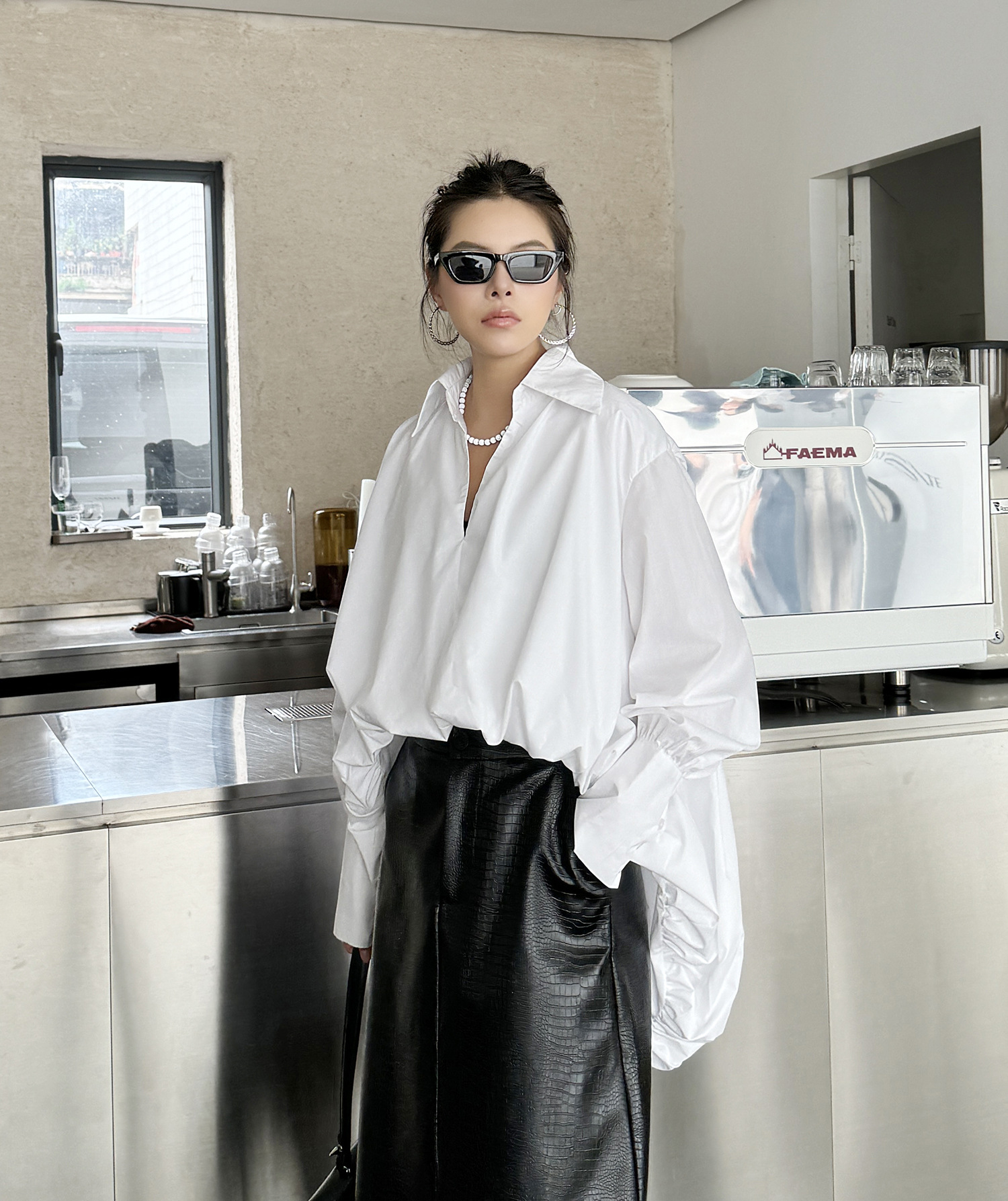 프렌치 스타일 브이넥 게으른 불규칙한 주름 긴팔 셔츠 여성 가을 신작 루즈 통근 맞춤형 탑스토어 가기