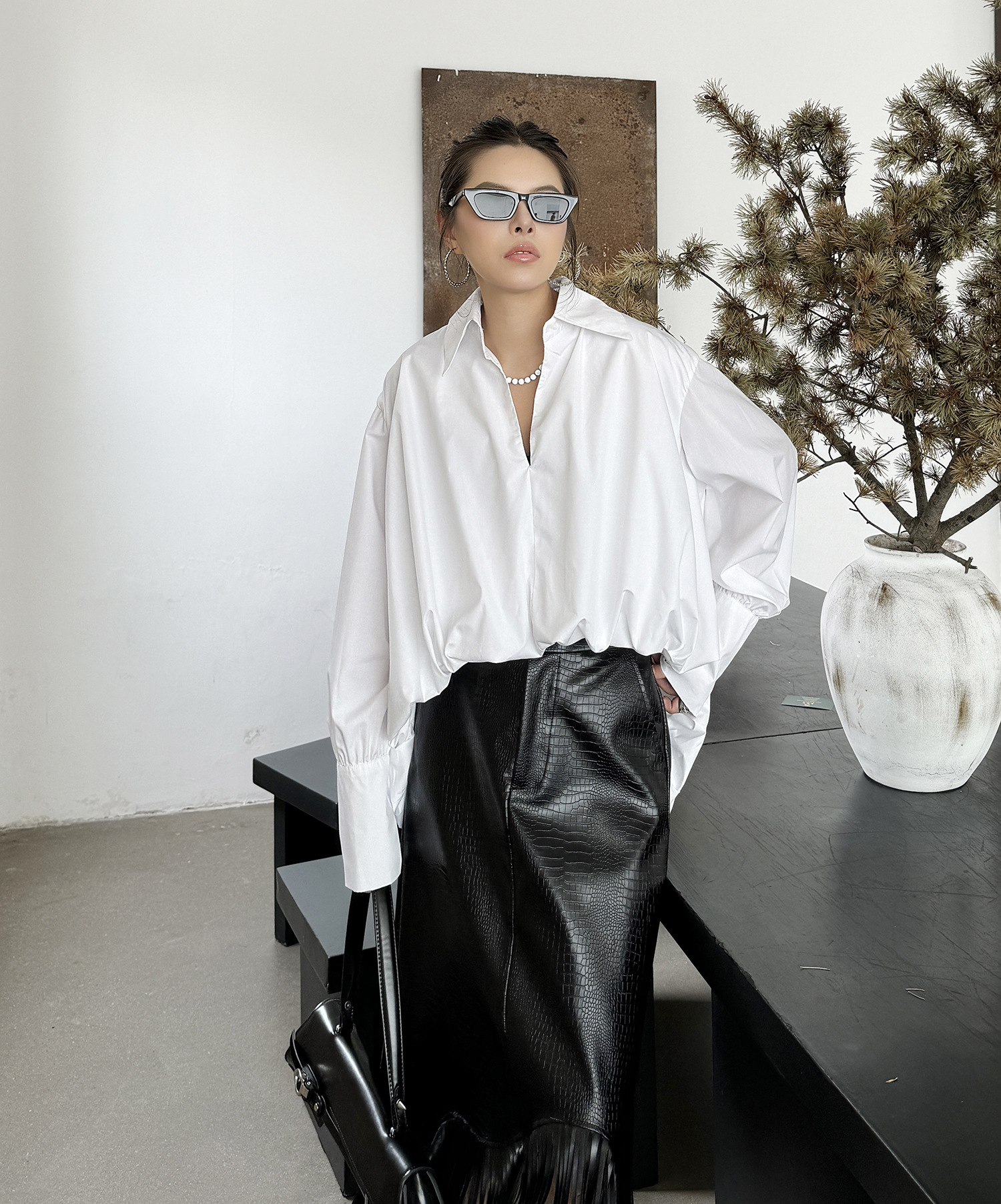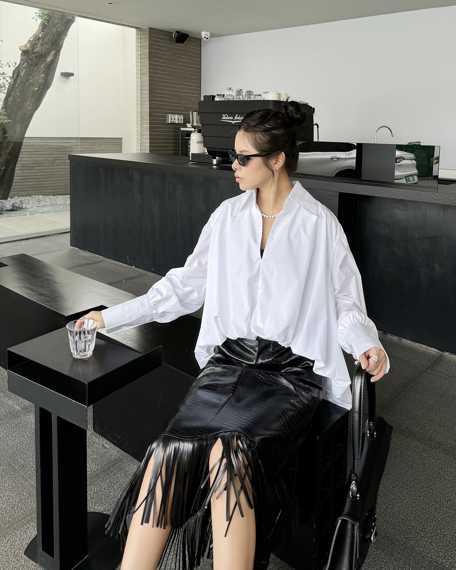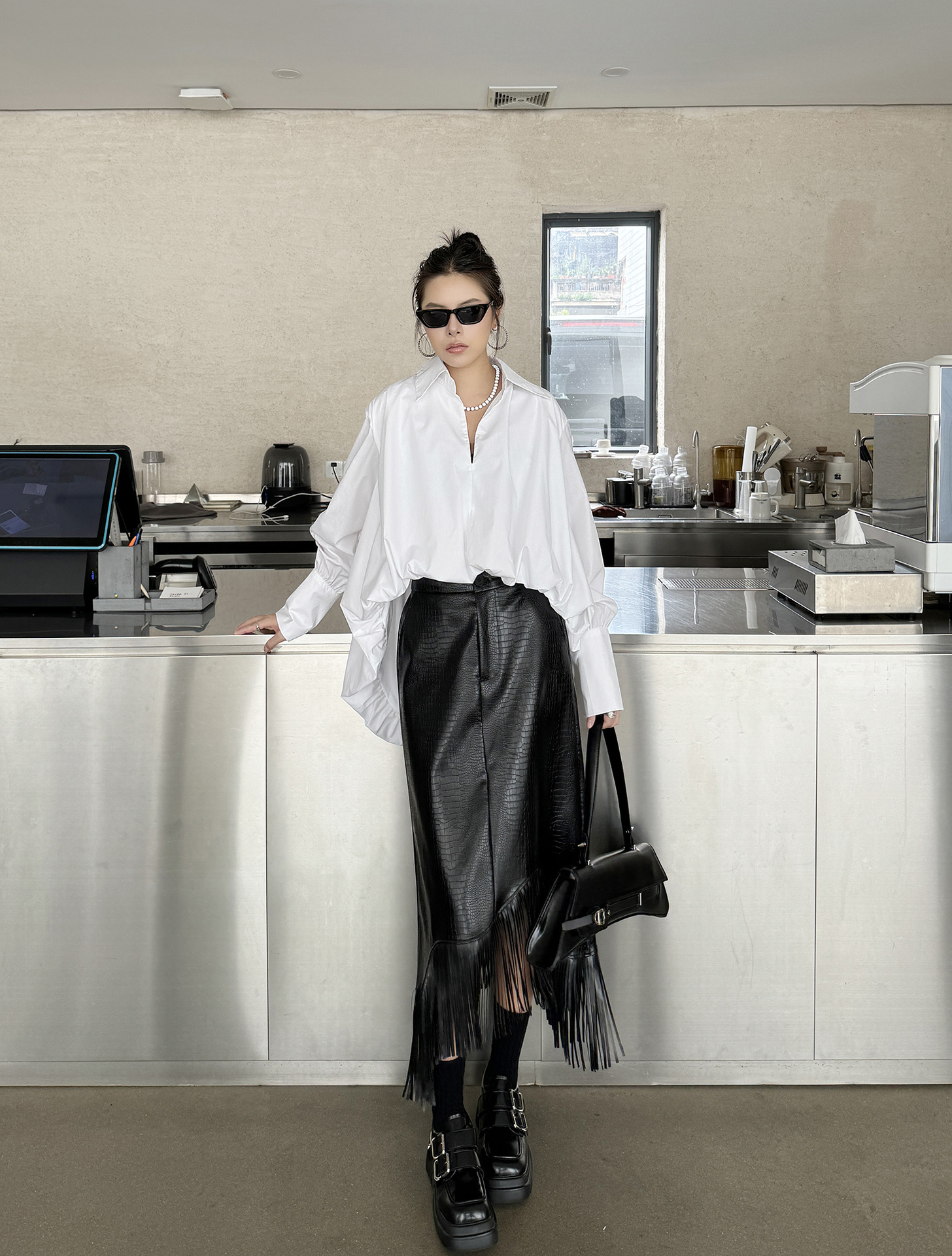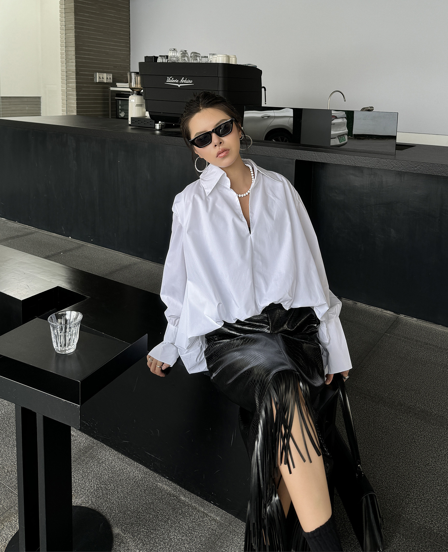 프렌치 스타일 브이넥 게으른 불규칙한 주름 긴팔 셔츠 여성 가을 신작 루즈 통근 맞춤형 탑스토어 가기