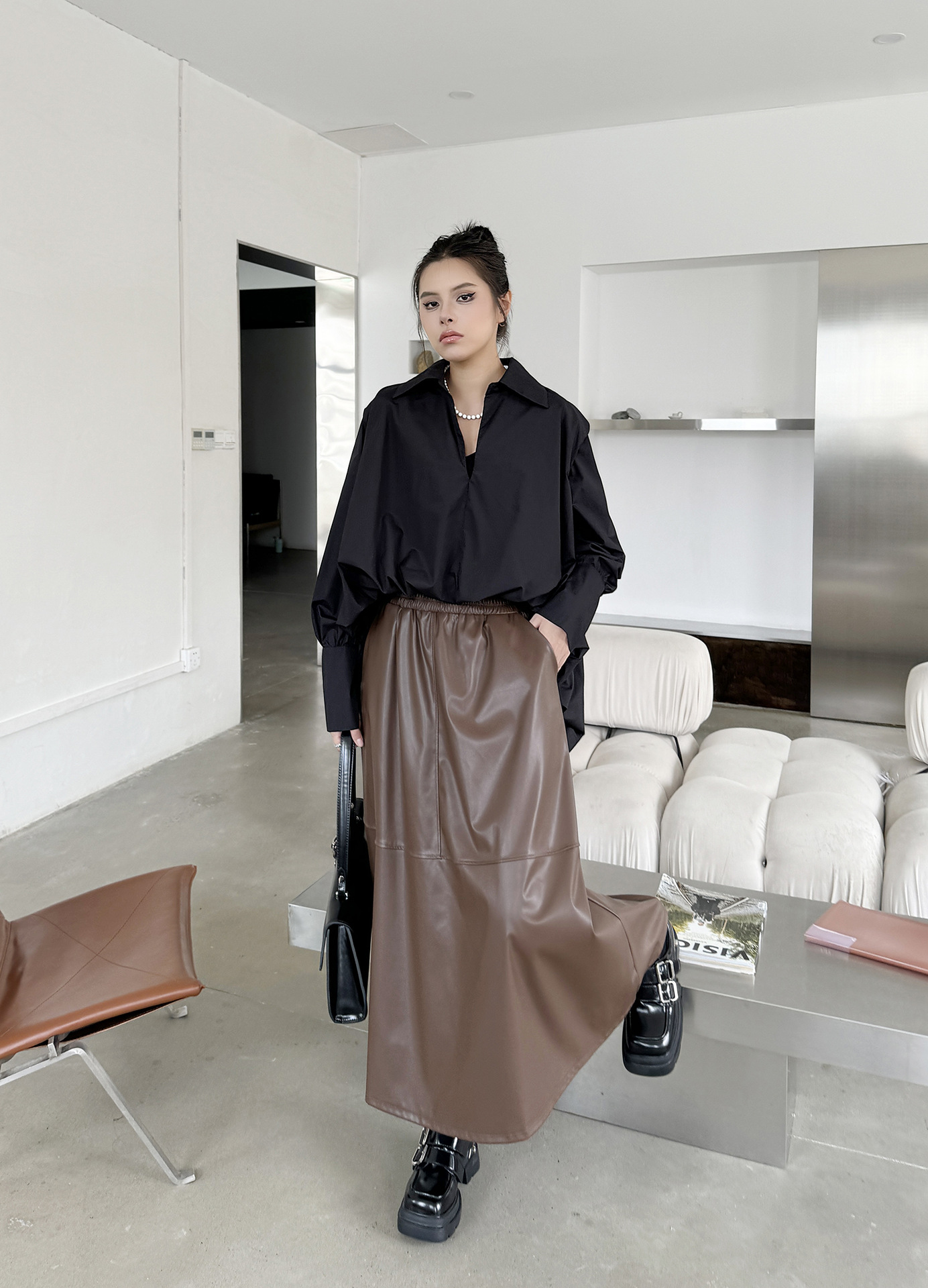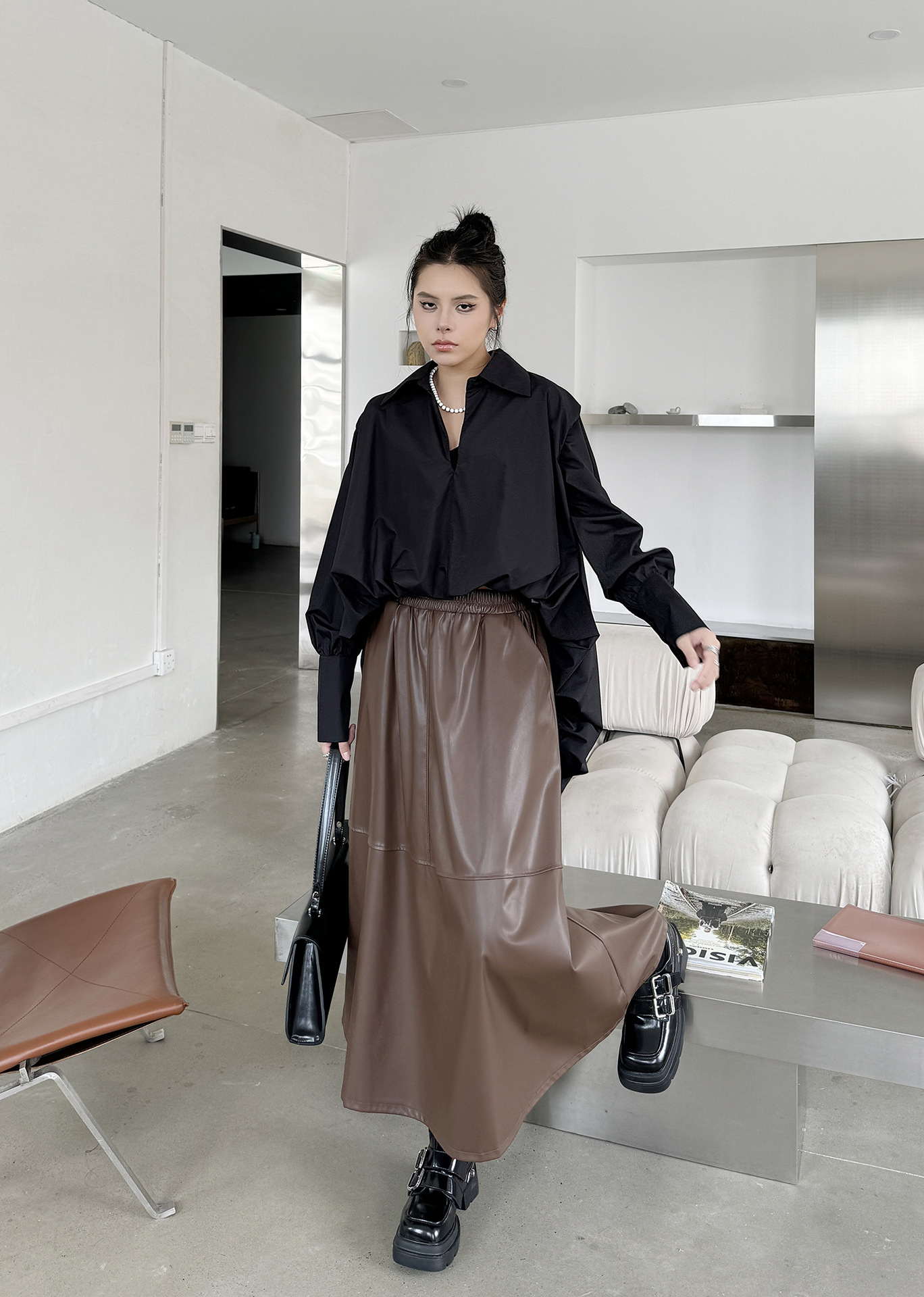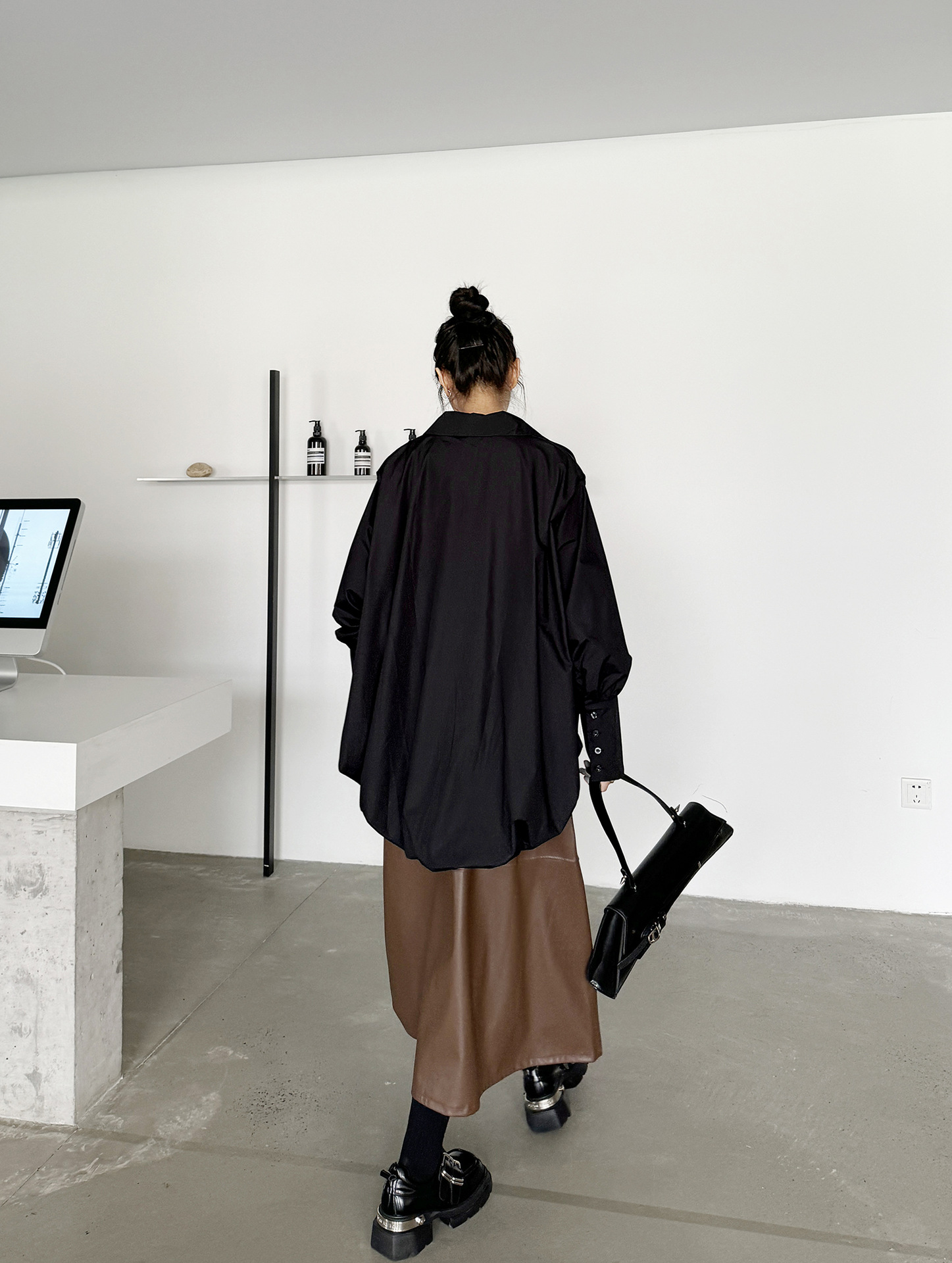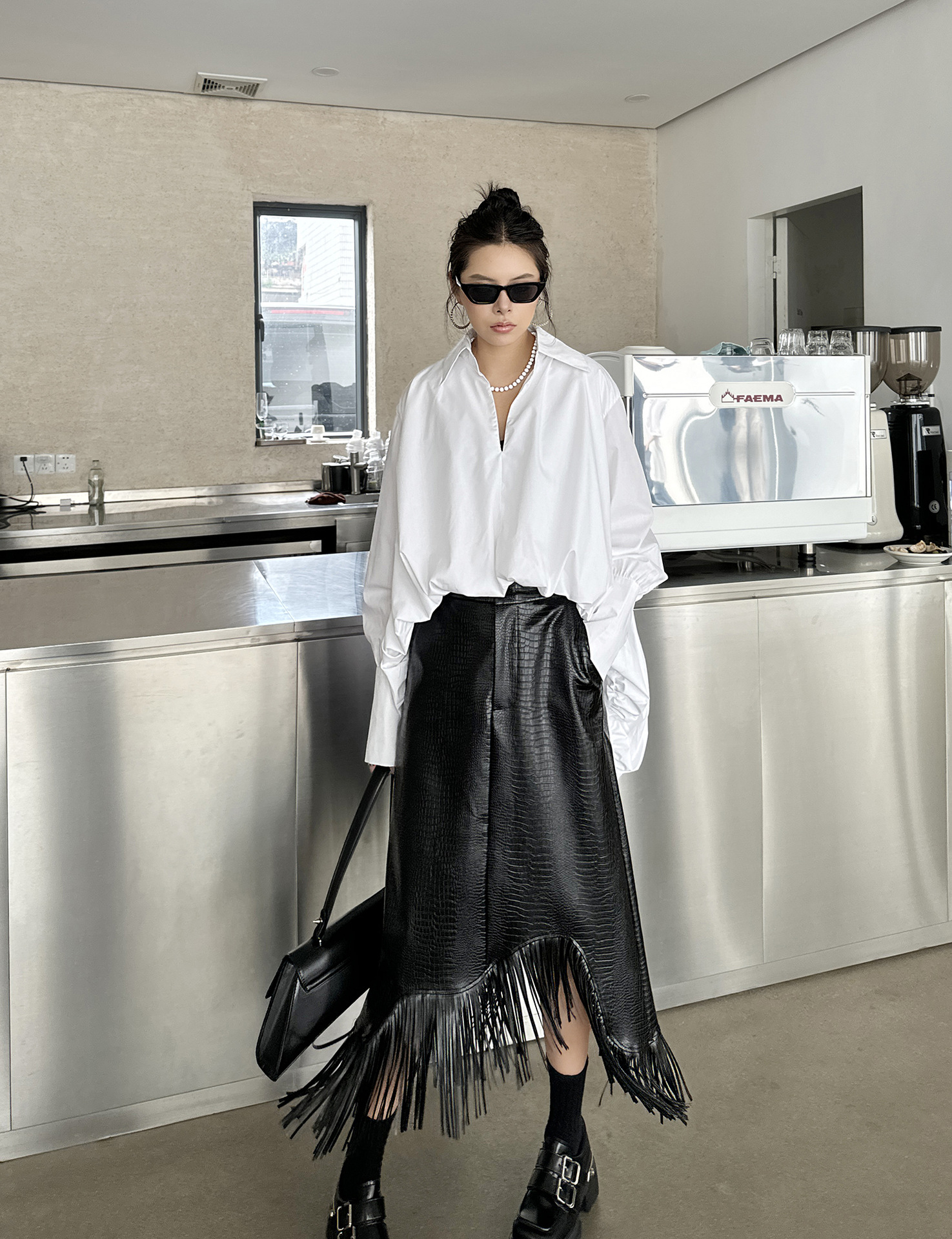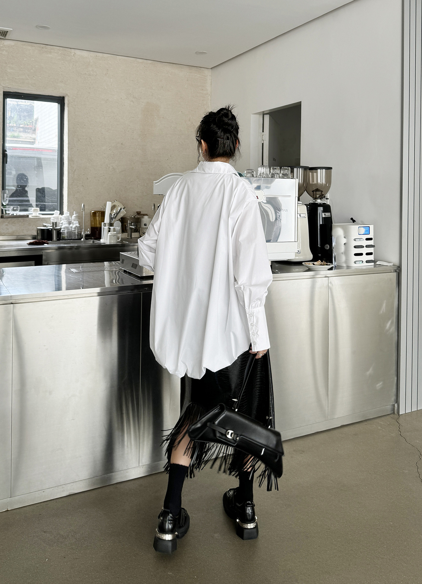 프렌치 스타일 브이넥 게으른 불규칙한 주름 긴팔 셔츠 여성 가을 신작 루즈 통근 맞춤형 탑스토어 가기