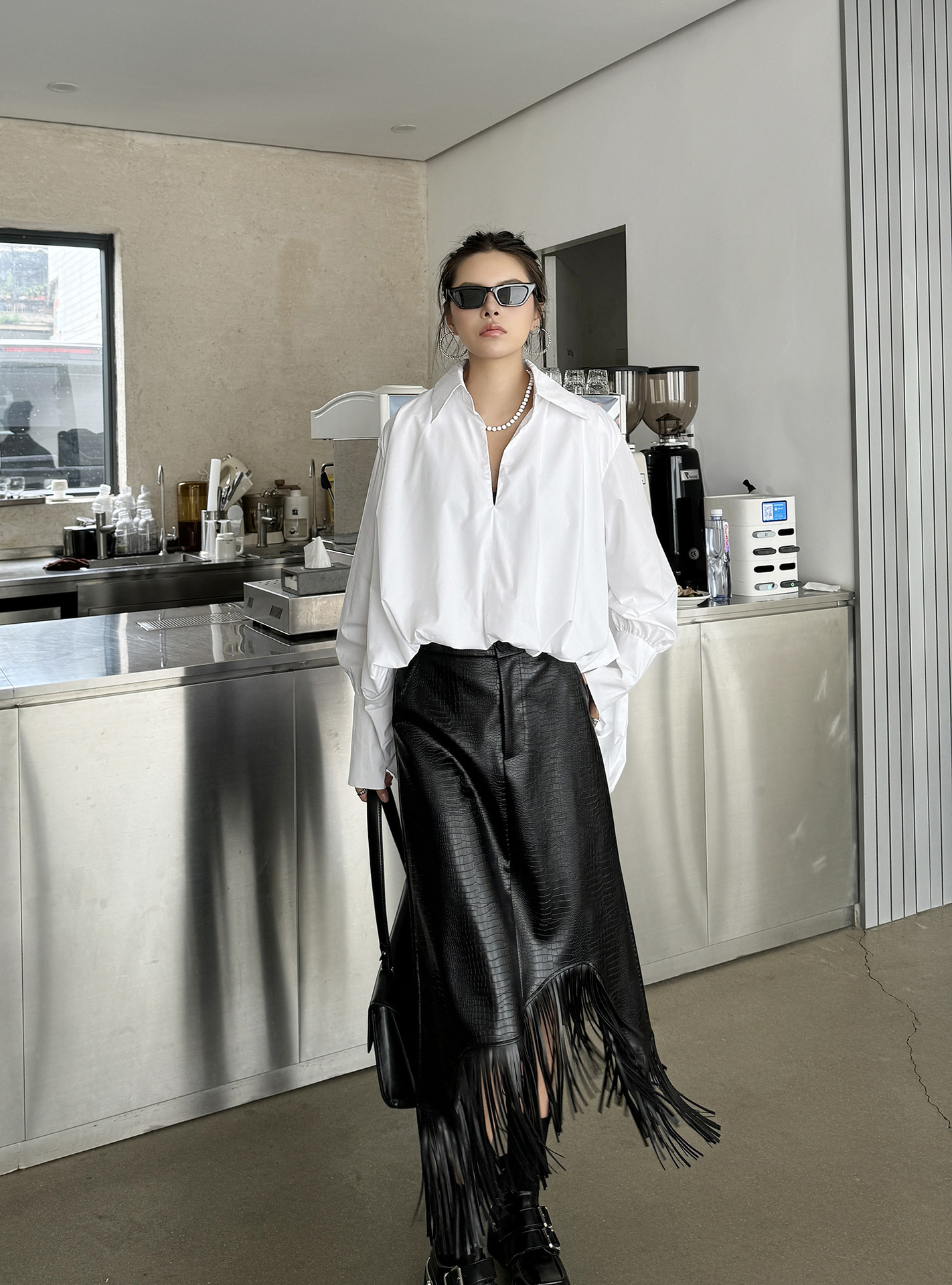 프렌치 스타일 브이넥 게으른 불규칙한 주름 긴팔 셔츠 여성 가을 신작 루즈 통근 맞춤형 탑