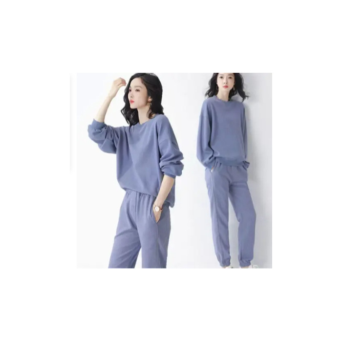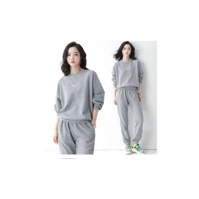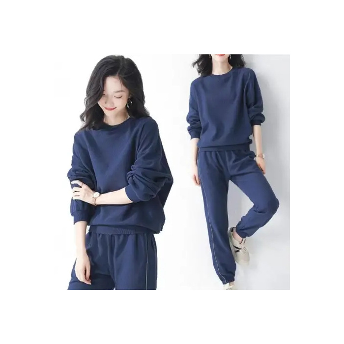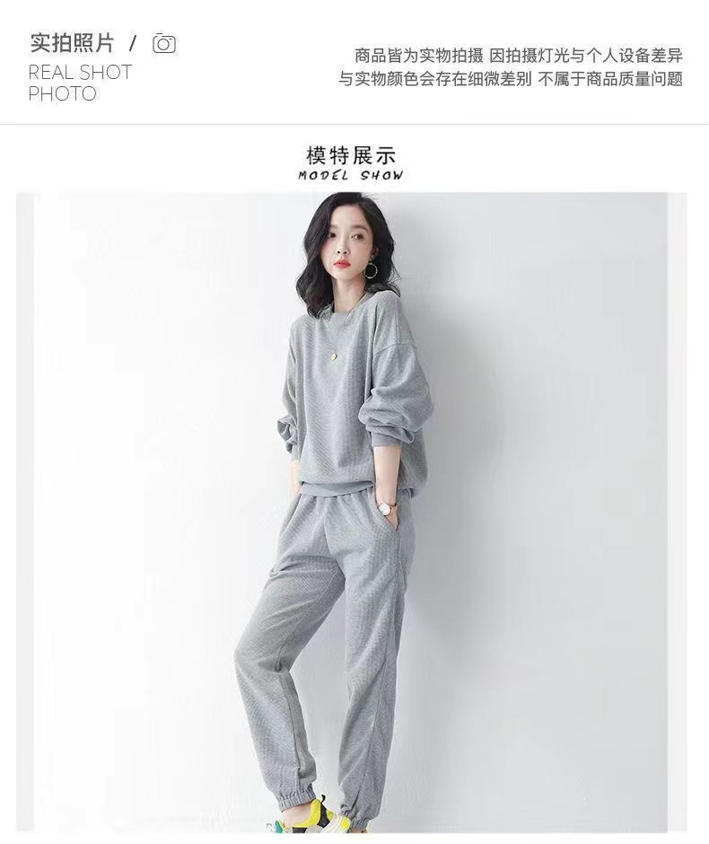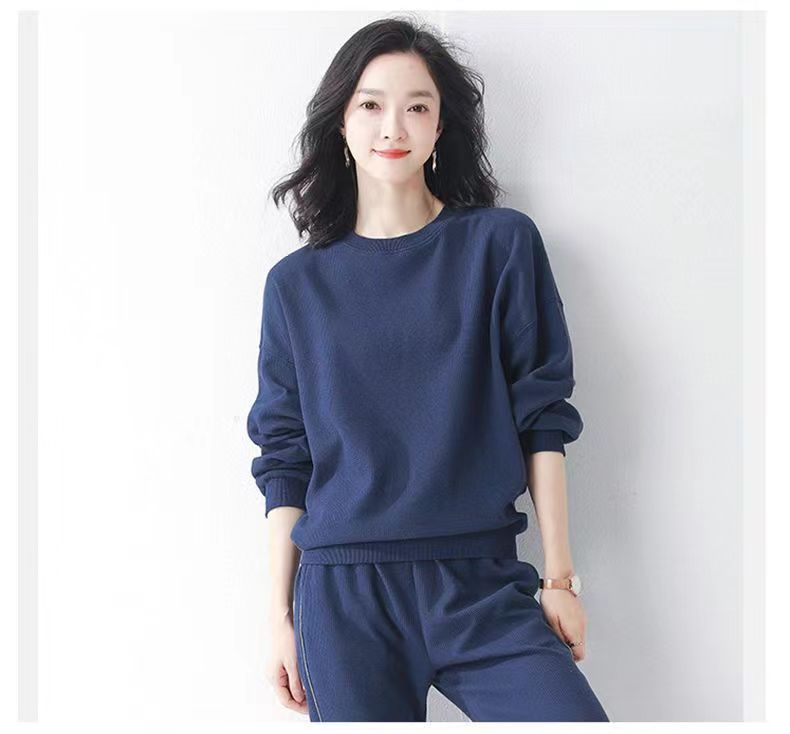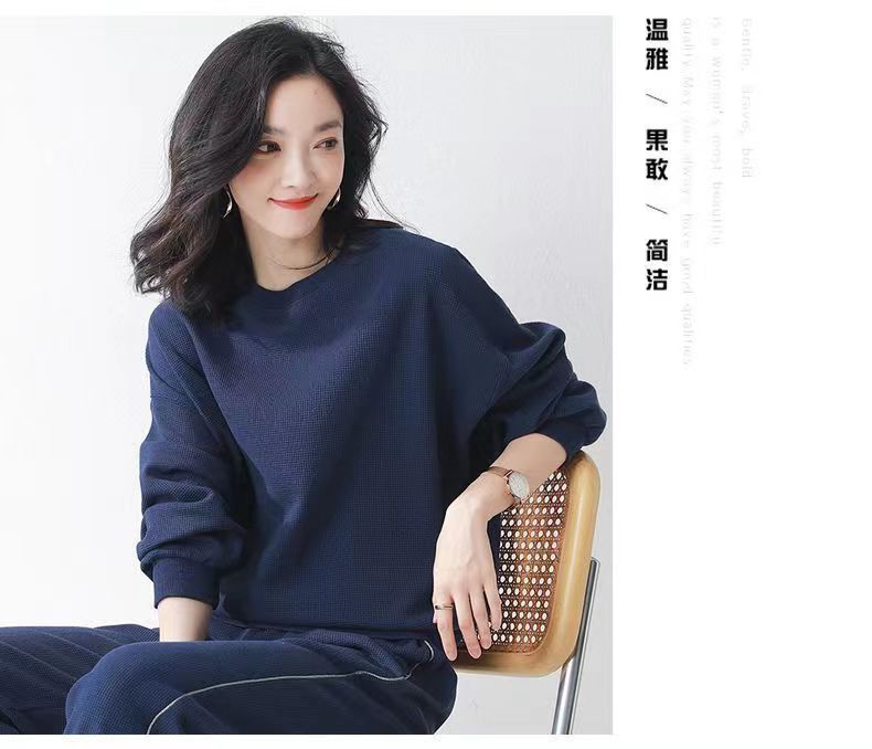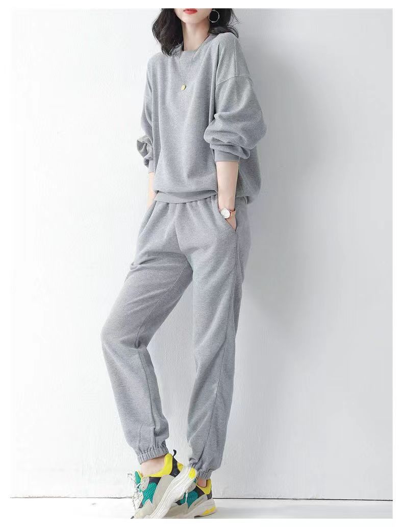 코튼 와플 스포츠 세트 여성의 2024 년 봄과 가을 새로운 패션 라운드 넥 긴 소매 캐주얼 러닝 의류 여성용 스웨터스토어 가기