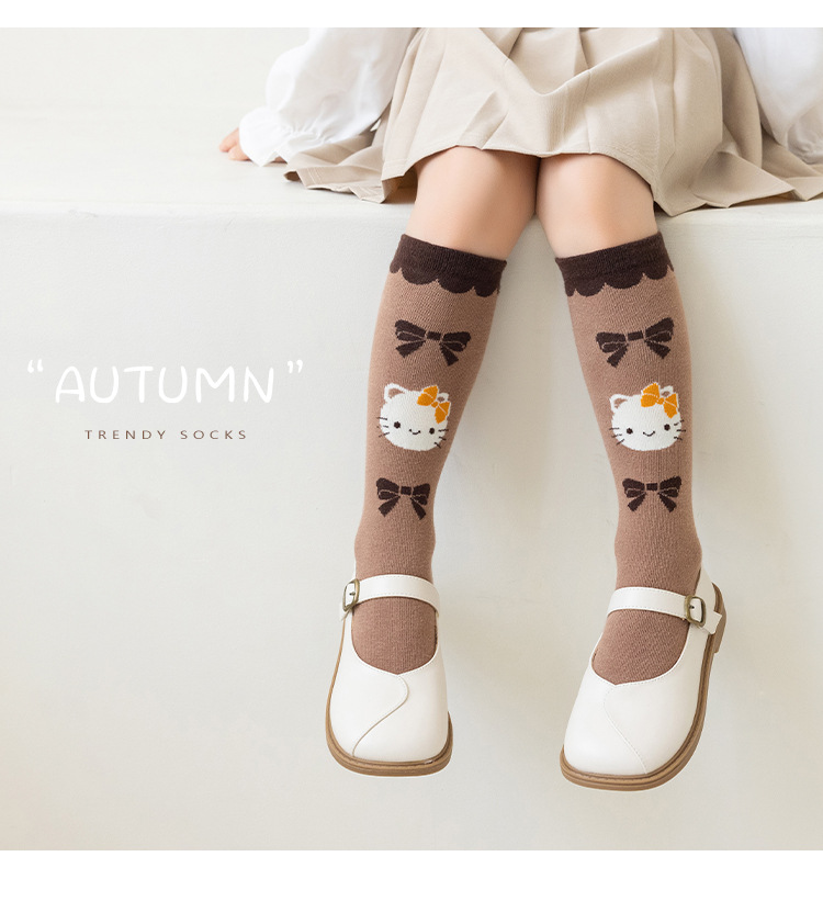 어린이 양말 도매 2024 가을과 겨울 소녀 귀여운 고양이 송아지 양말 만화 높은 양말 면 양말 더미 양말스토어 가기