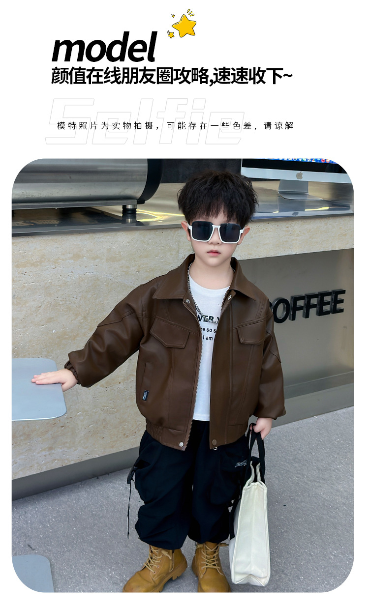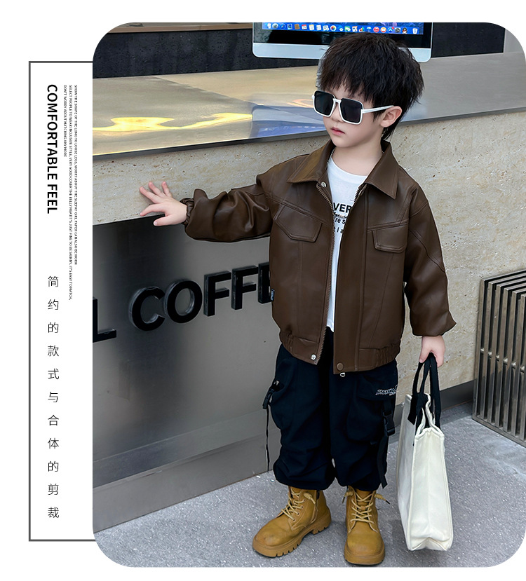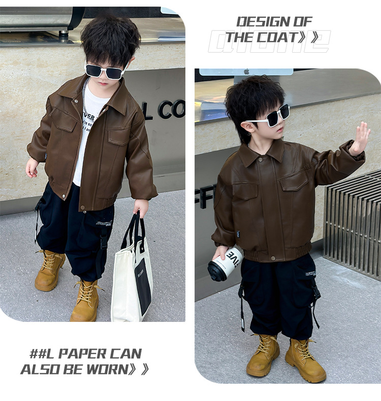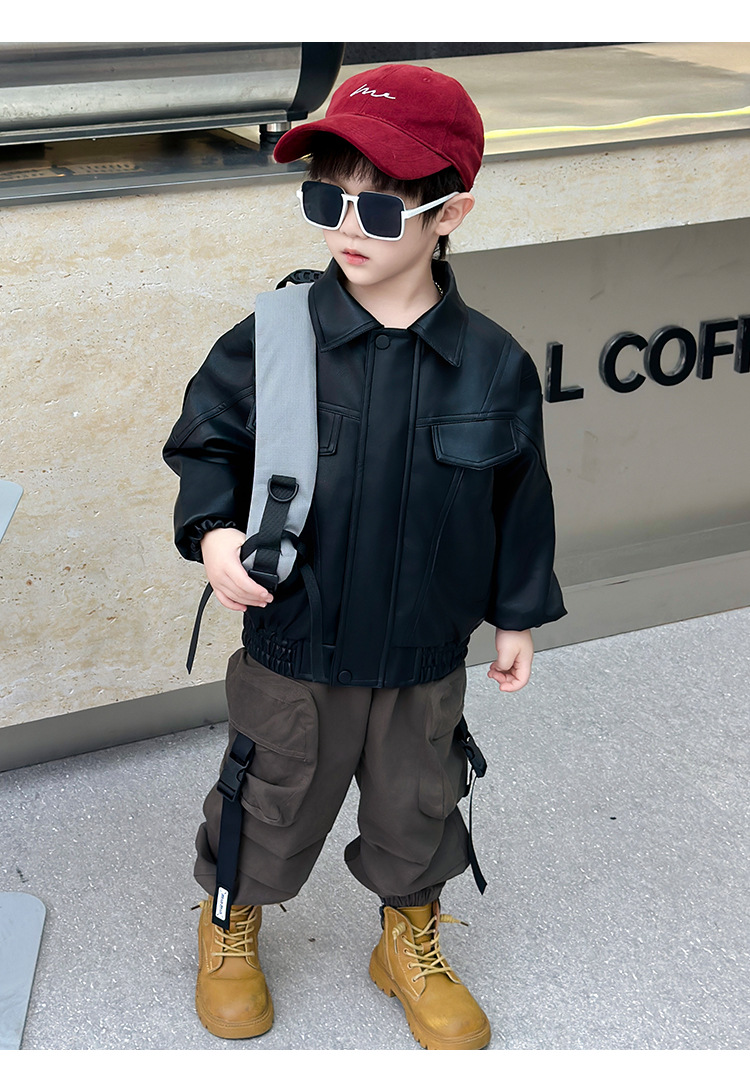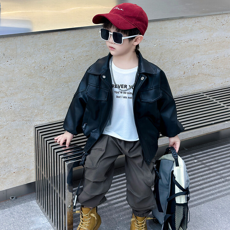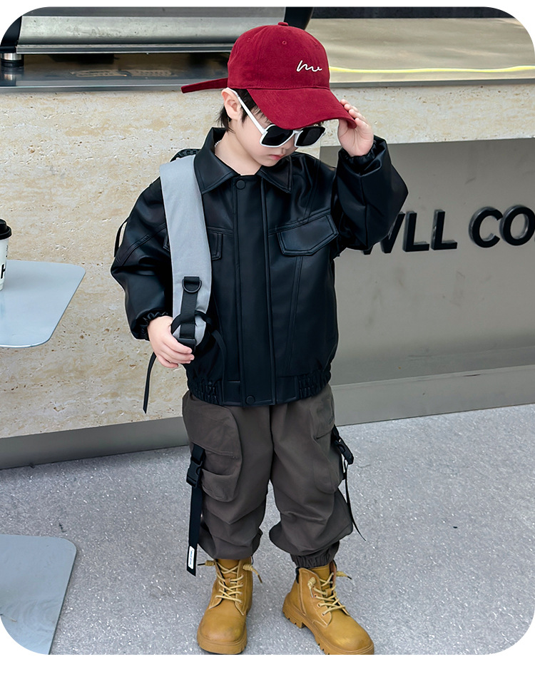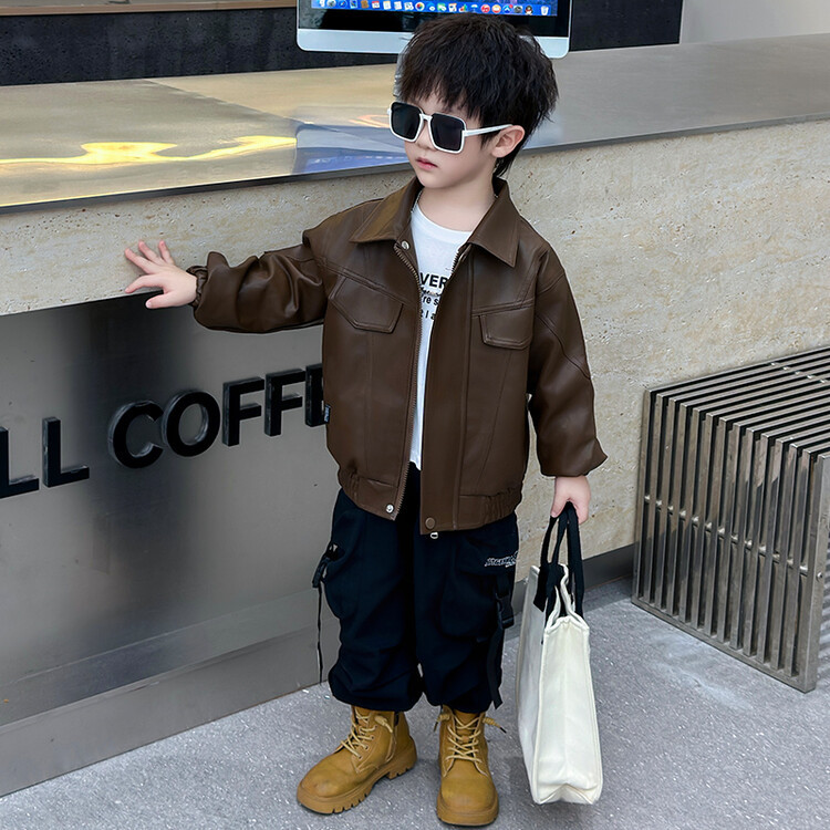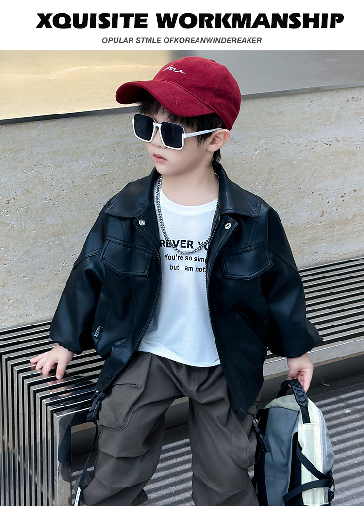 소년의 봄과 가을 바느질 가죽 자켓 어린이 잘 생긴 단색 유행 재킷 중소형 어린이 서양식 소년 용 탑스토어 가기