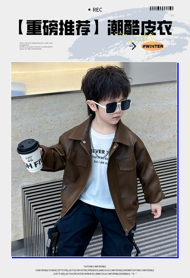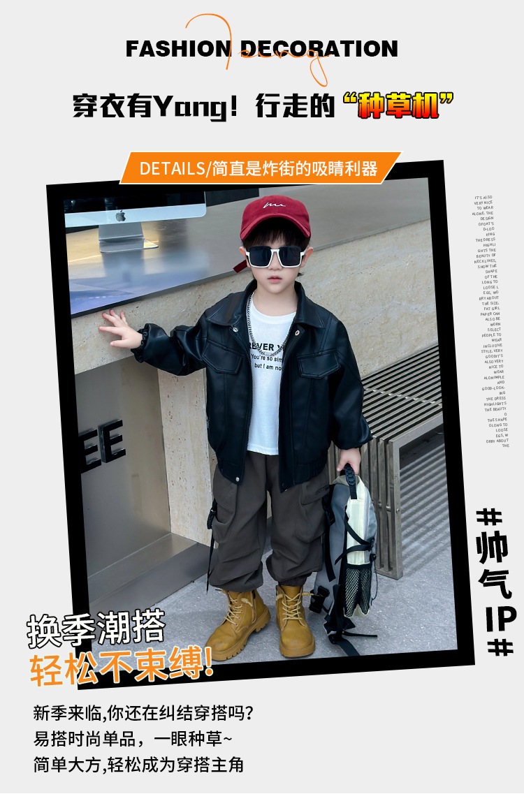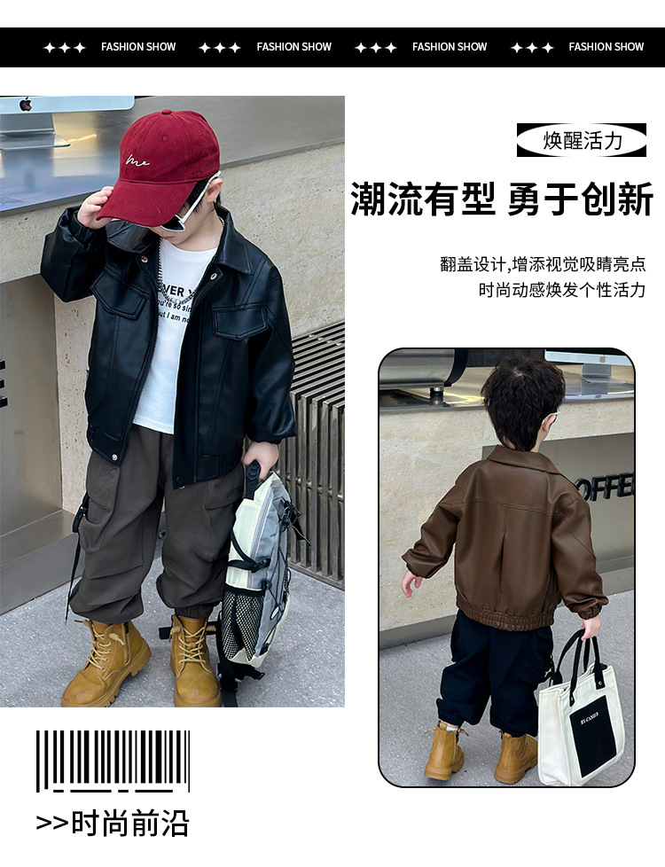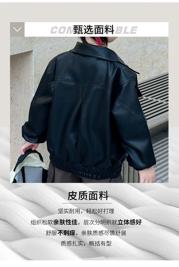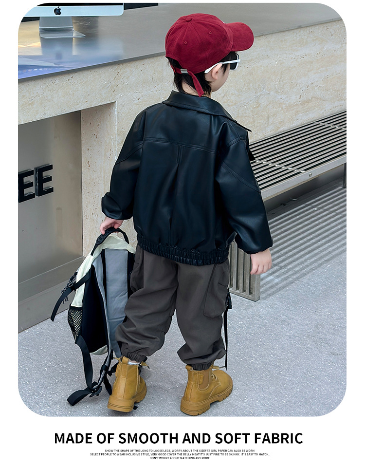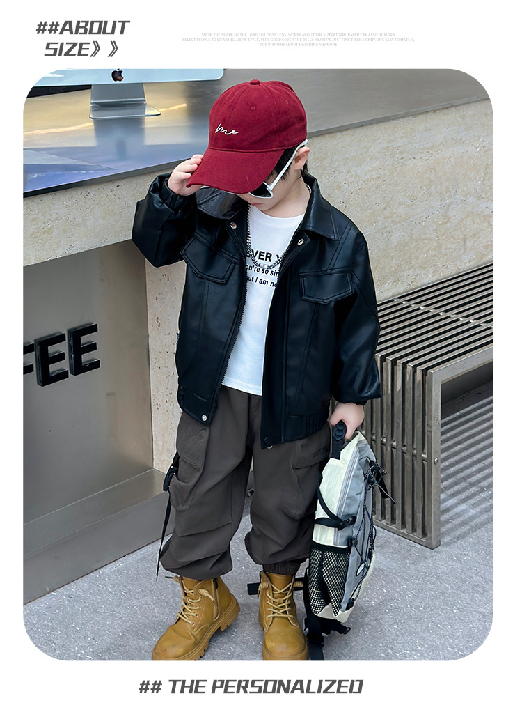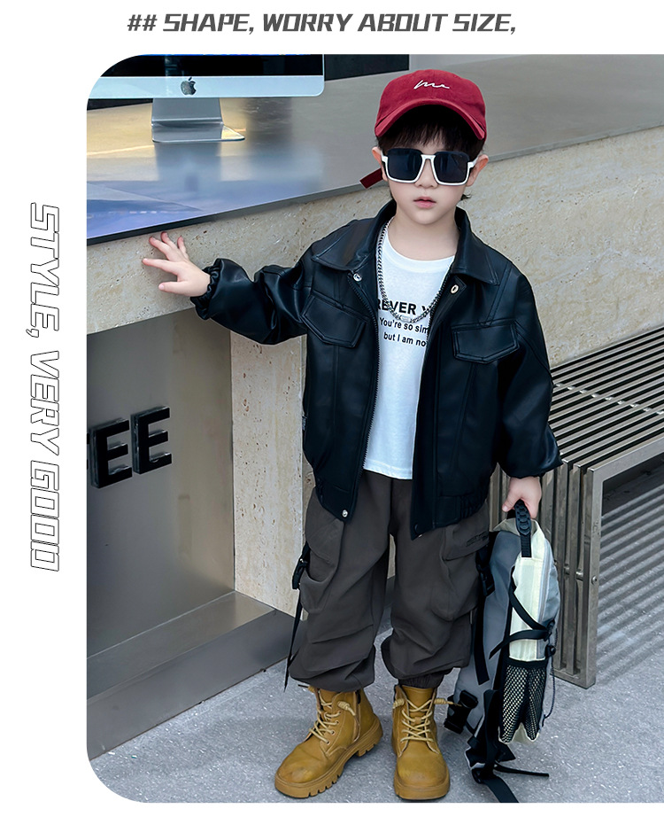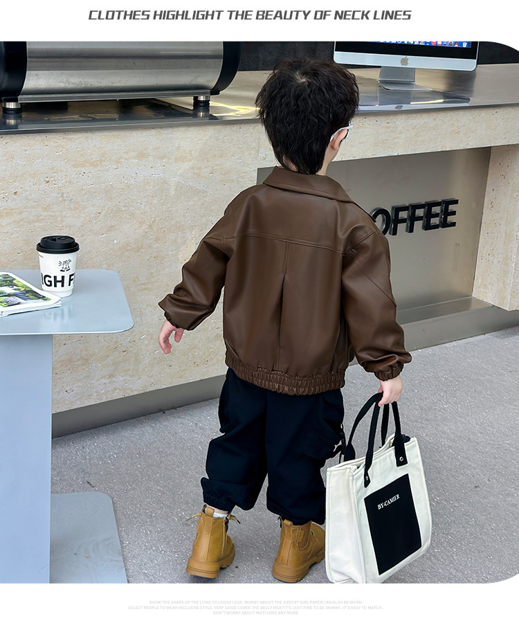 소년의 봄과 가을 바느질 가죽 자켓 어린이 잘 생긴 단색 유행 재킷 중소형 어린이 서양식 소년 용 탑스토어 가기