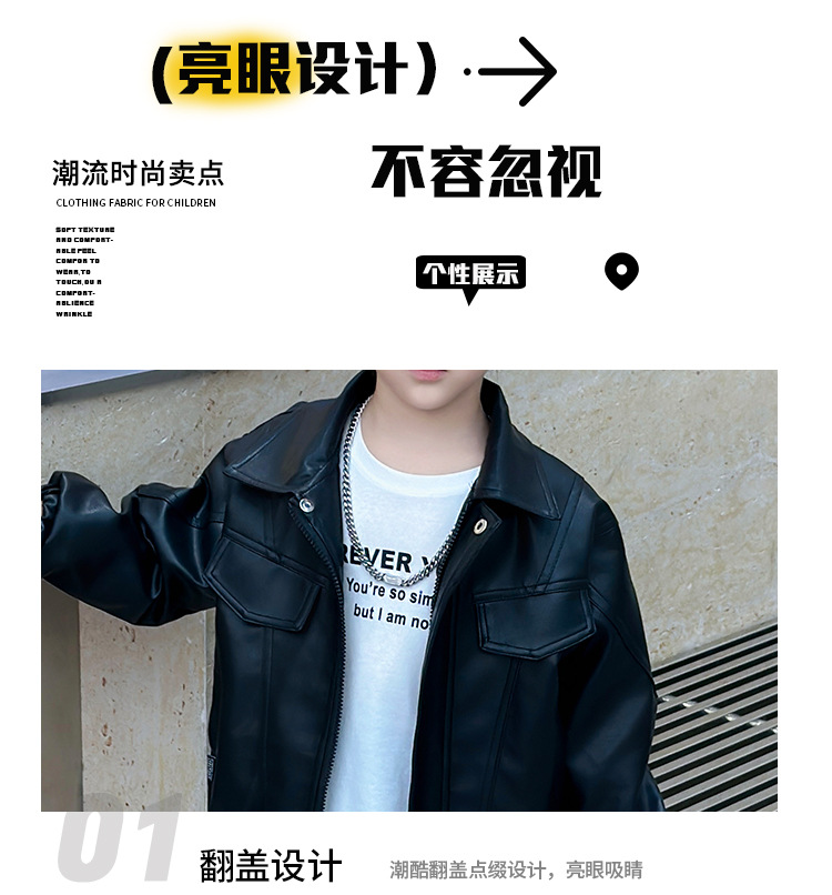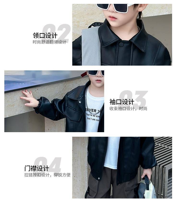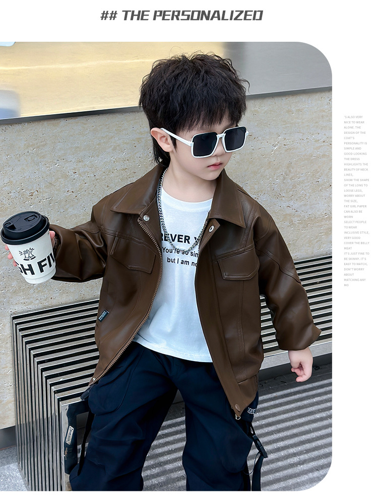 소년의 봄과 가을 바느질 가죽 자켓 어린이 잘 생긴 단색 유행 재킷 중소형 어린이 서양식 소년 용 탑