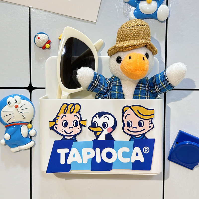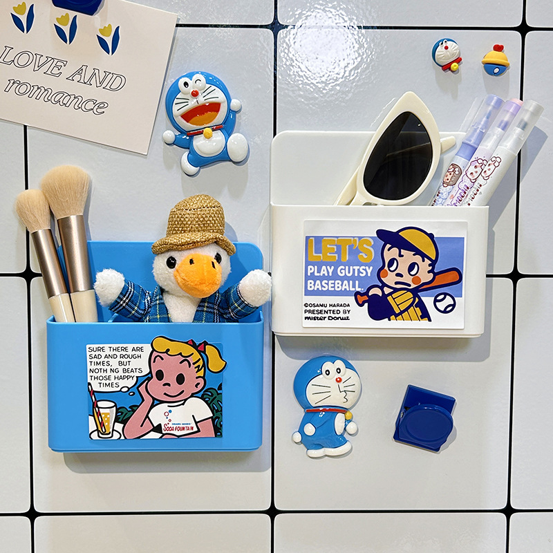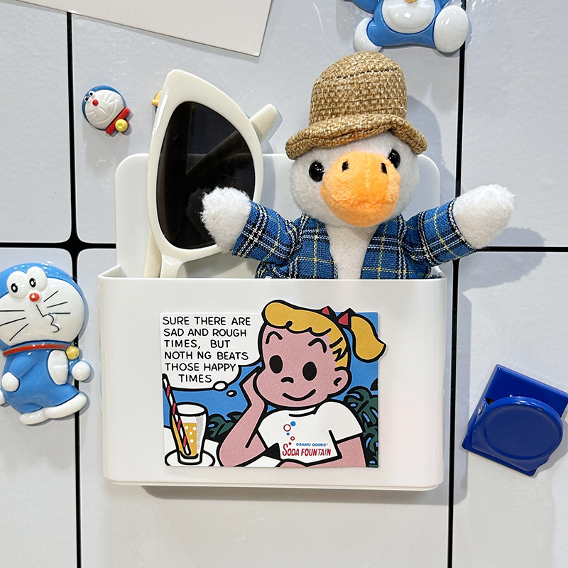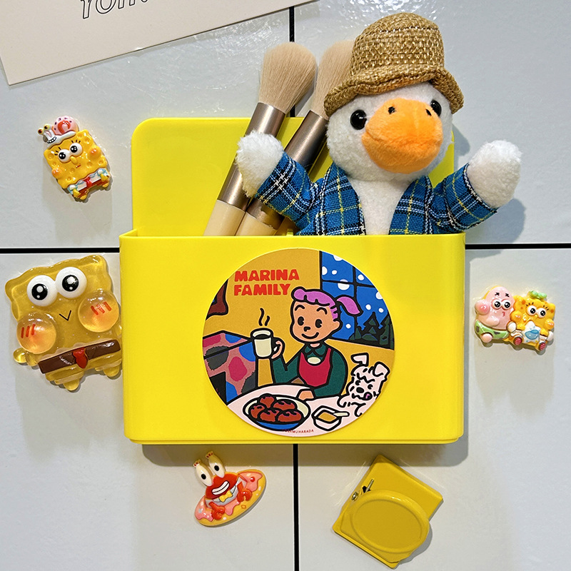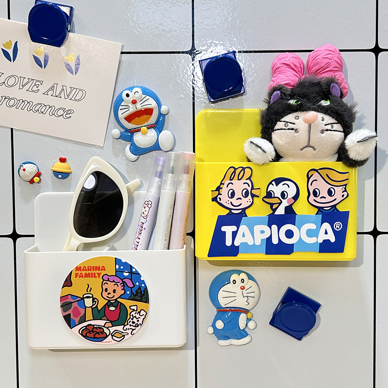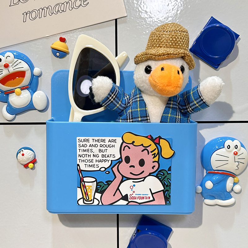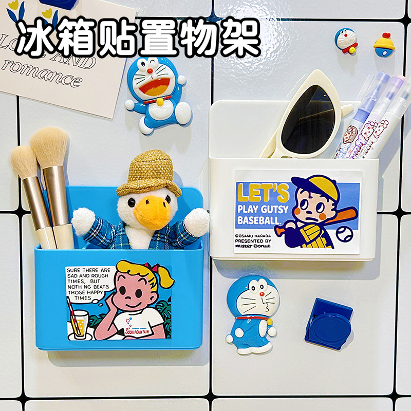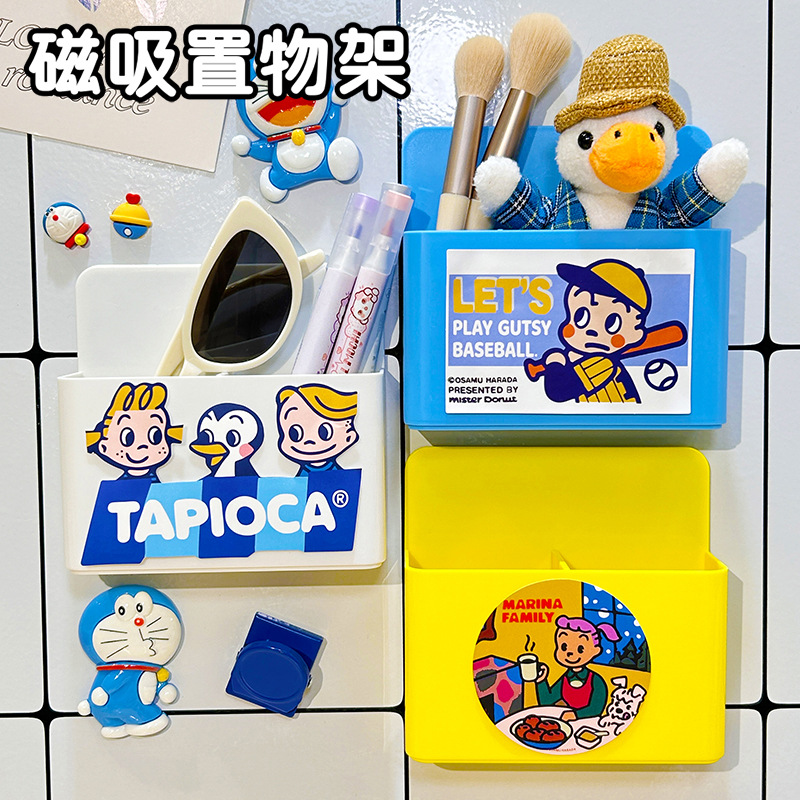 냉장고 스티커 마그네틱 스티커 보관 랙 사이드 스토리지 귀여운 만화 문 장식 주방 벽 장착 마그네틱 스토리지 박스